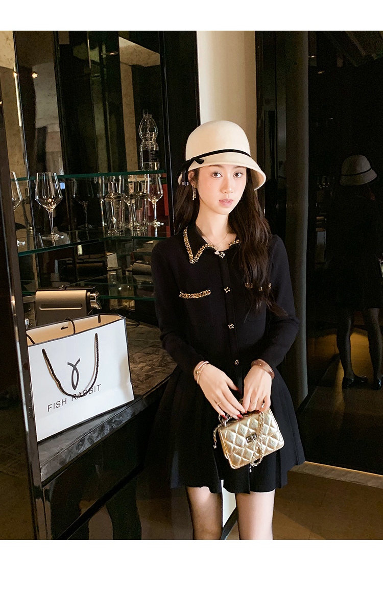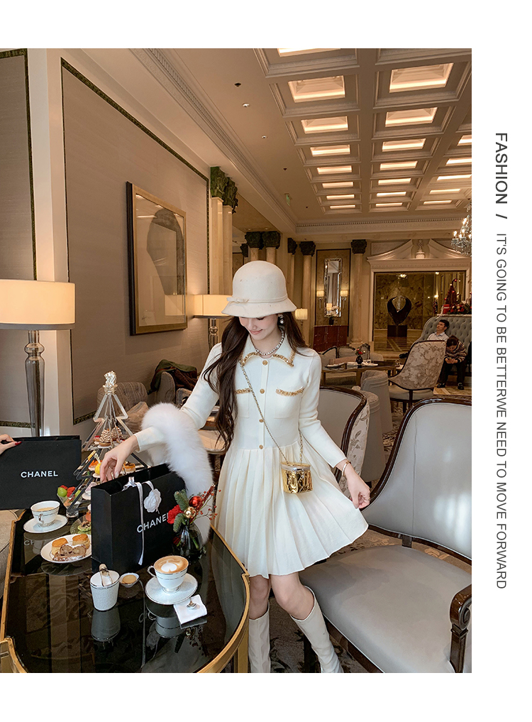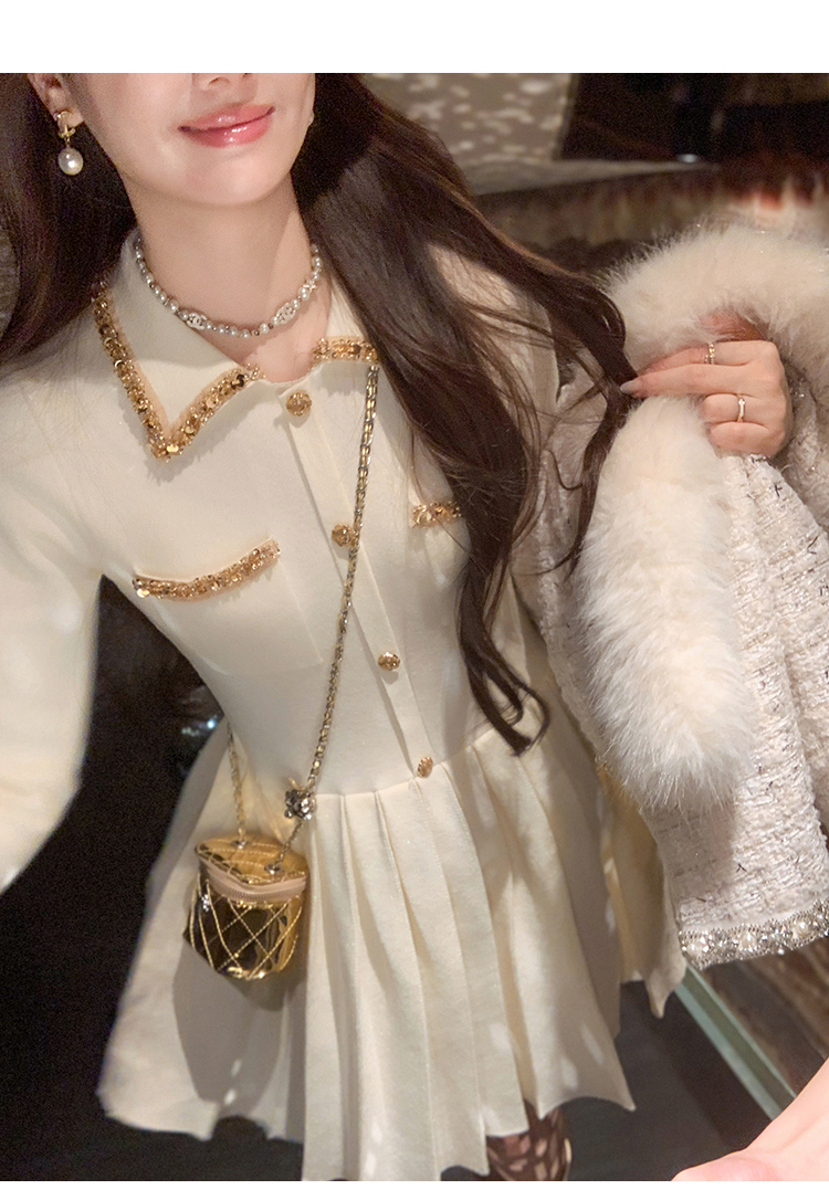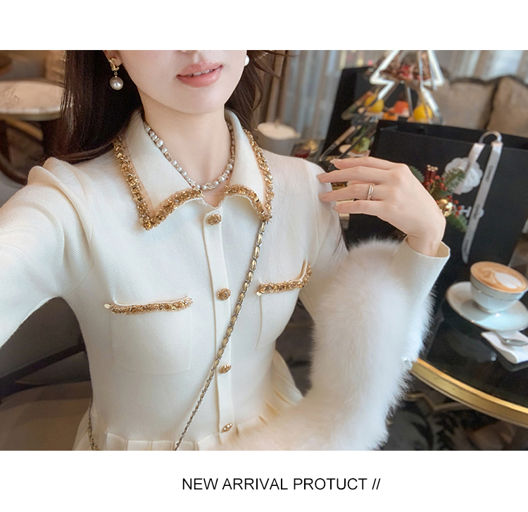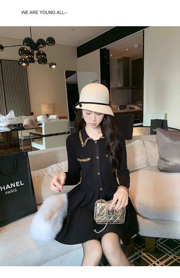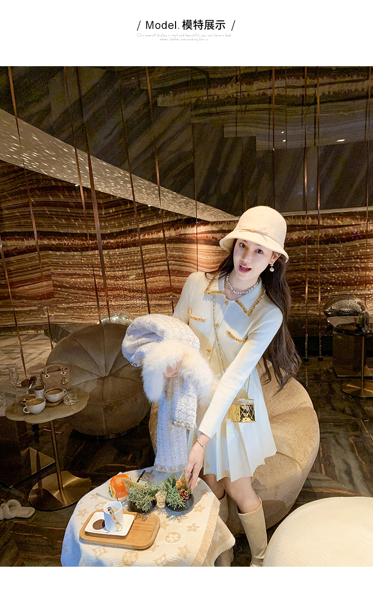商品名称:法式千金针织连衣裙女春秋2025新款百褶打底裙子