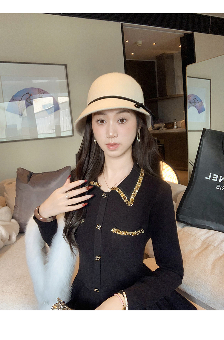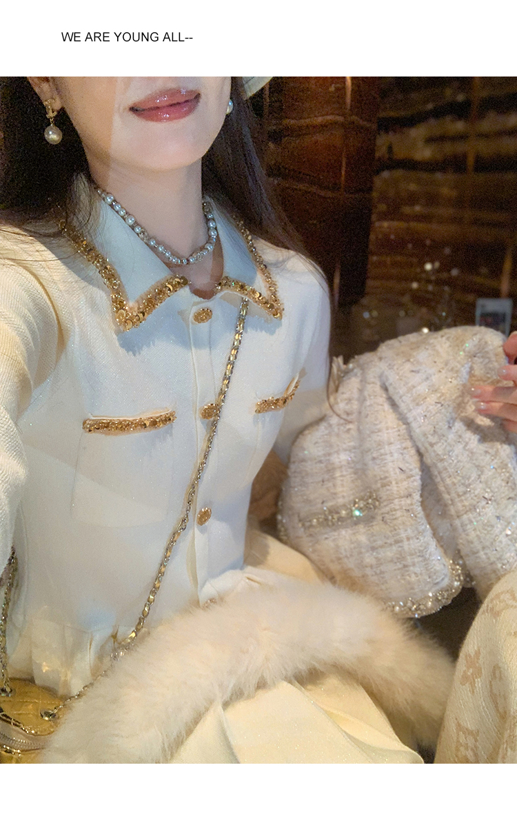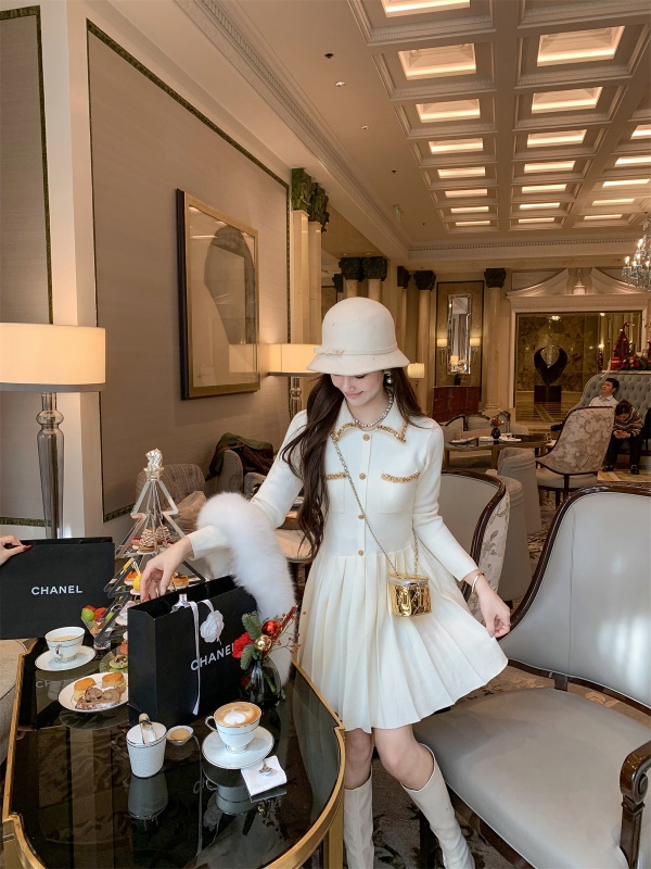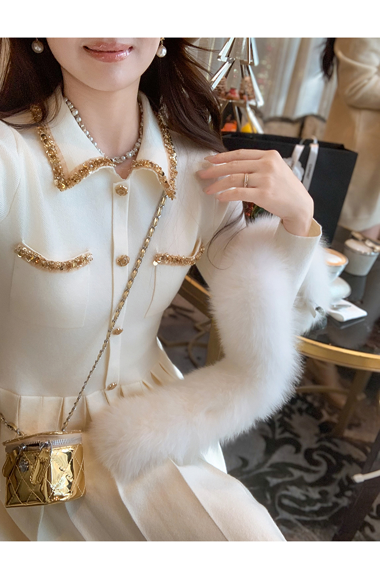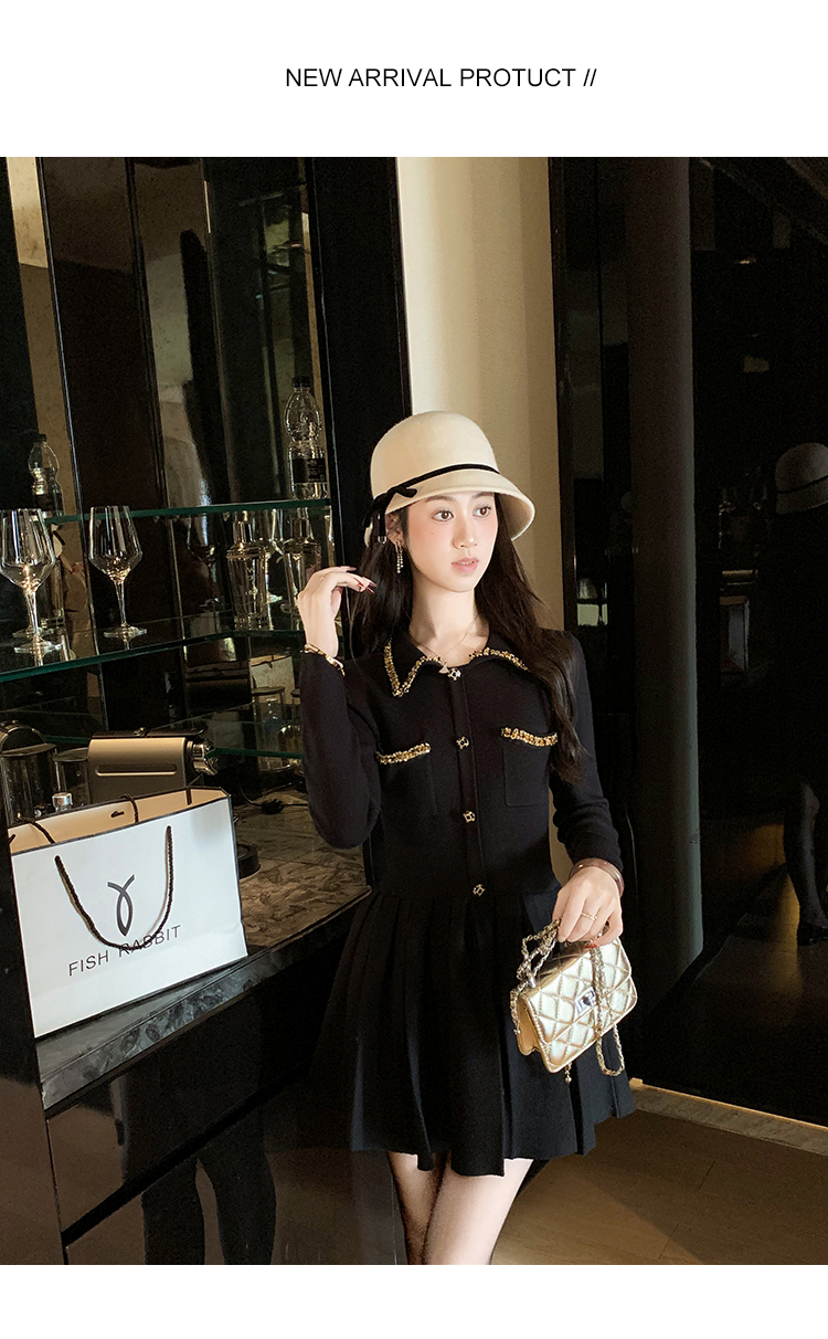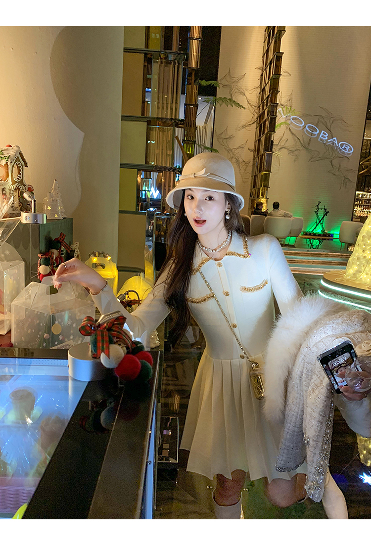 商品名称:法式千金针织连衣裙女春秋2025新款百褶打底裙子