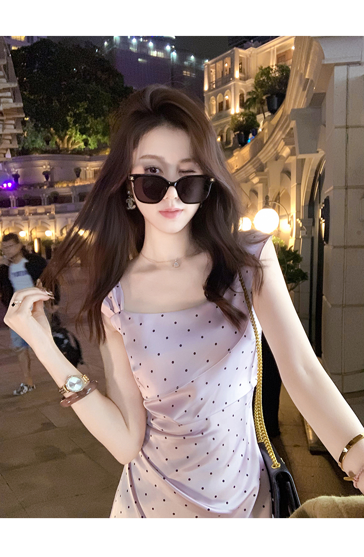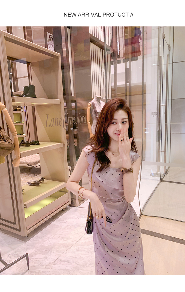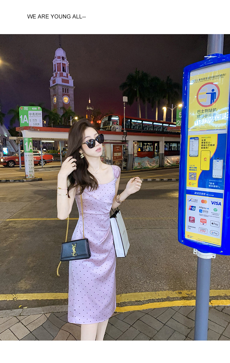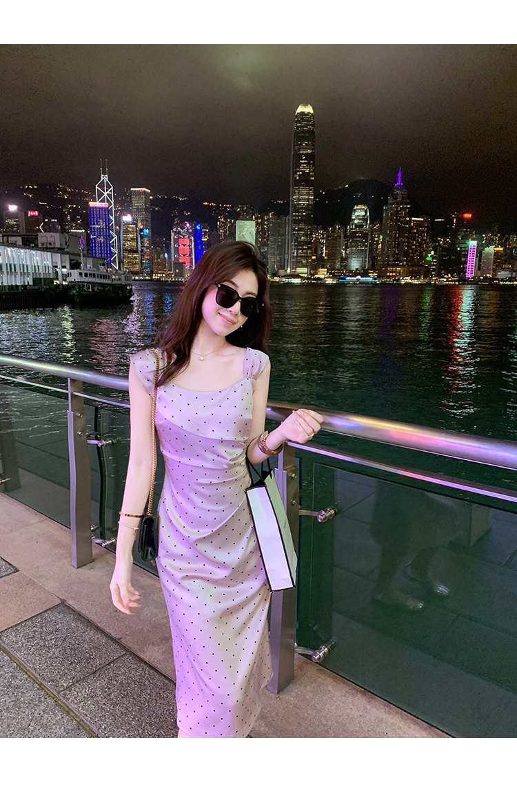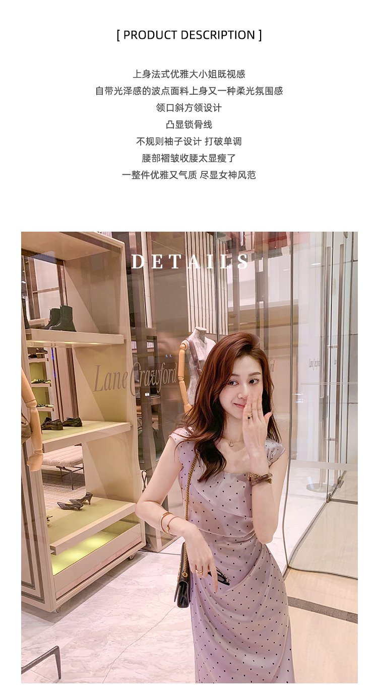 商品名称:斜领波点收腰连衣裙女气质性感法式裙子紫色高级长裙