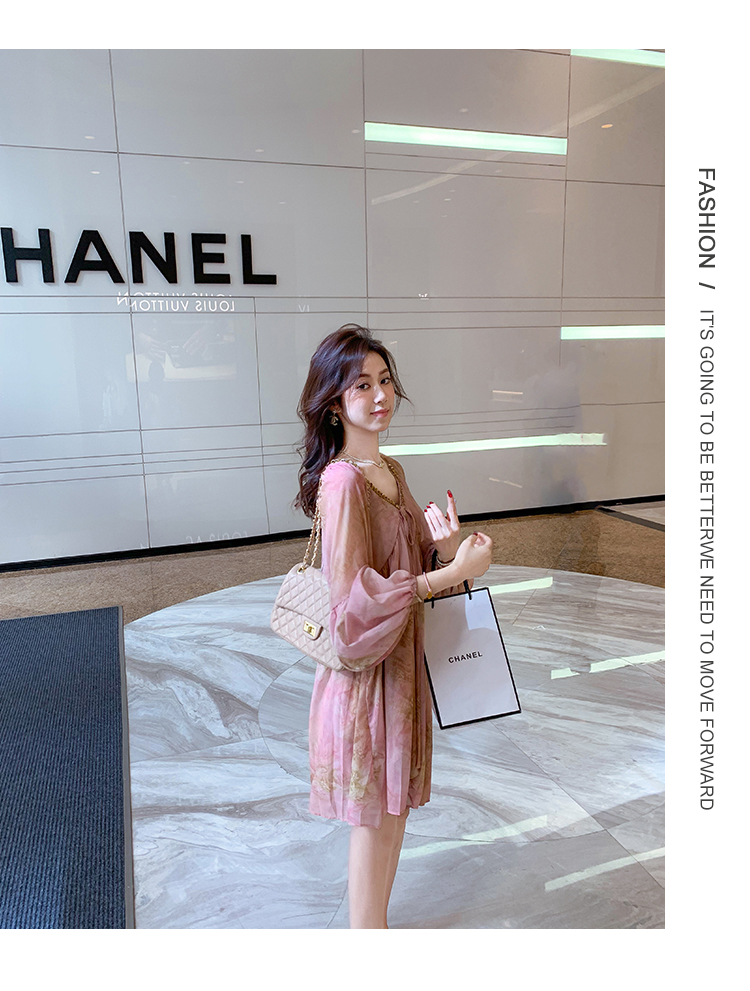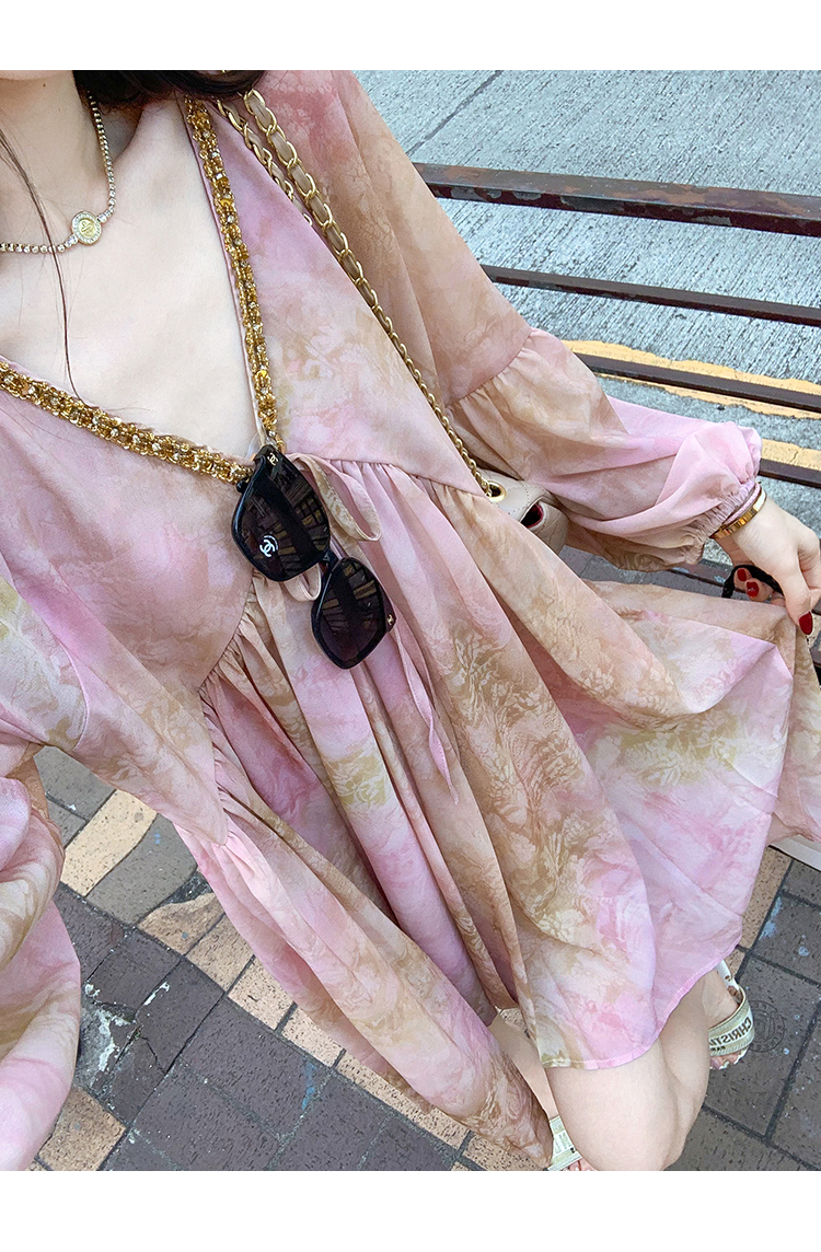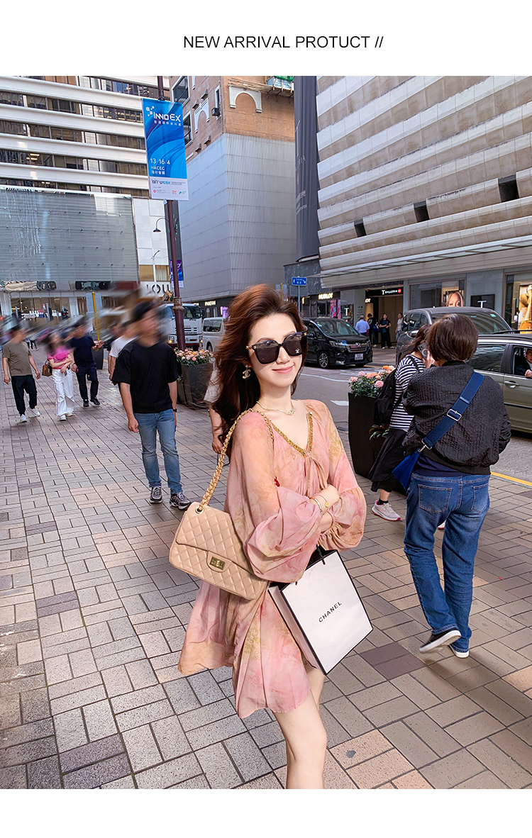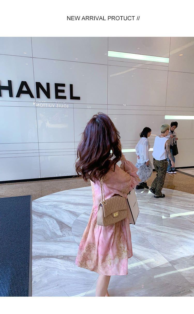 高级雪纺印花连衣裙女夏季新款超好看独特漂亮裙子