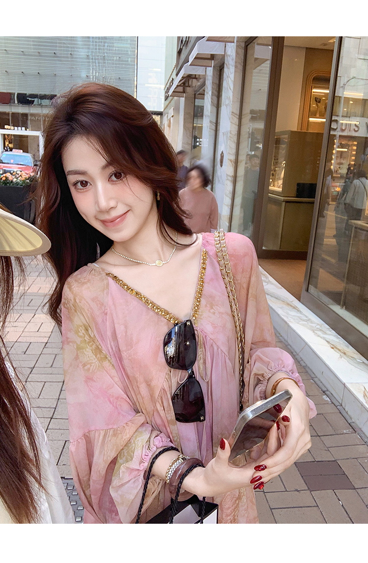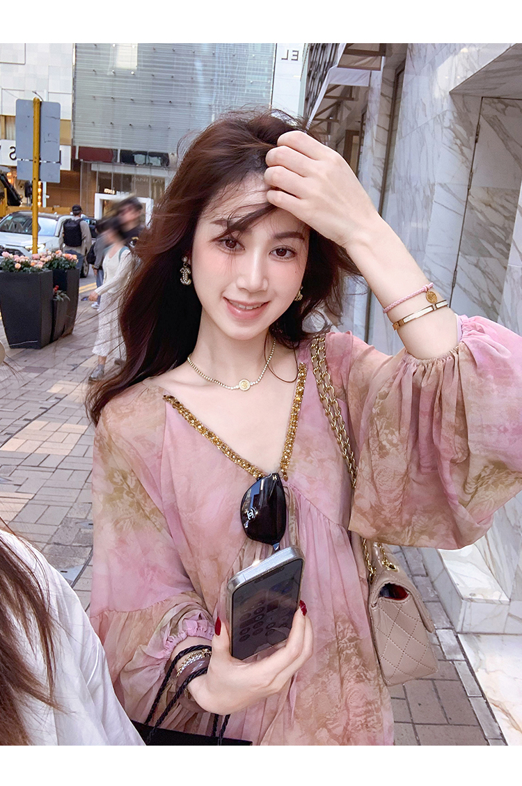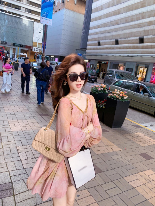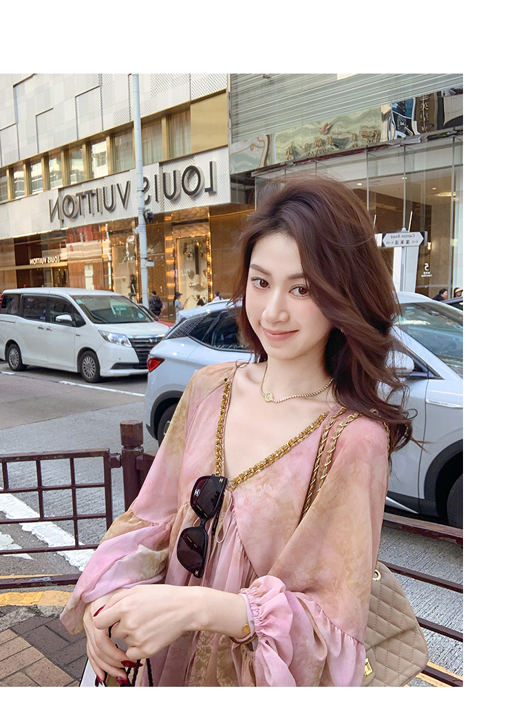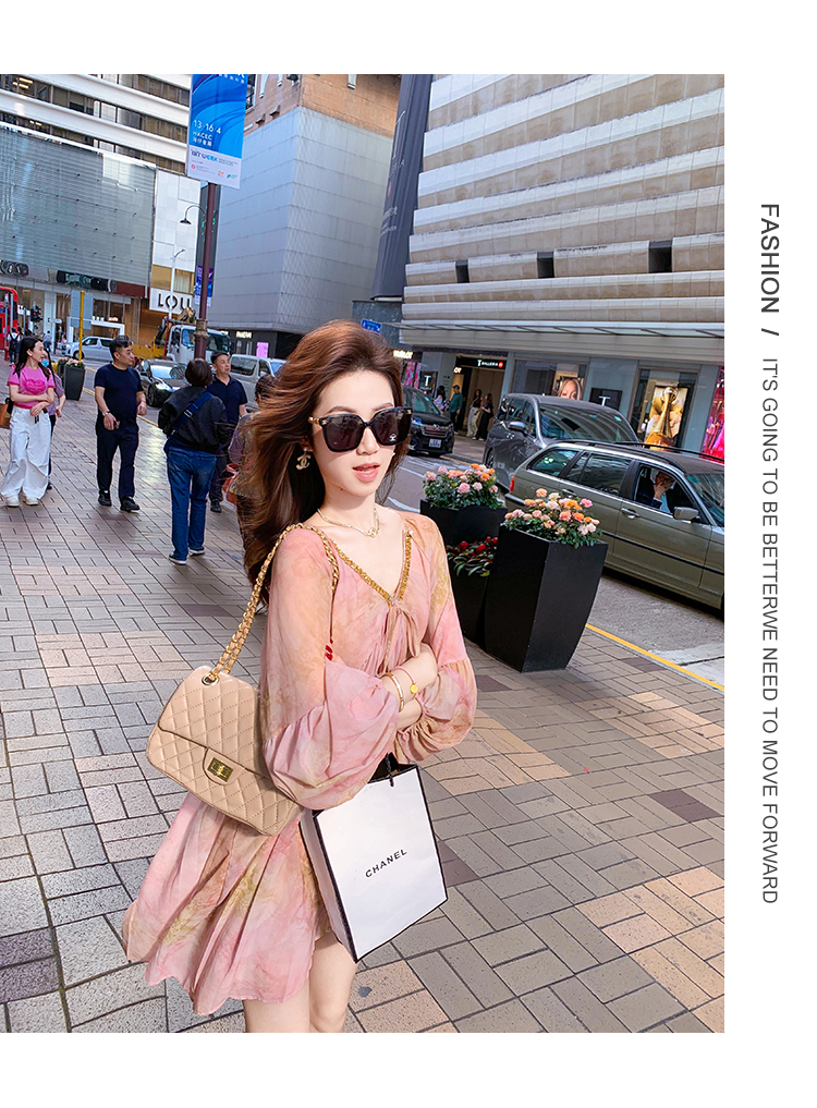 高级雪纺印花连衣裙女夏季新款超好看独特漂亮裙子