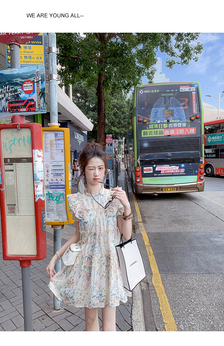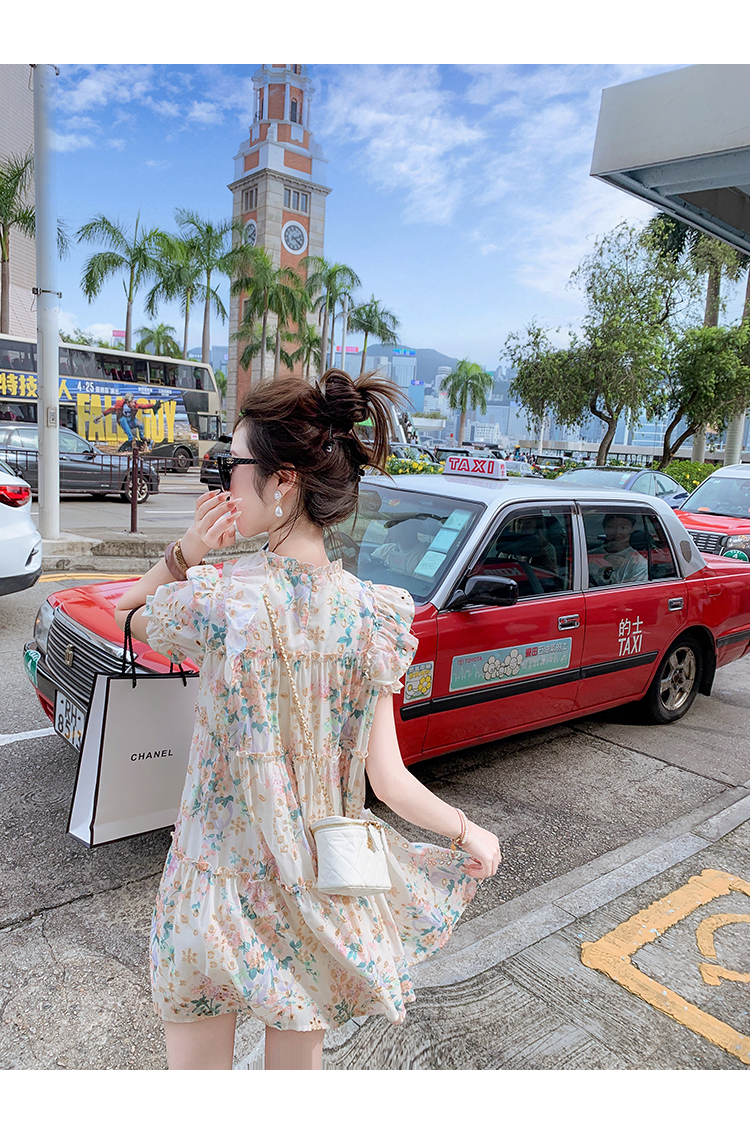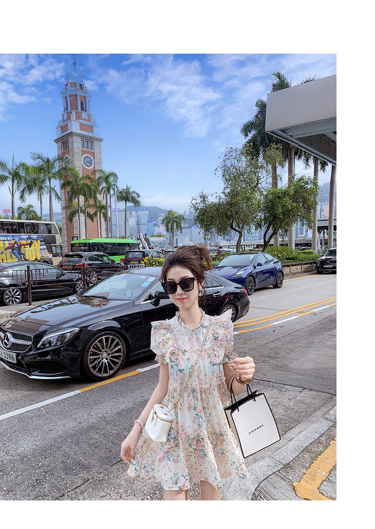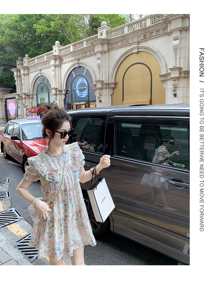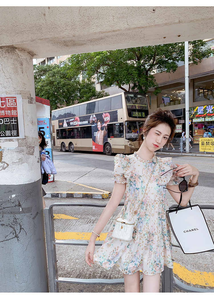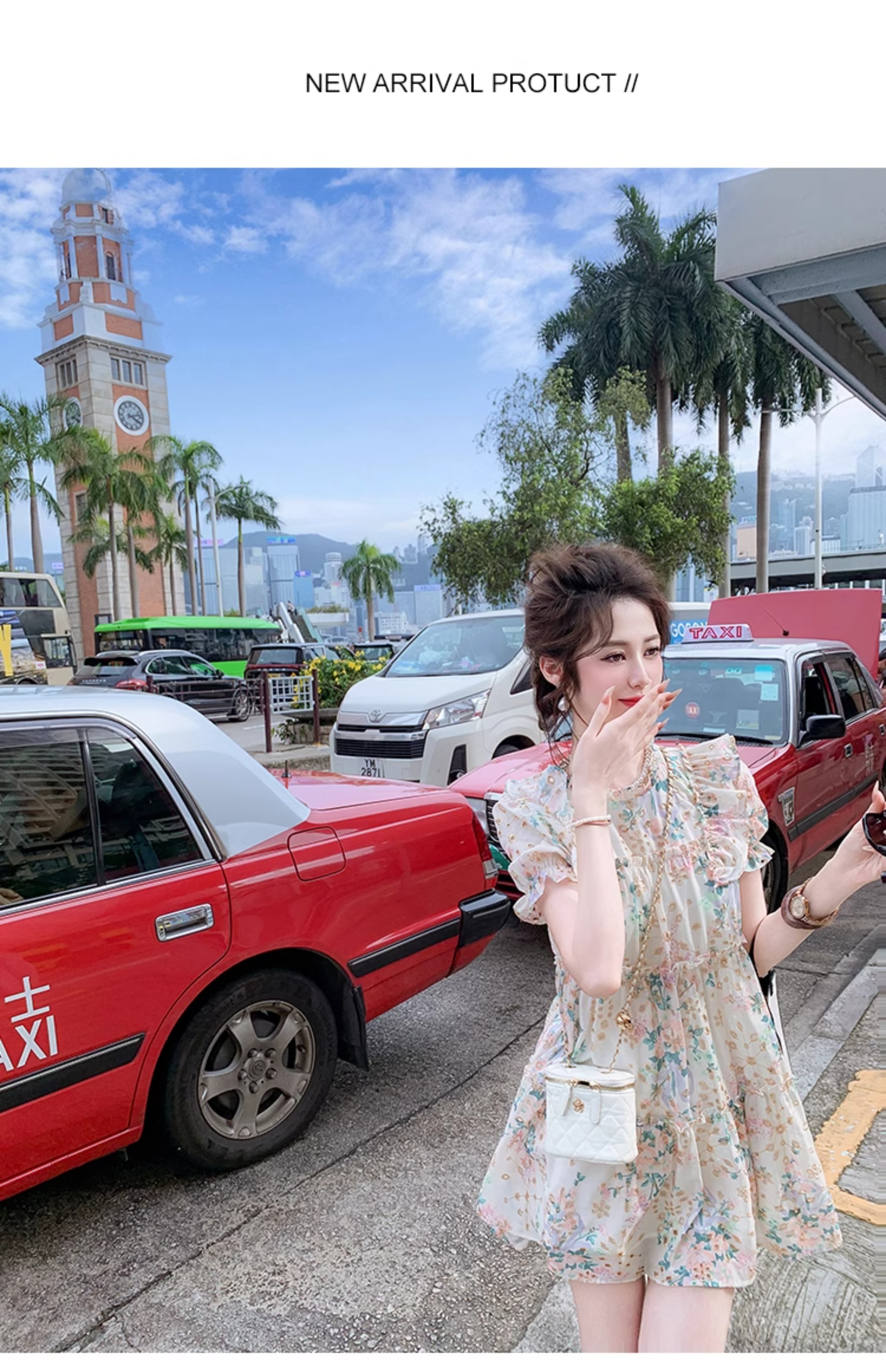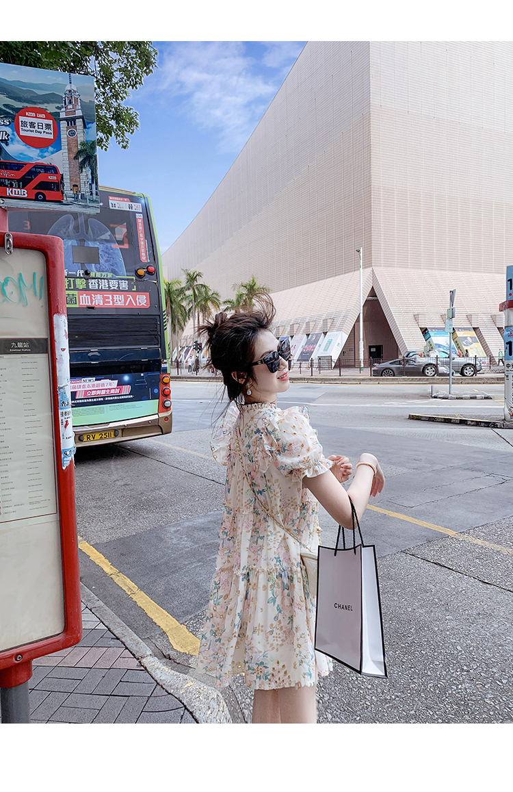 商品名称:小香风绝美印花连衣裙女夏季新款法式超甜中长裙子