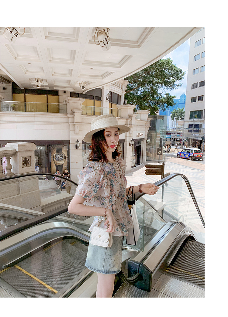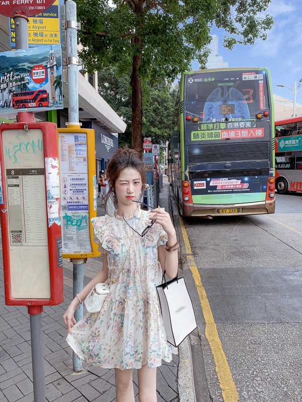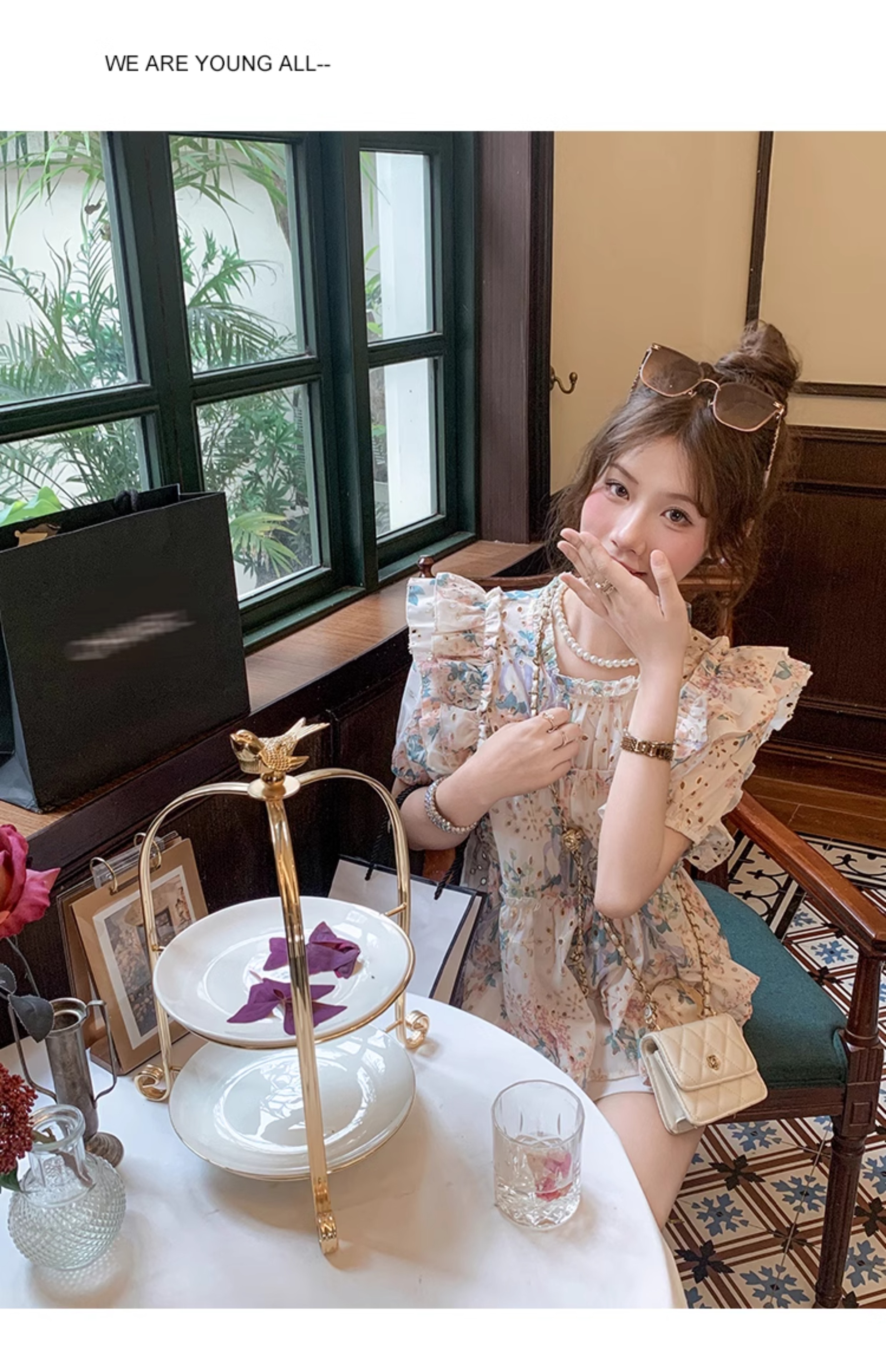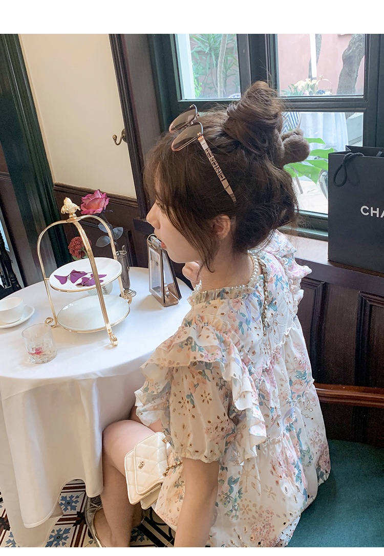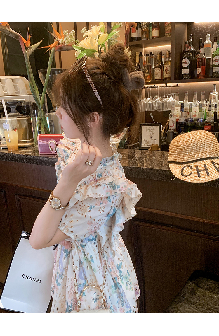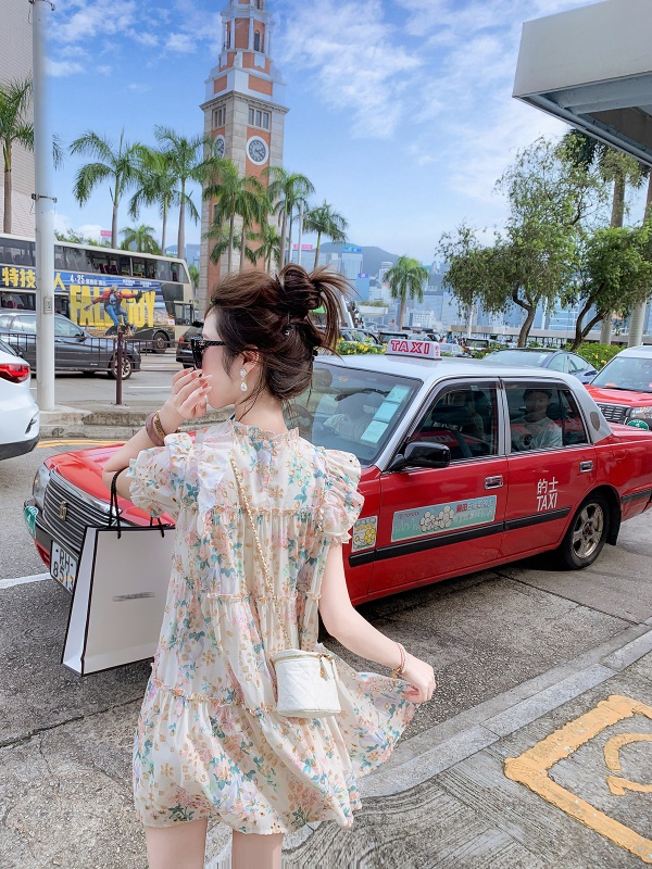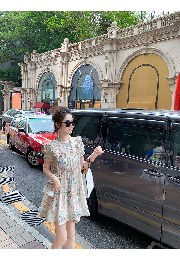 商品名称:小香风绝美印花连衣裙女夏季新款法式超甜中长裙子