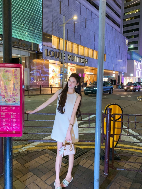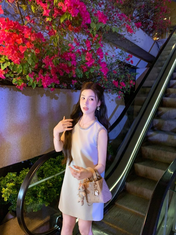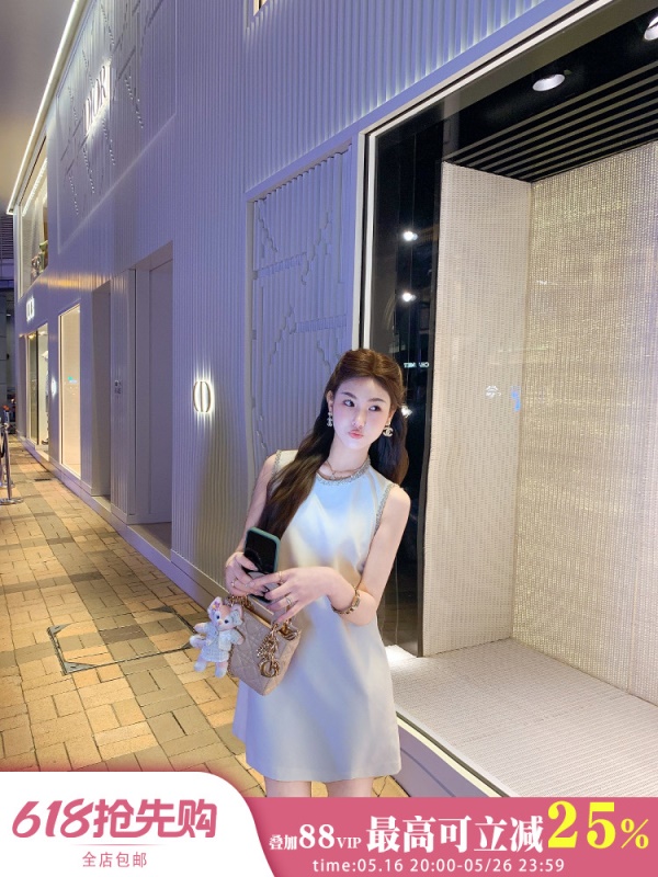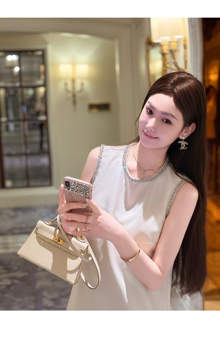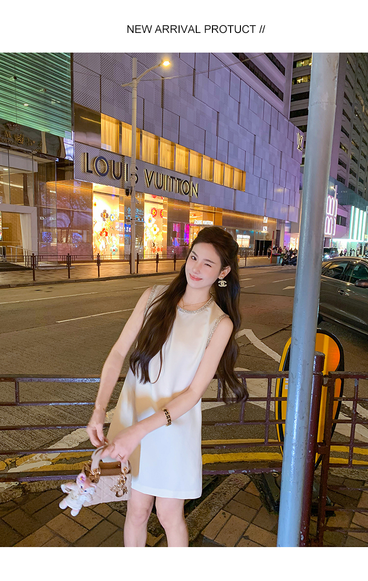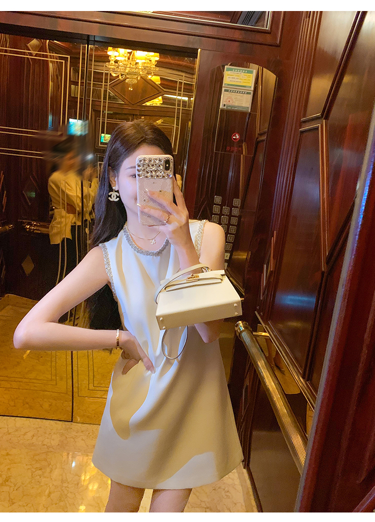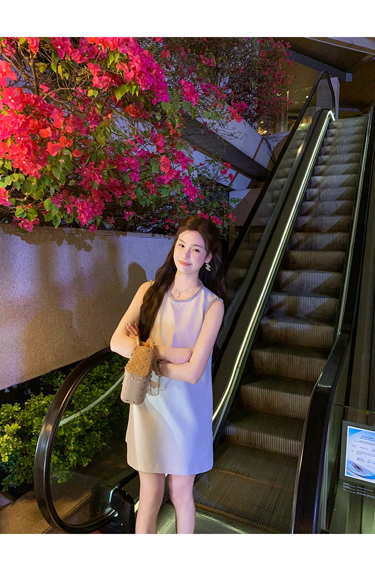 高级气质无袖连衣裙女夏季新款A字裙超好看白色裙子