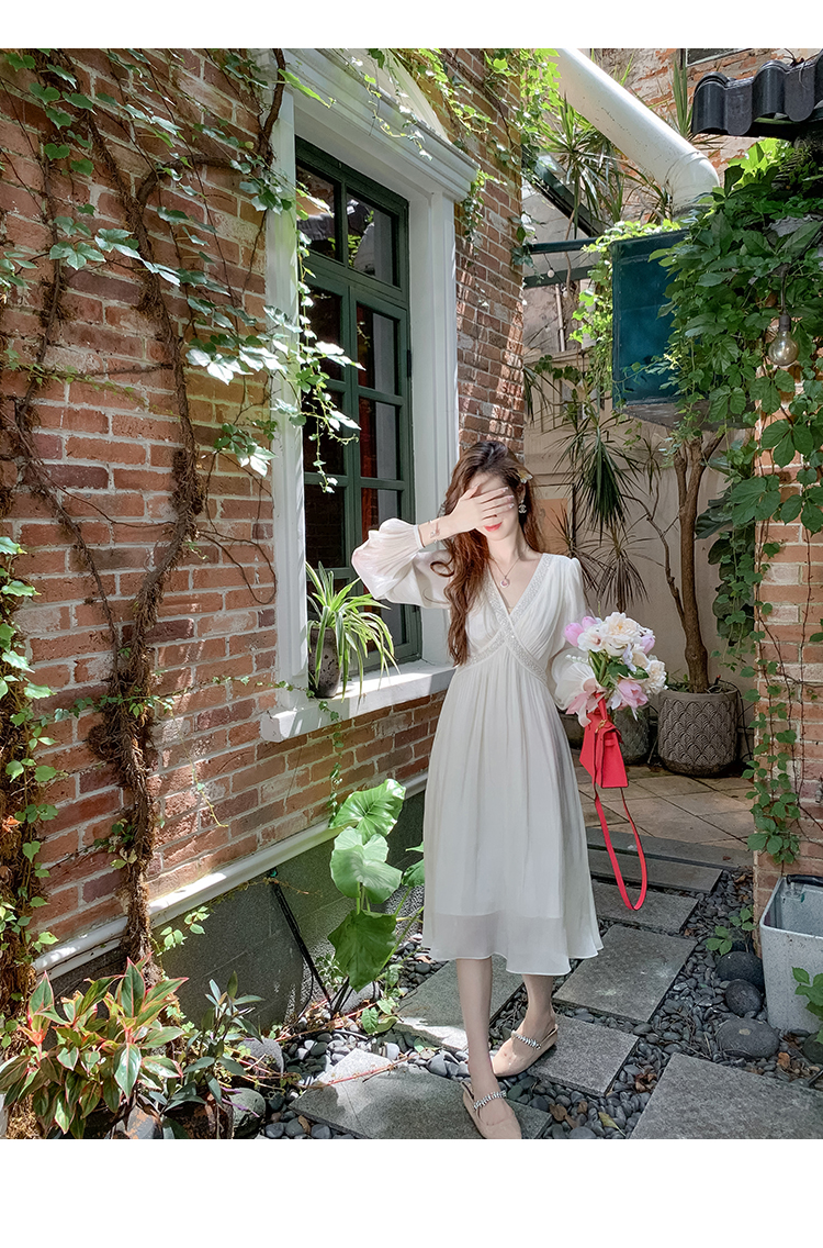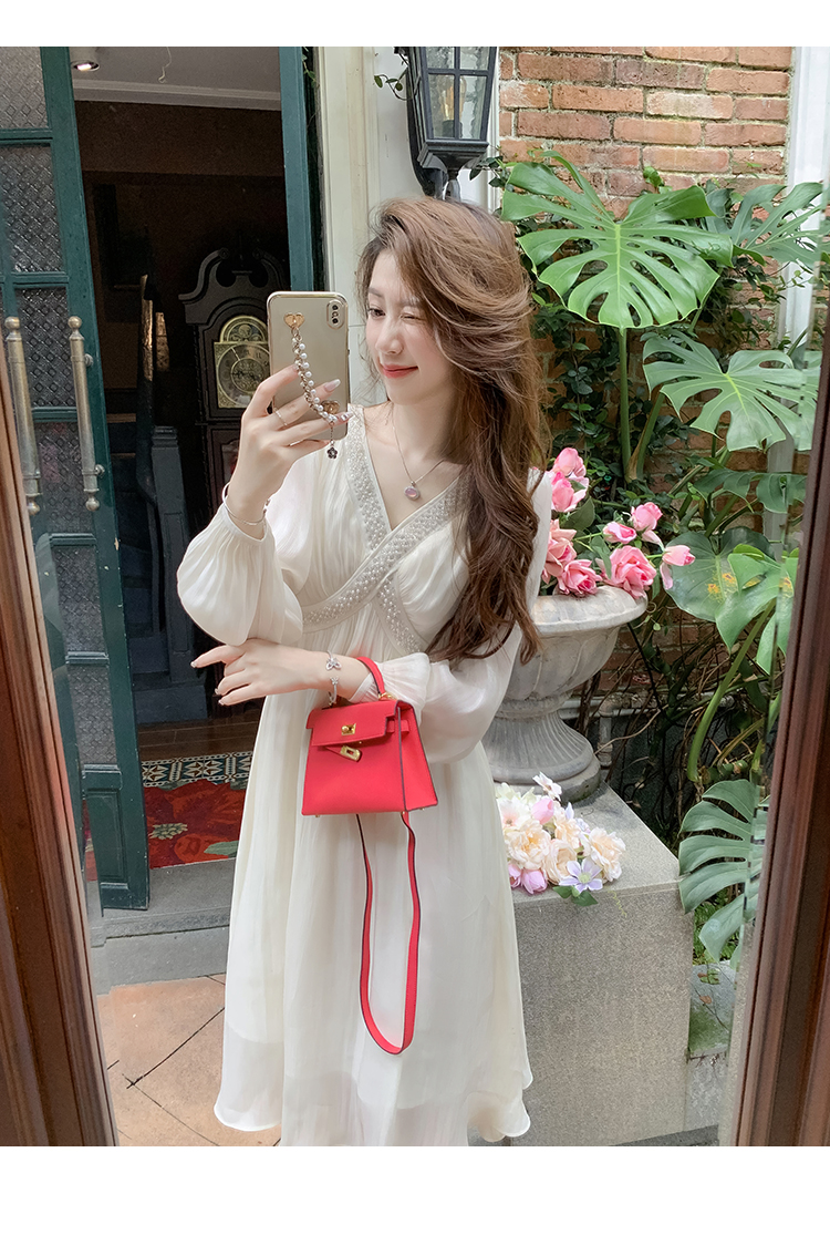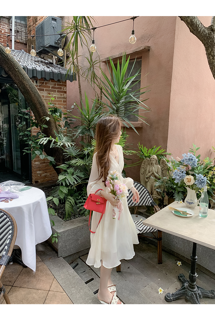 鱼兔子法式小香风连衣裙女2025春夏新款高级感仙气白色雪纺内搭裙
