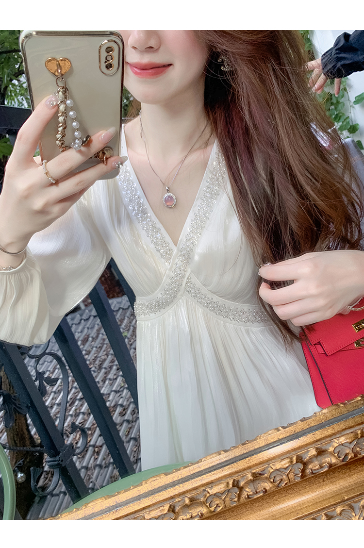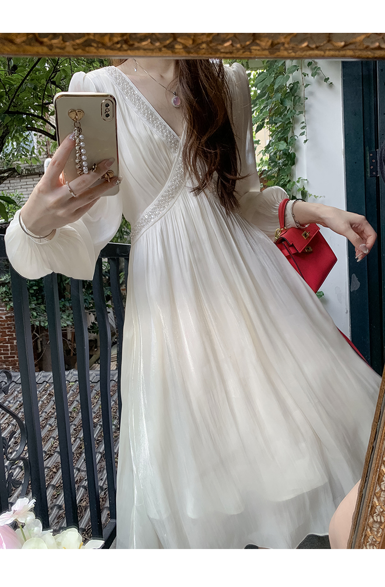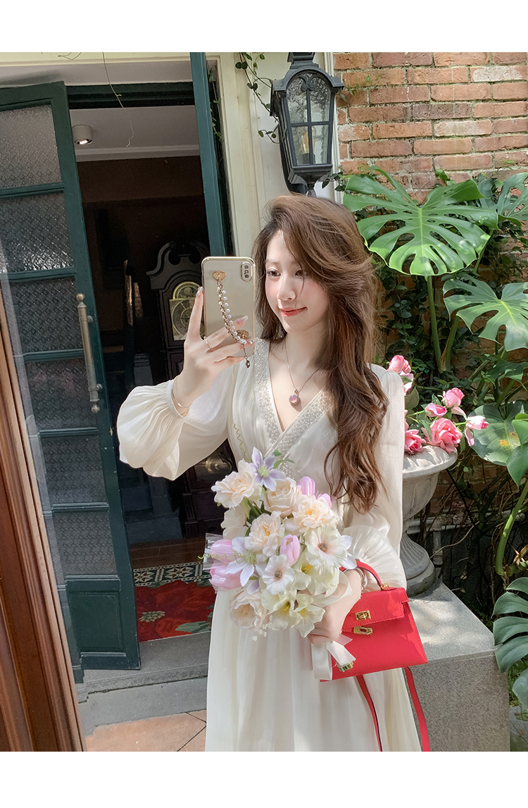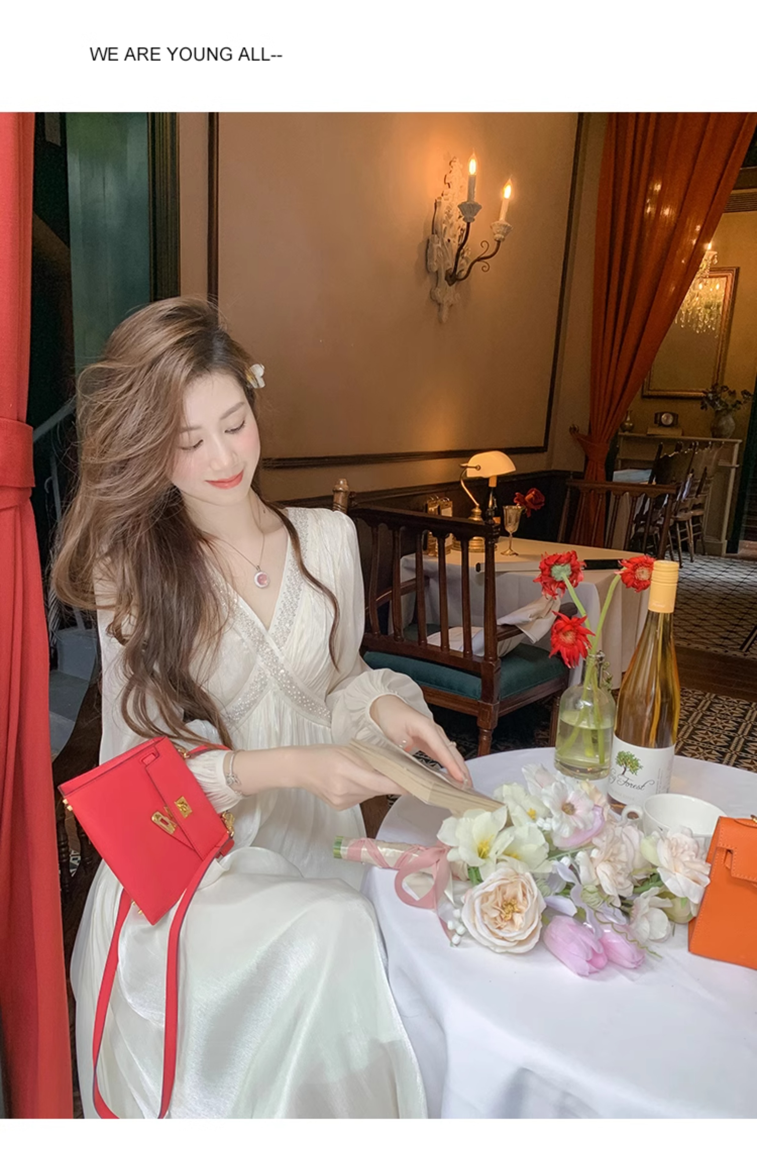 鱼兔子法式小香风连衣裙女2025春夏新款高级感仙气白色雪纺内搭裙