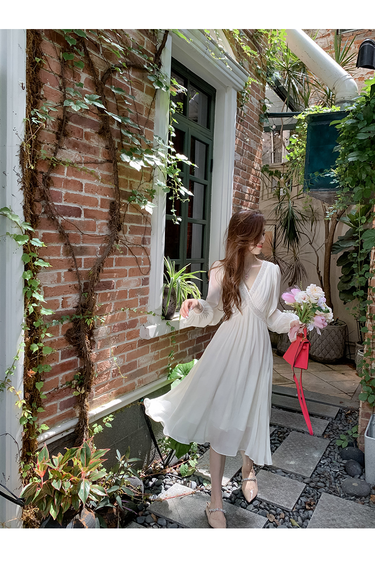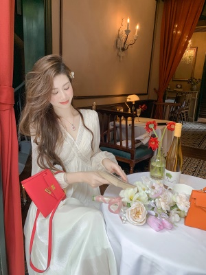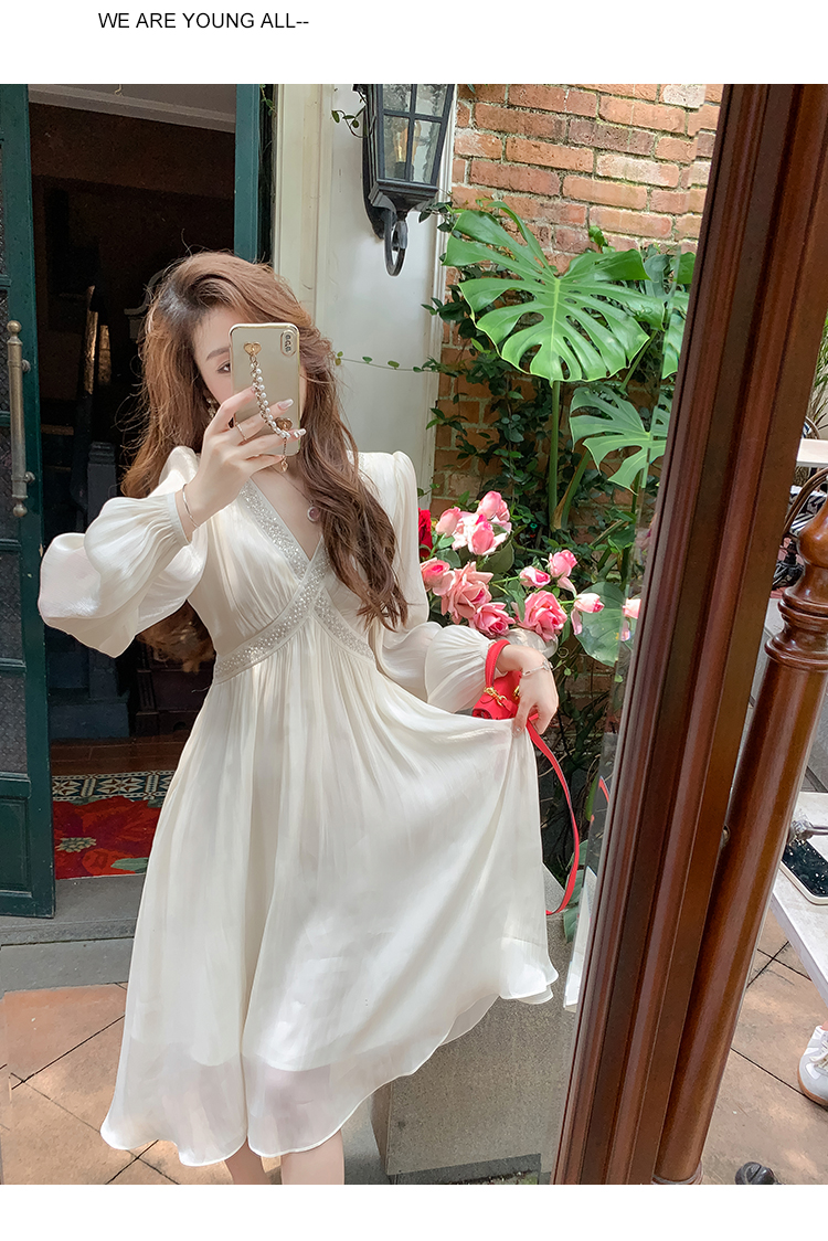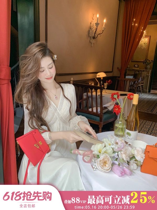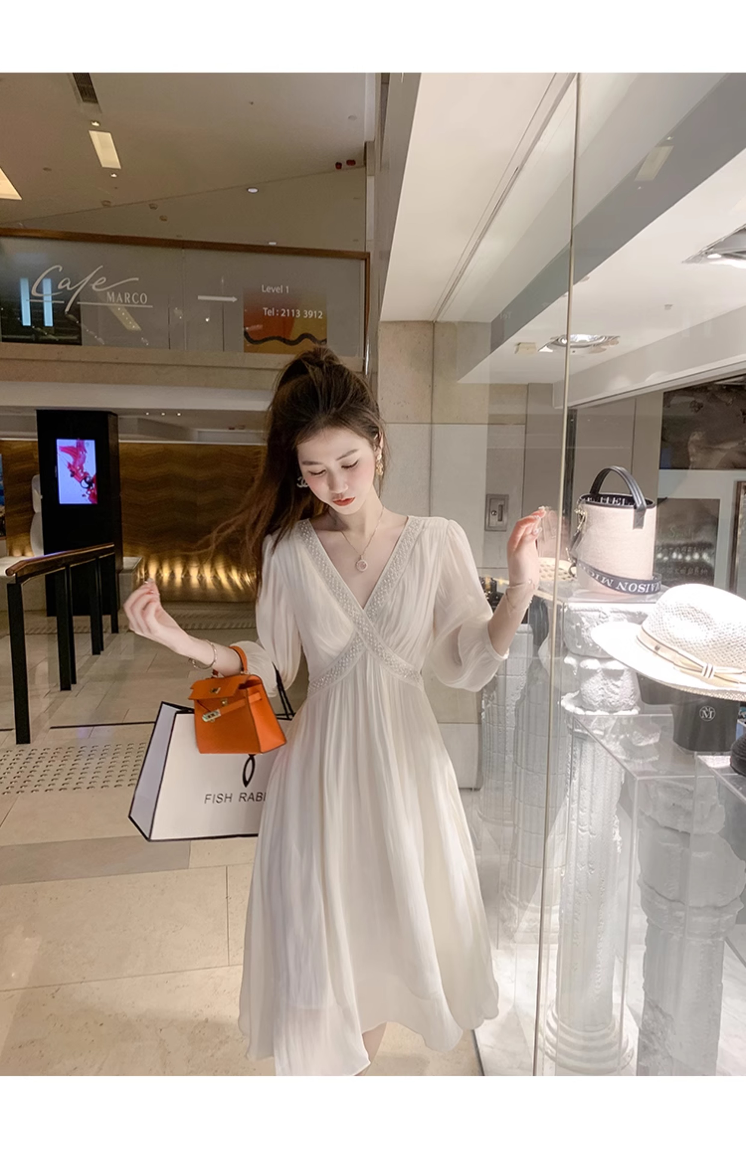商品名称:鱼兔子法式小香风连衣裙女2025春夏新款高级感仙气白色雪纺内搭裙