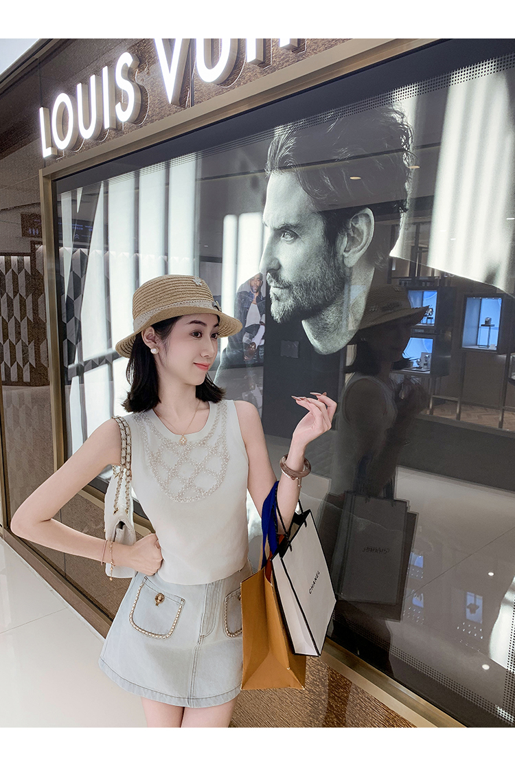 小香风时尚穿搭一整套女2025夏装新款法式甜美蕾丝拼接休闲套装裙