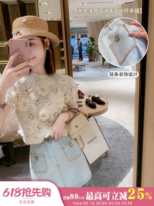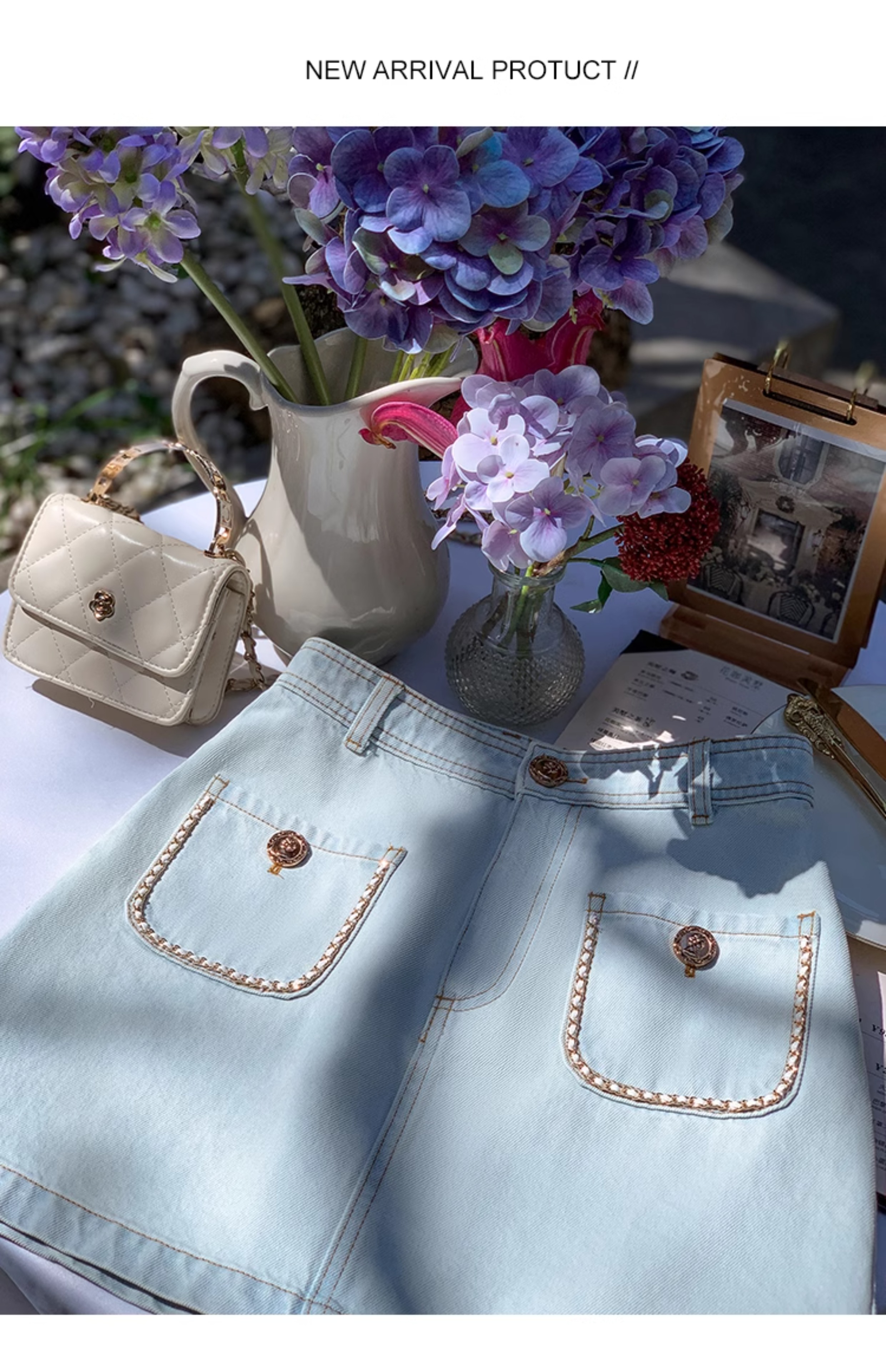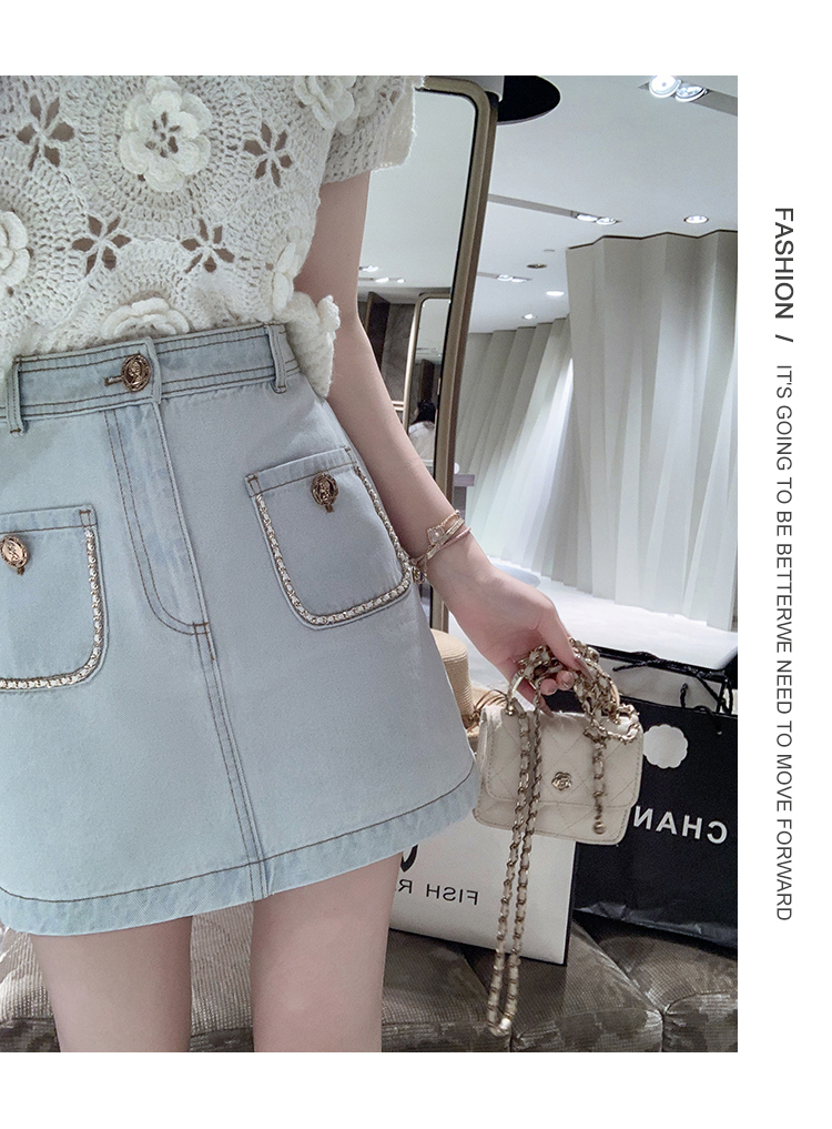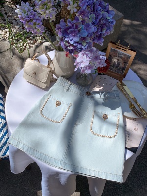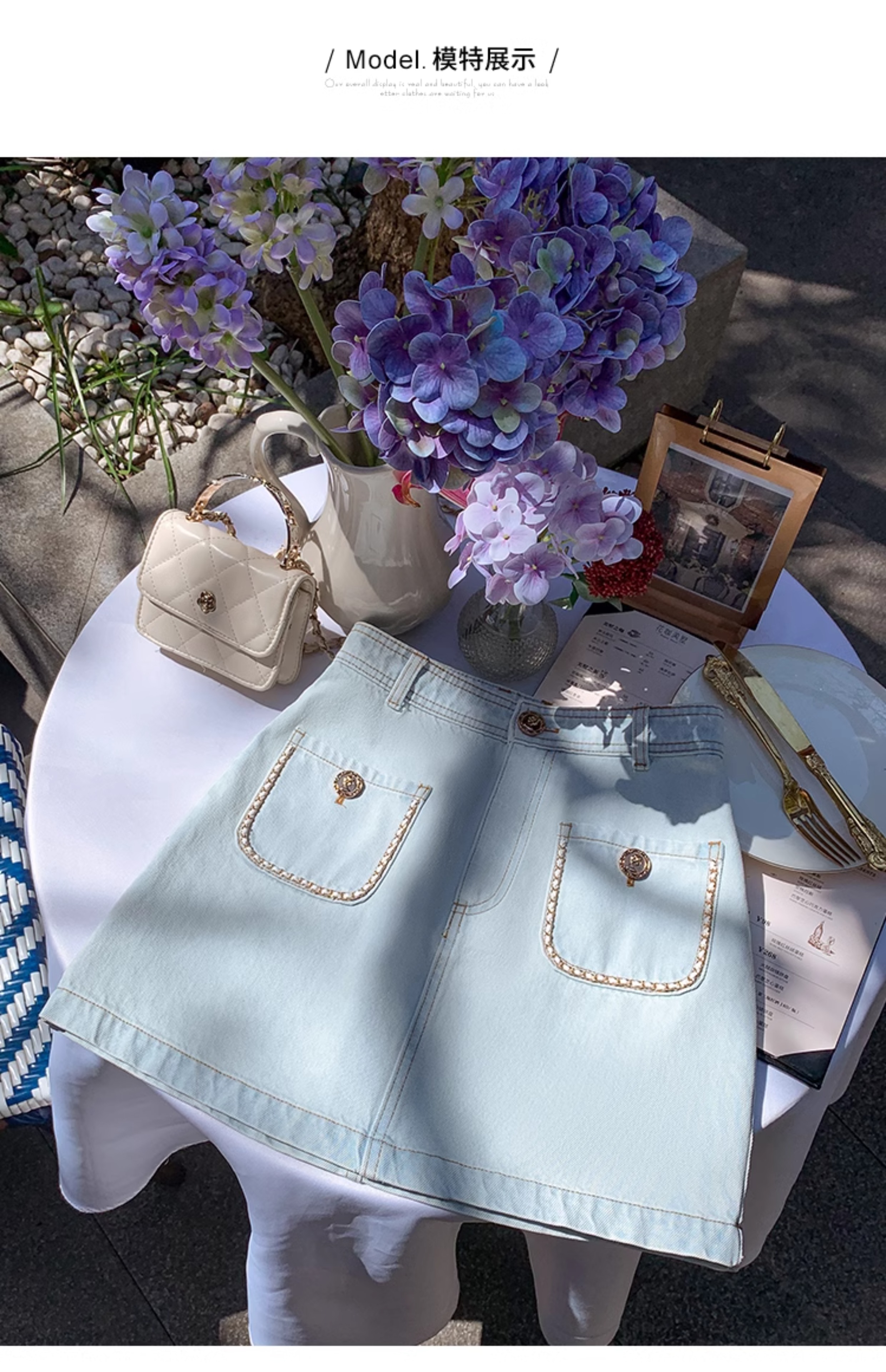 商品名称:水洗浅色A字牛仔裙女2025年新款夏季高腰小香风半裙