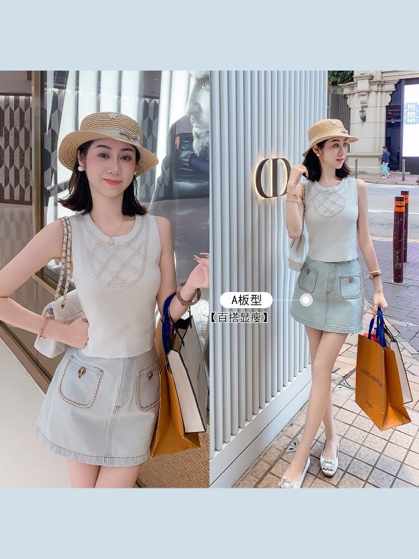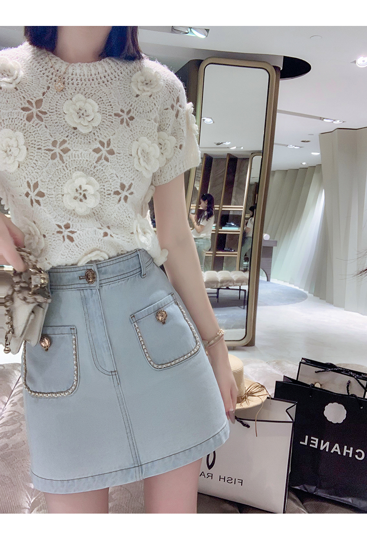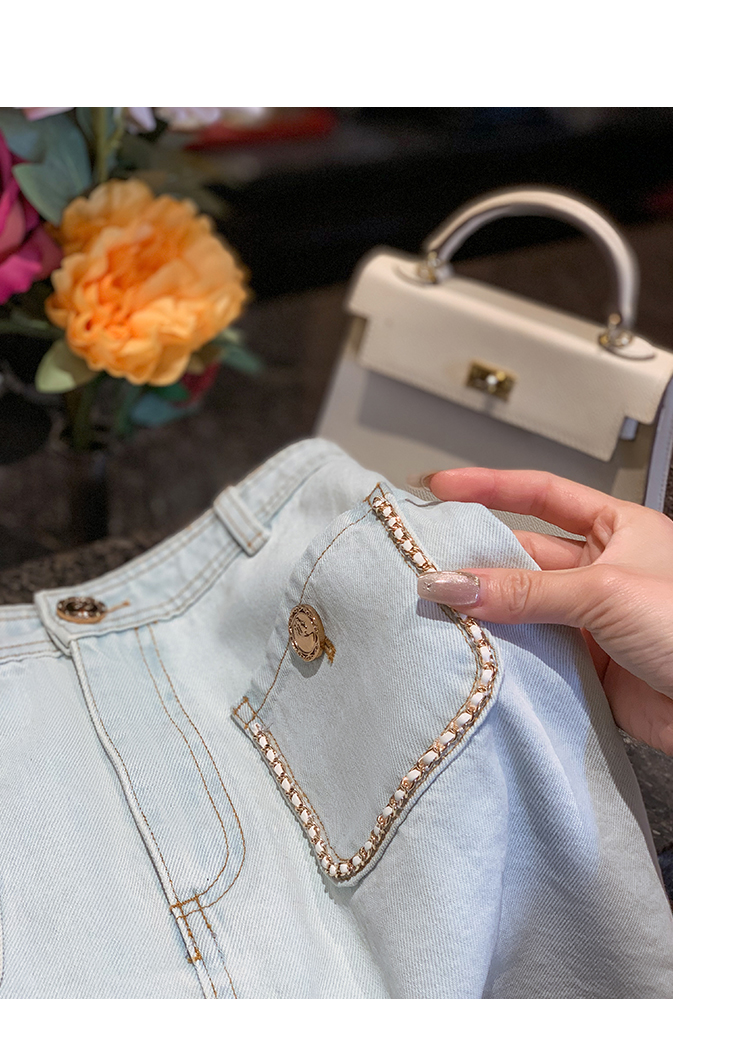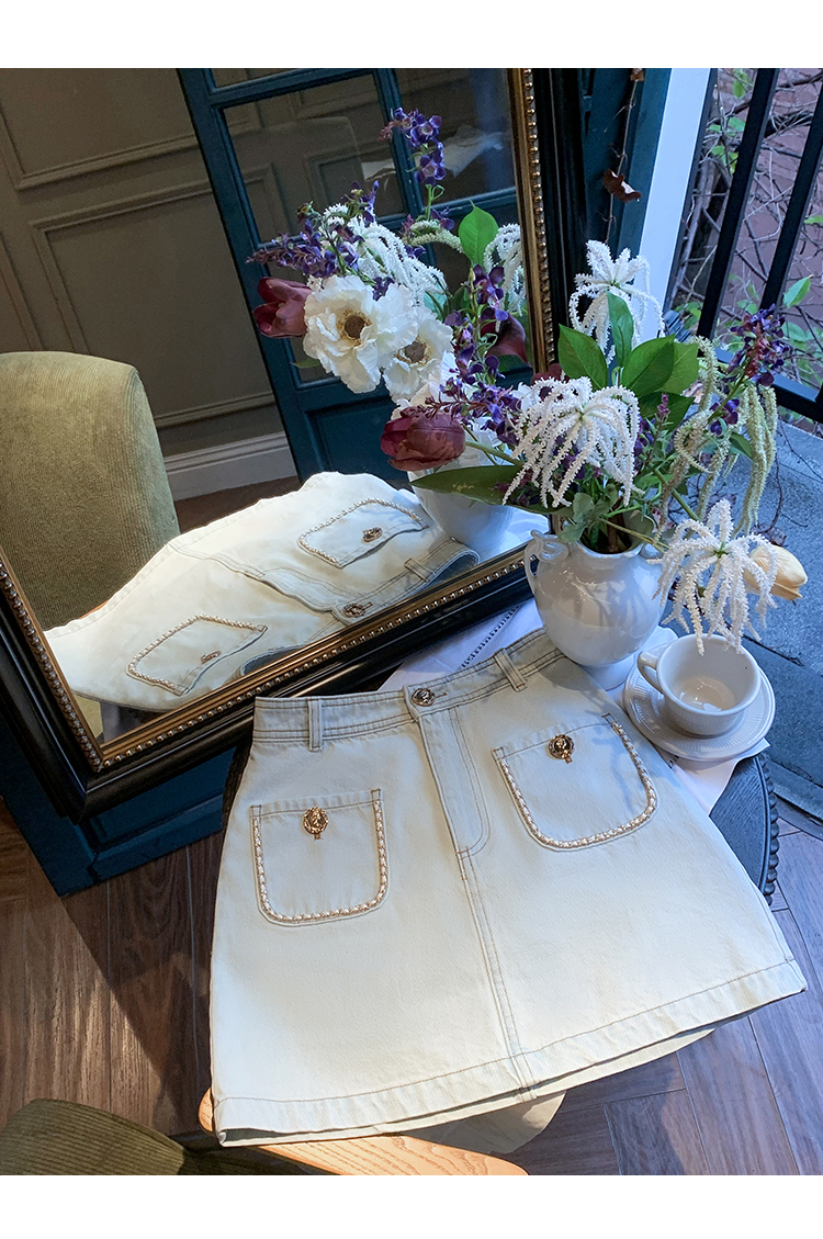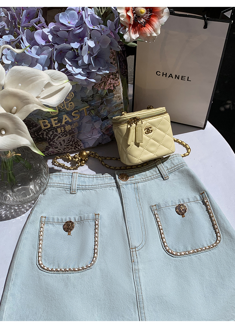 商品名称:水洗浅色A字牛仔裙女2025年新款夏季高腰小香风半裙