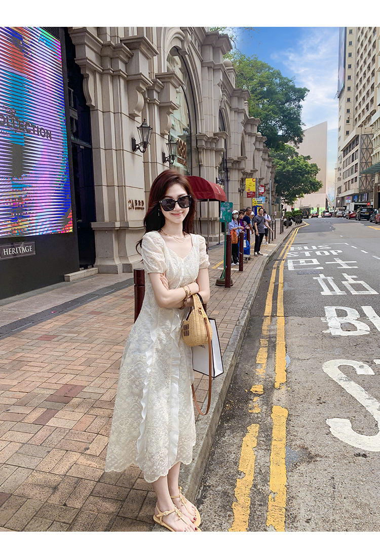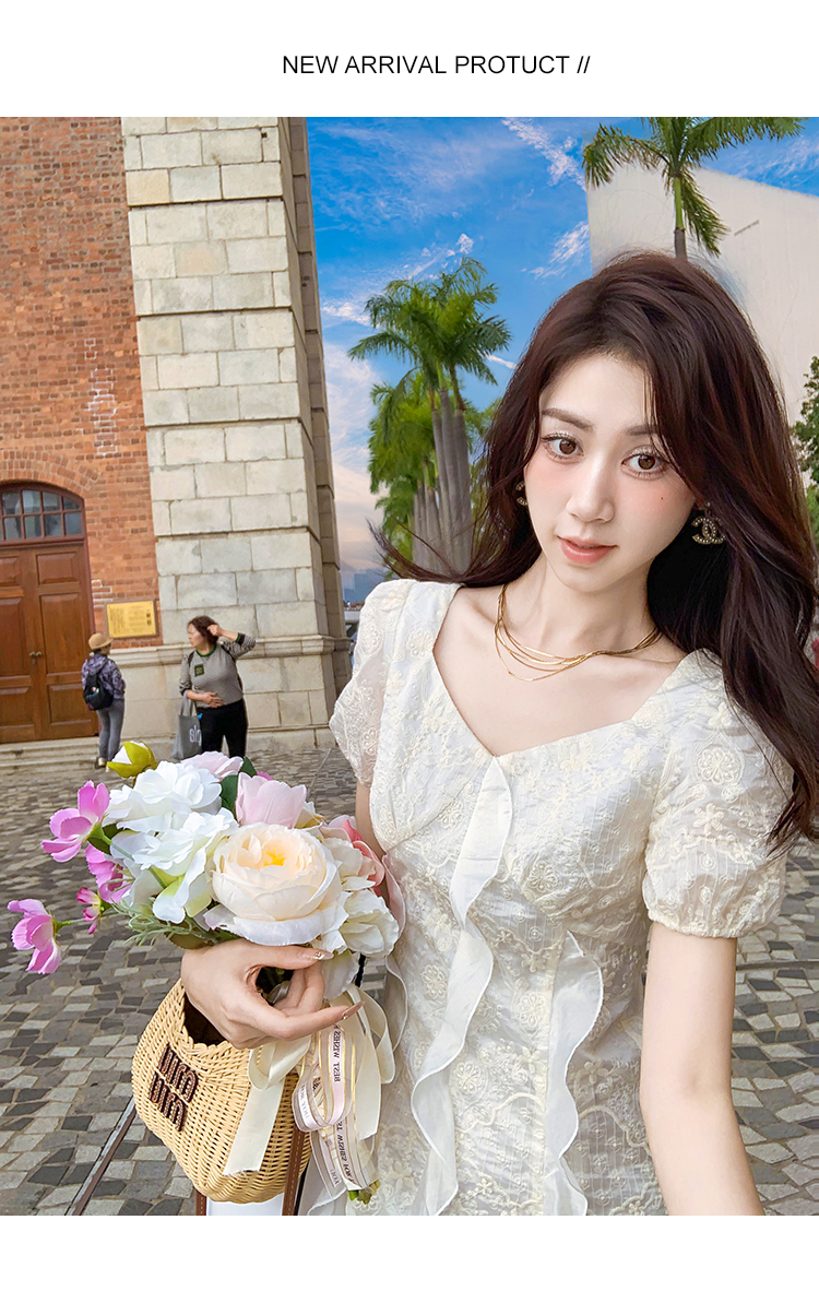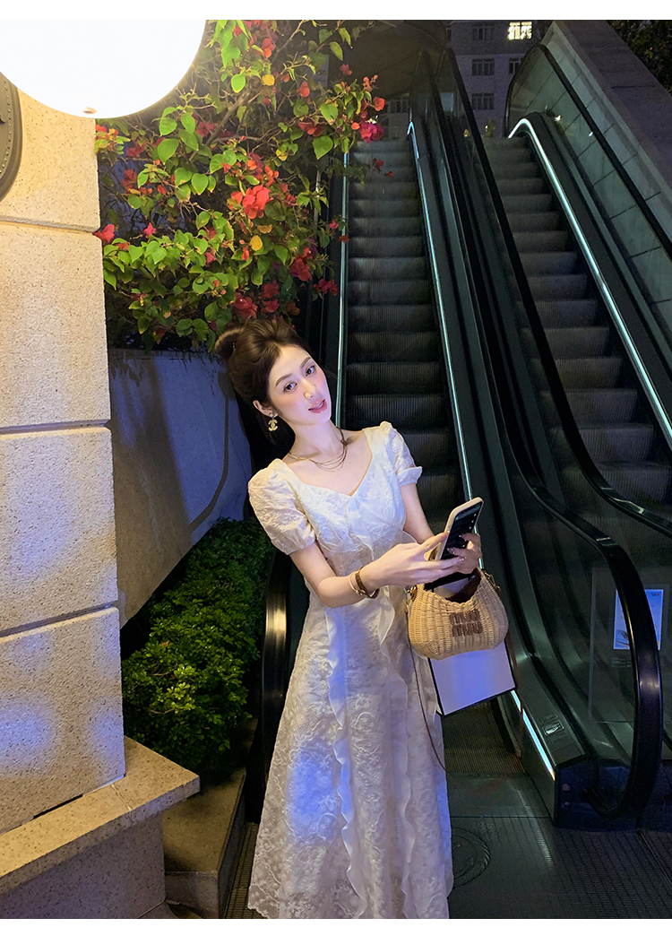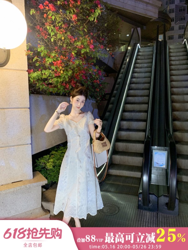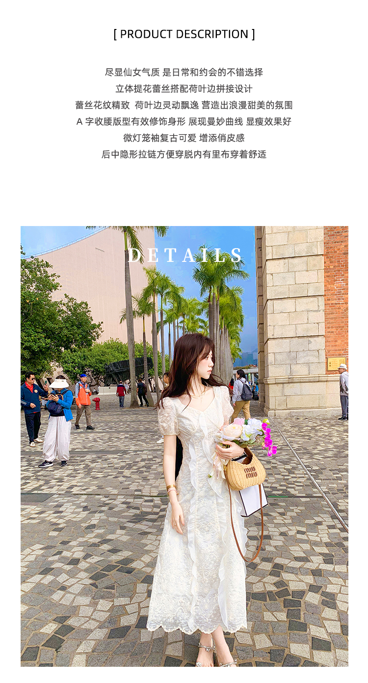 商品名称:荷叶边蕾丝白色连衣裙女开春绝美高级法式长款裙子