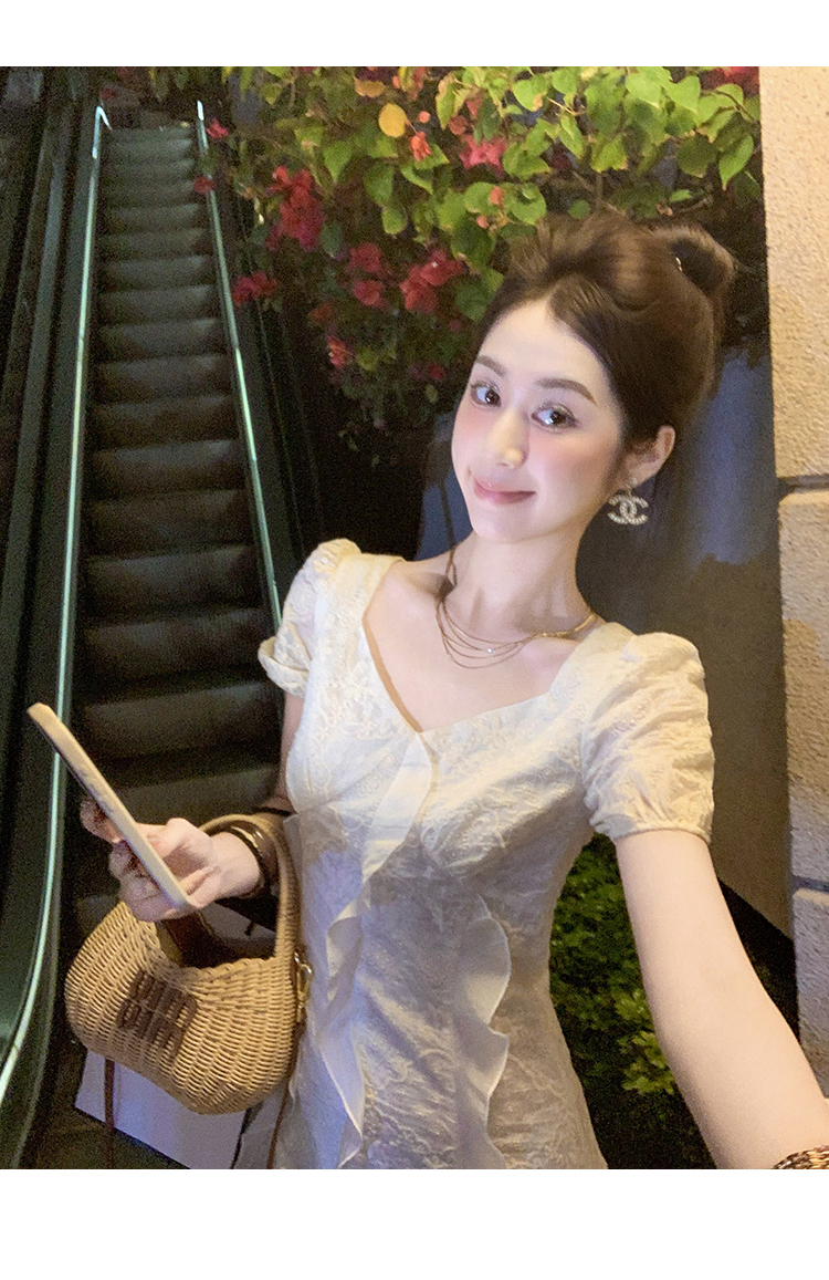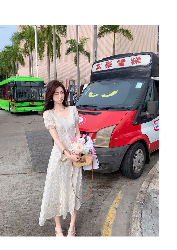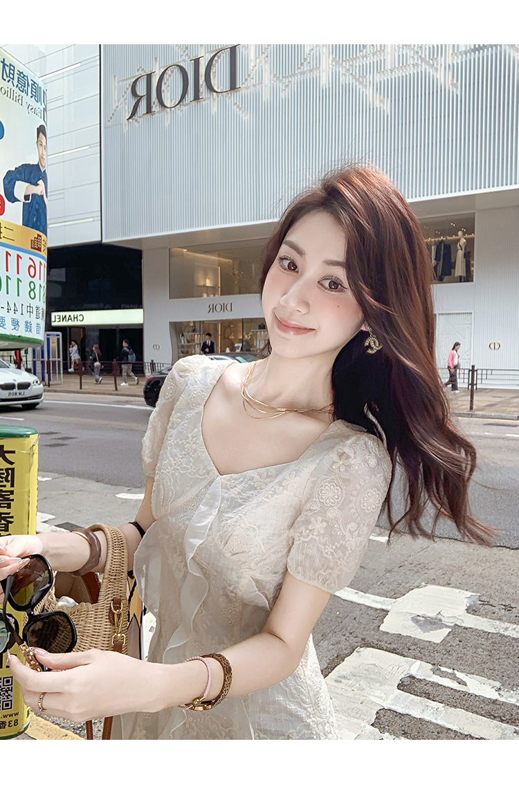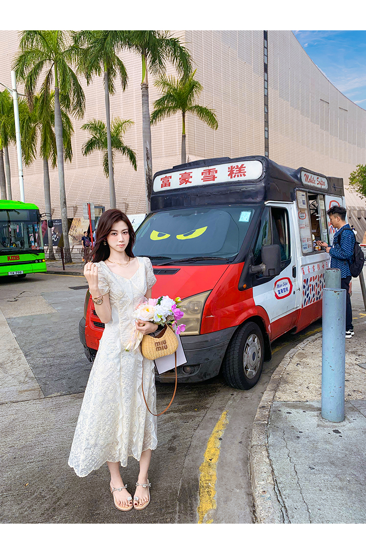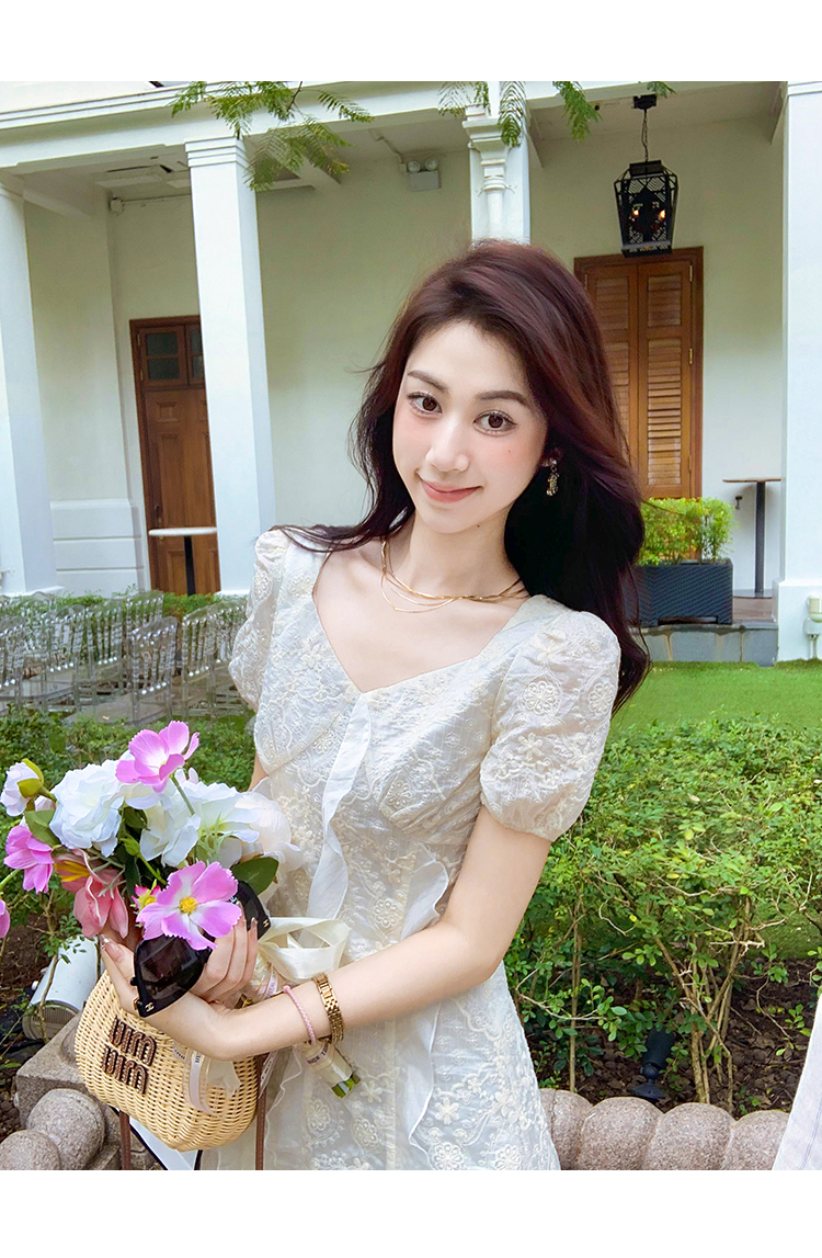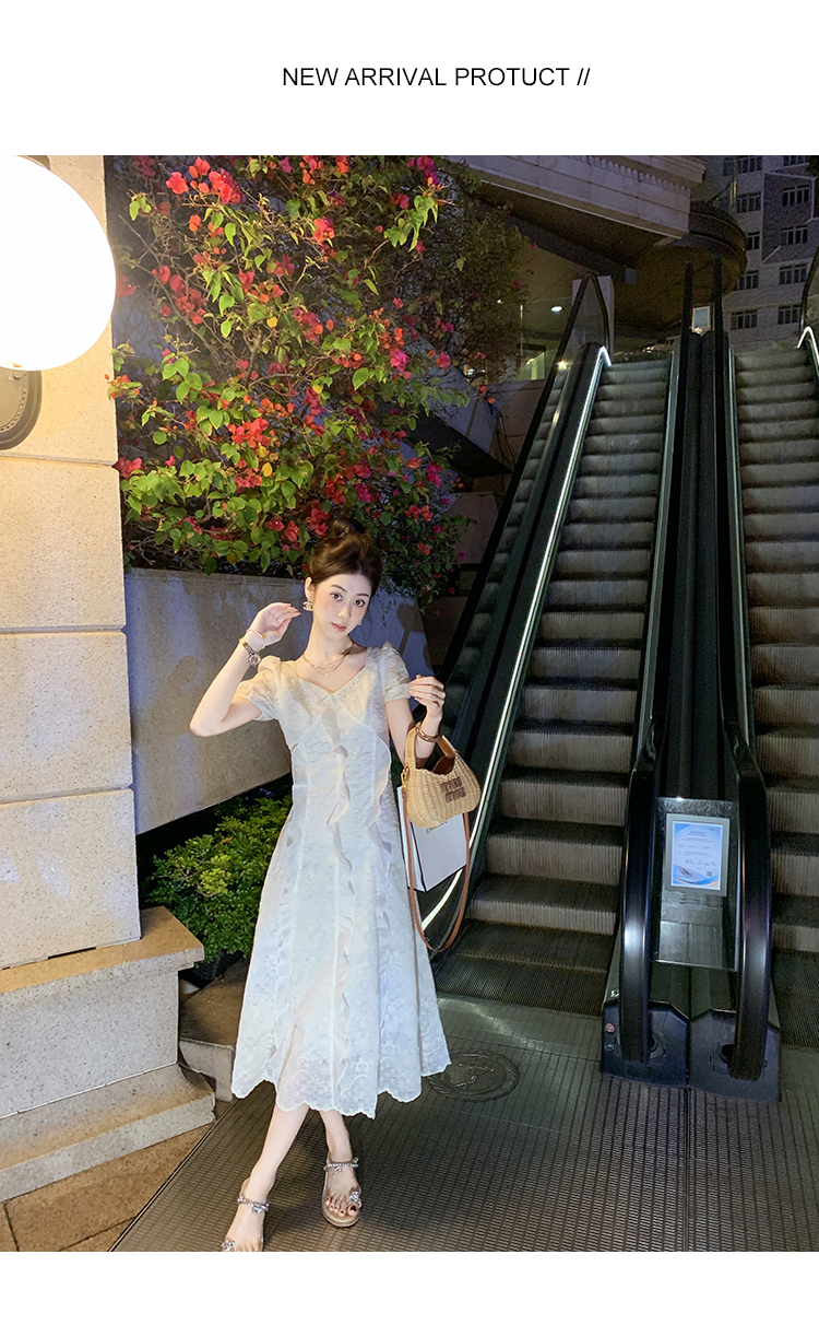 商品名称:荷叶边蕾丝白色连衣裙女开春绝美高级法式长款裙子