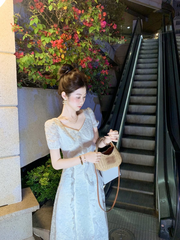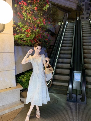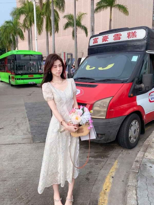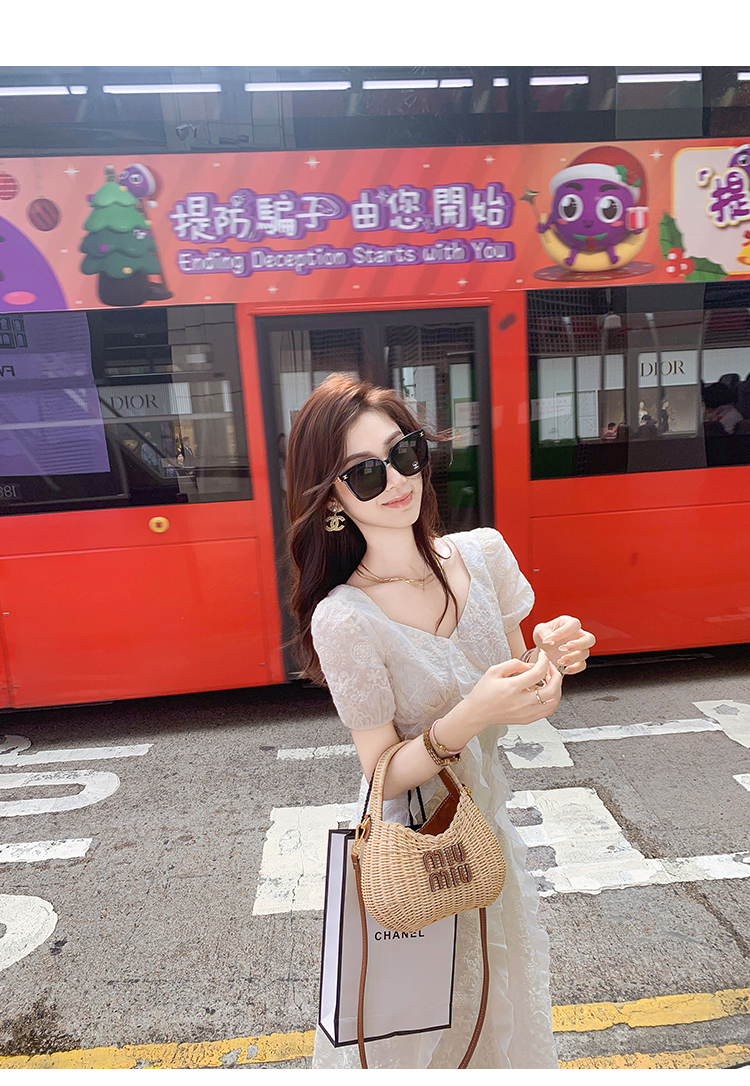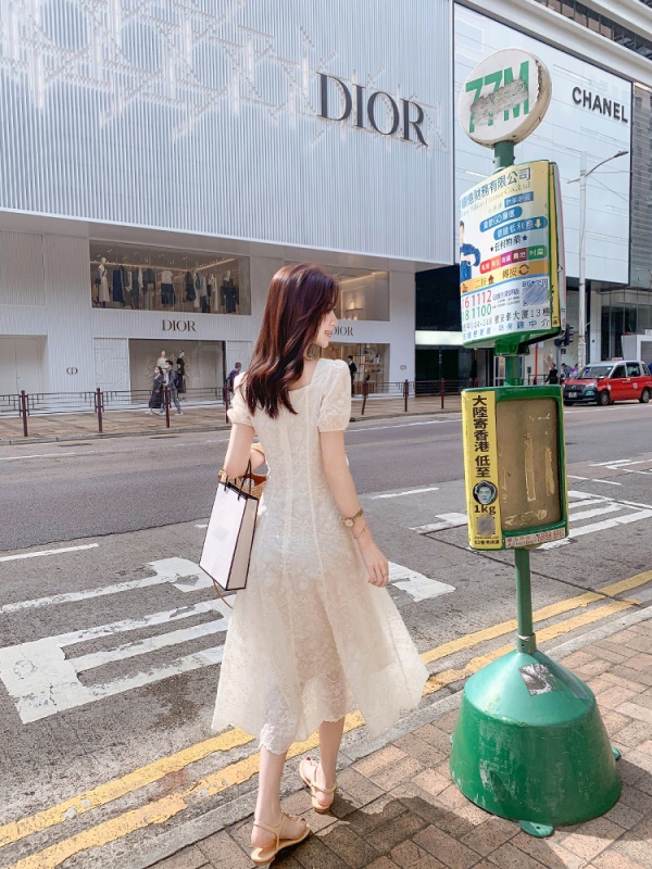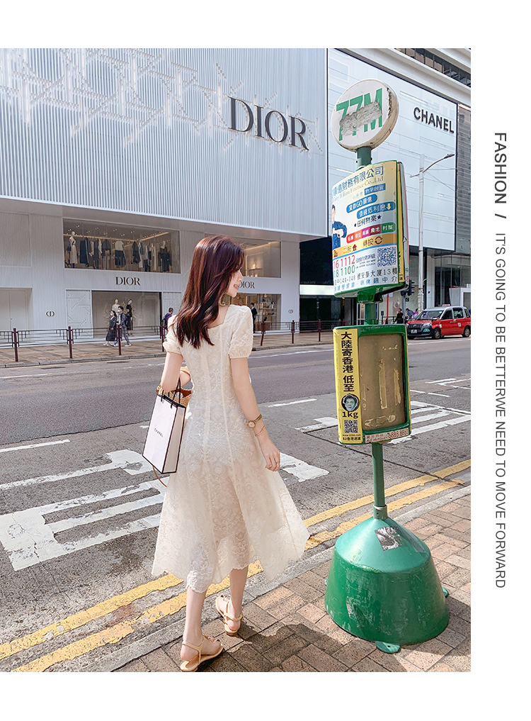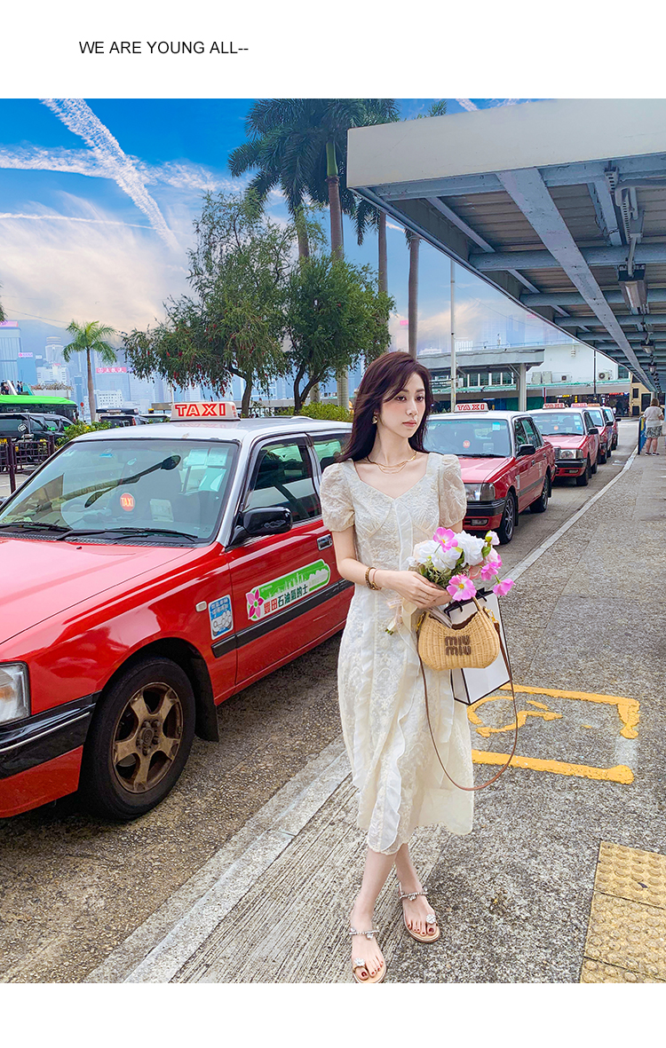 商品名称:荷叶边蕾丝白色连衣裙女开春绝美高级法式长款裙子
