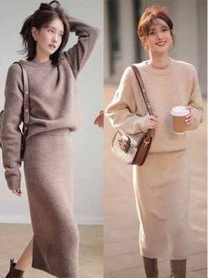 小香风套装裙2025新款秋冬针织上衣毛衣半身裙子打底配大衣连衣裙