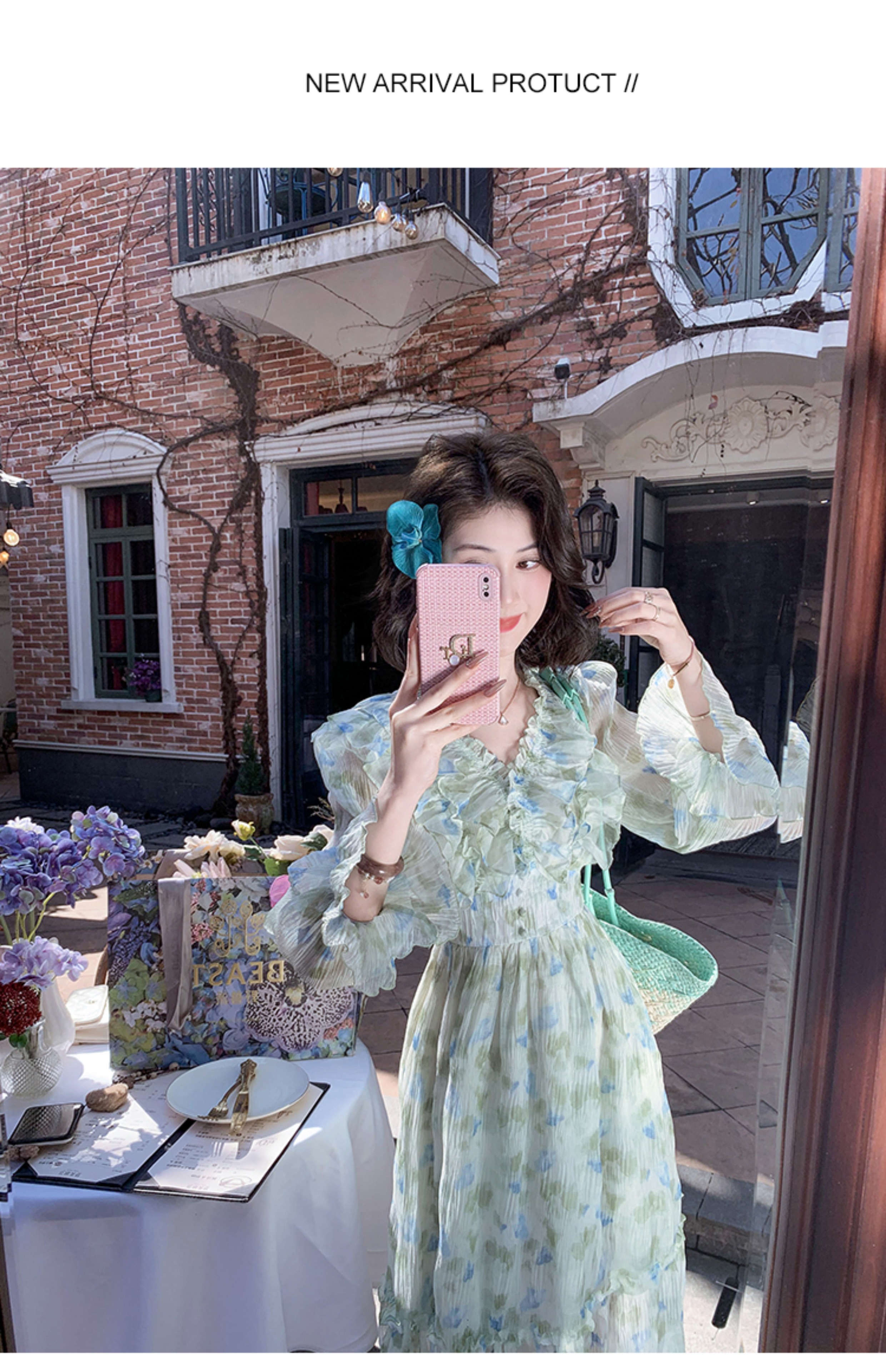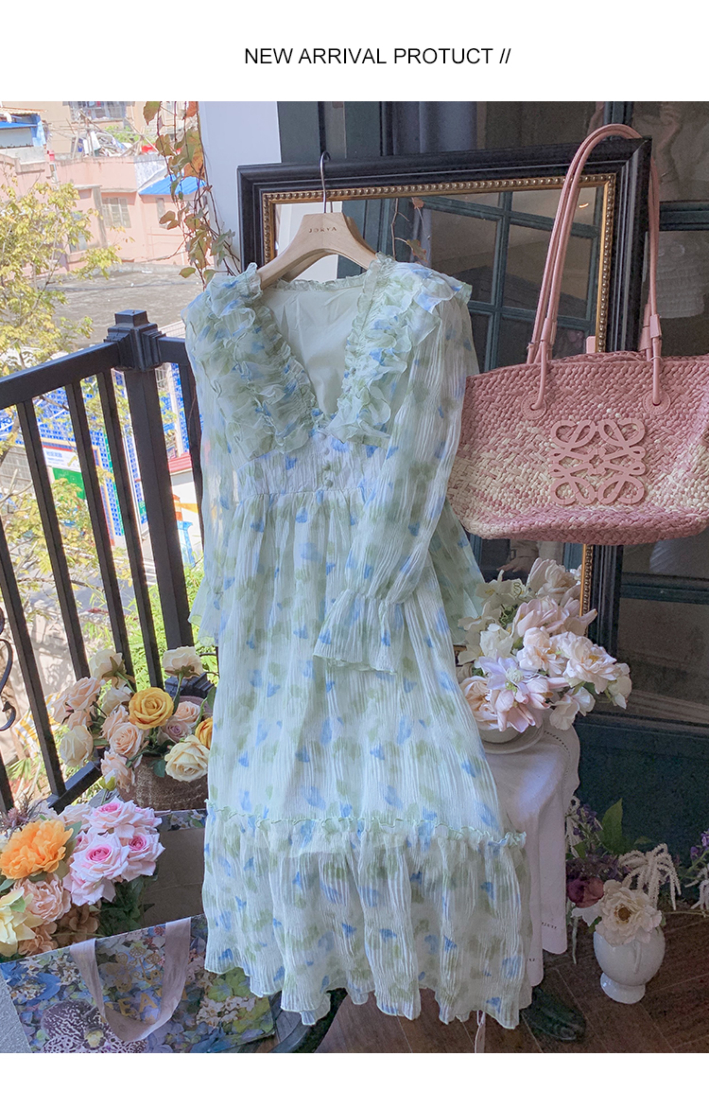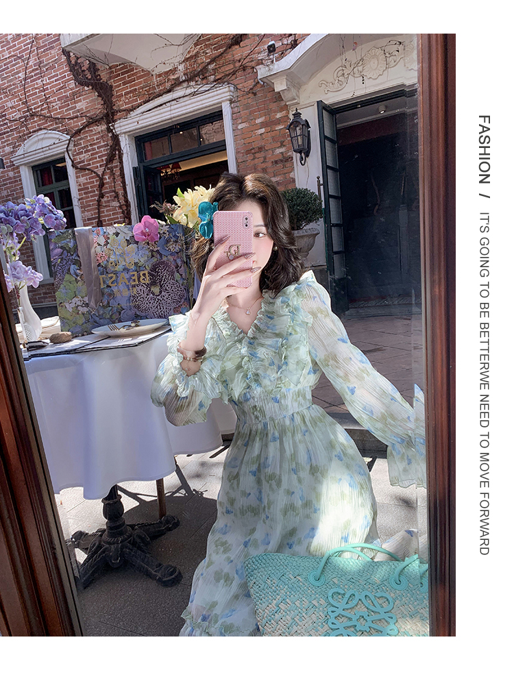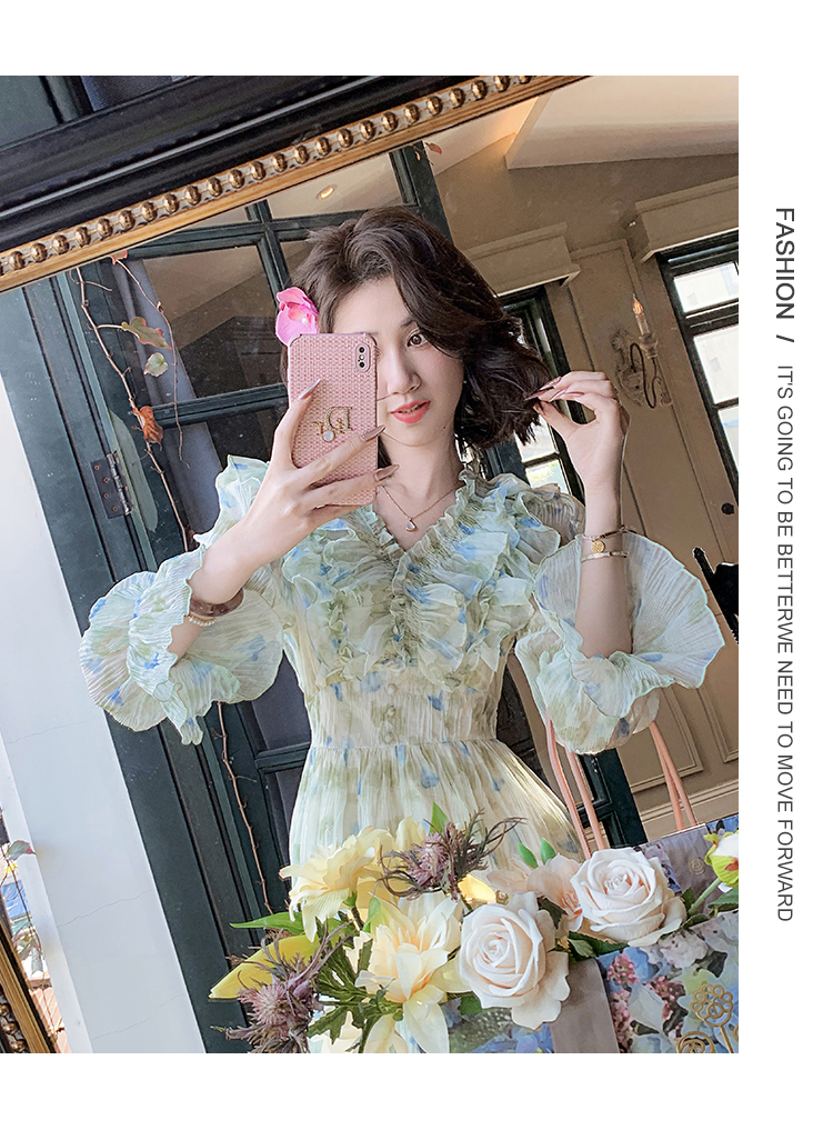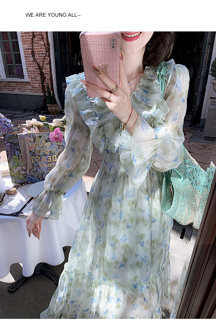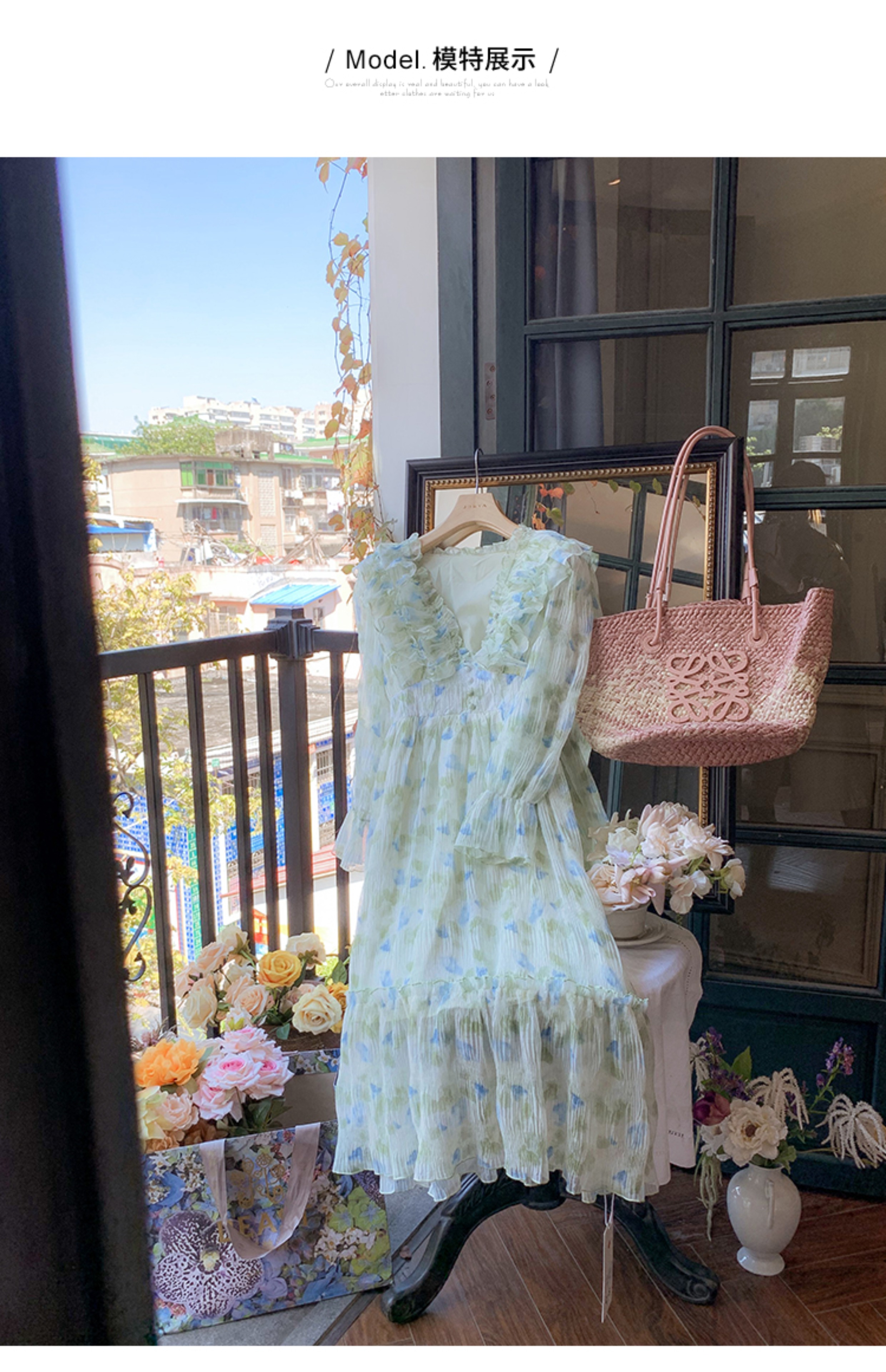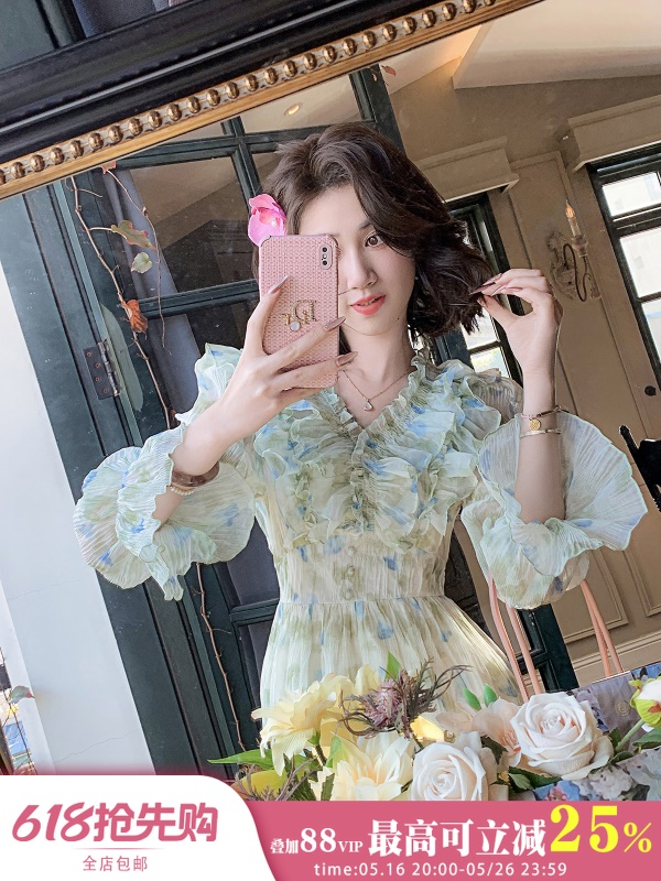 商品名称:法式雪纺连衣裙女中长款碎花裙春夏温柔系收腰裙子
