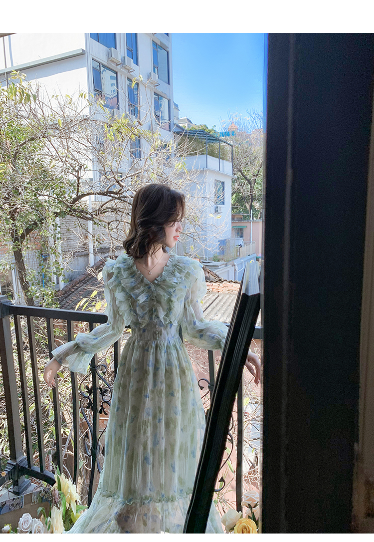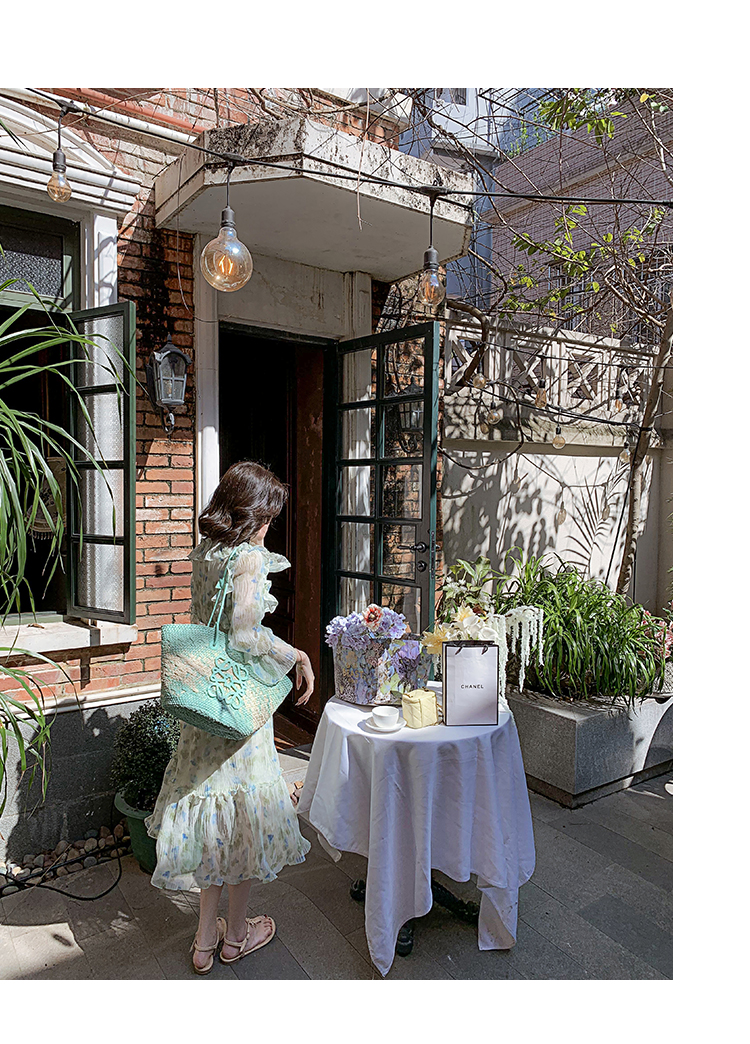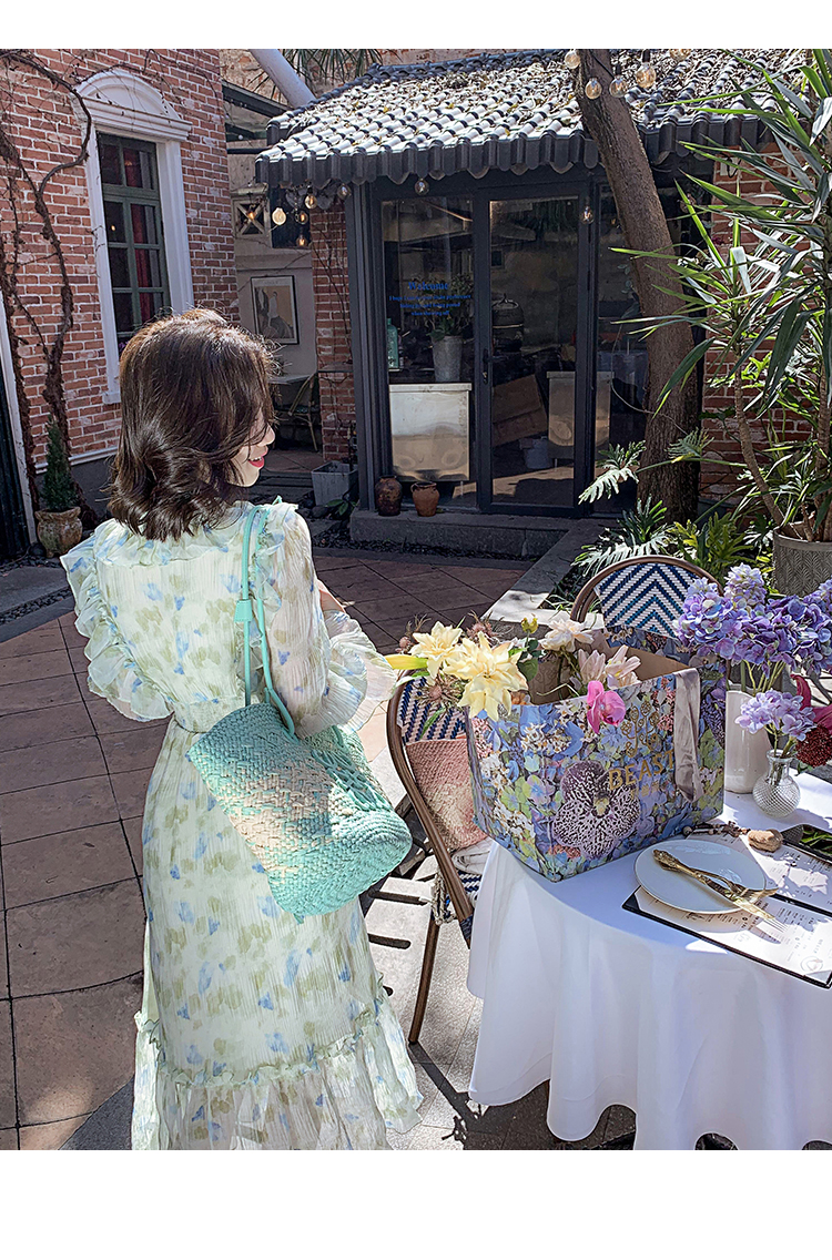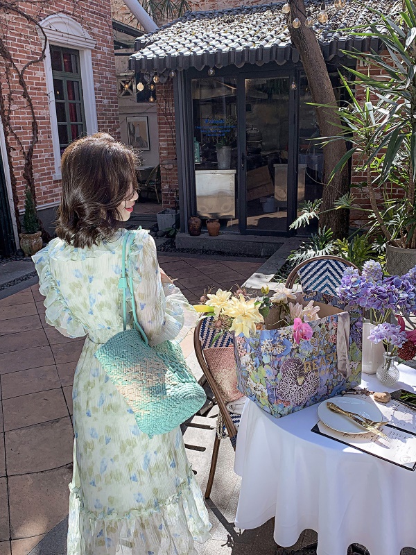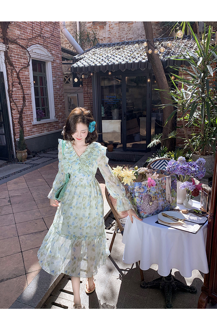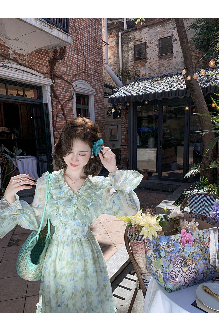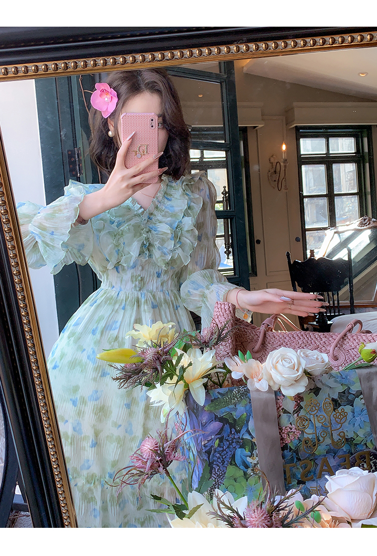 商品名称:法式雪纺连衣裙女中长款碎花裙春夏温柔系收腰裙子