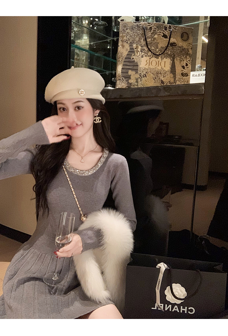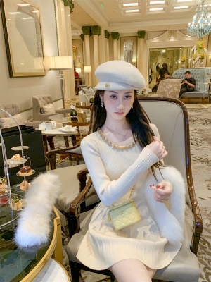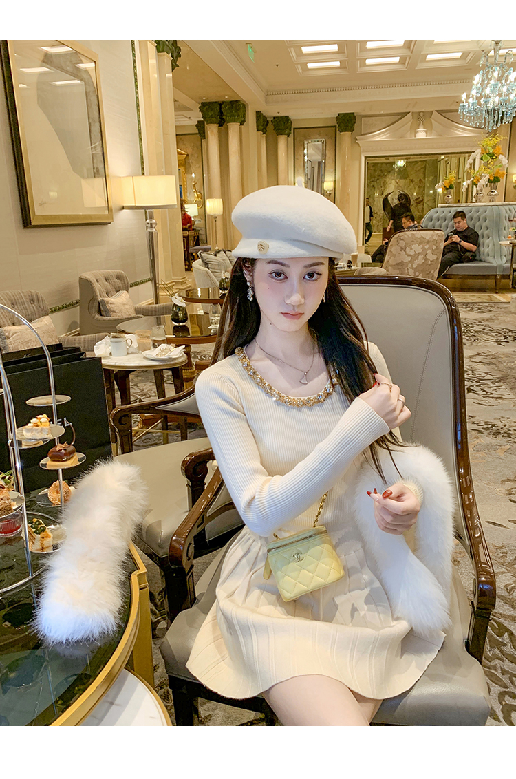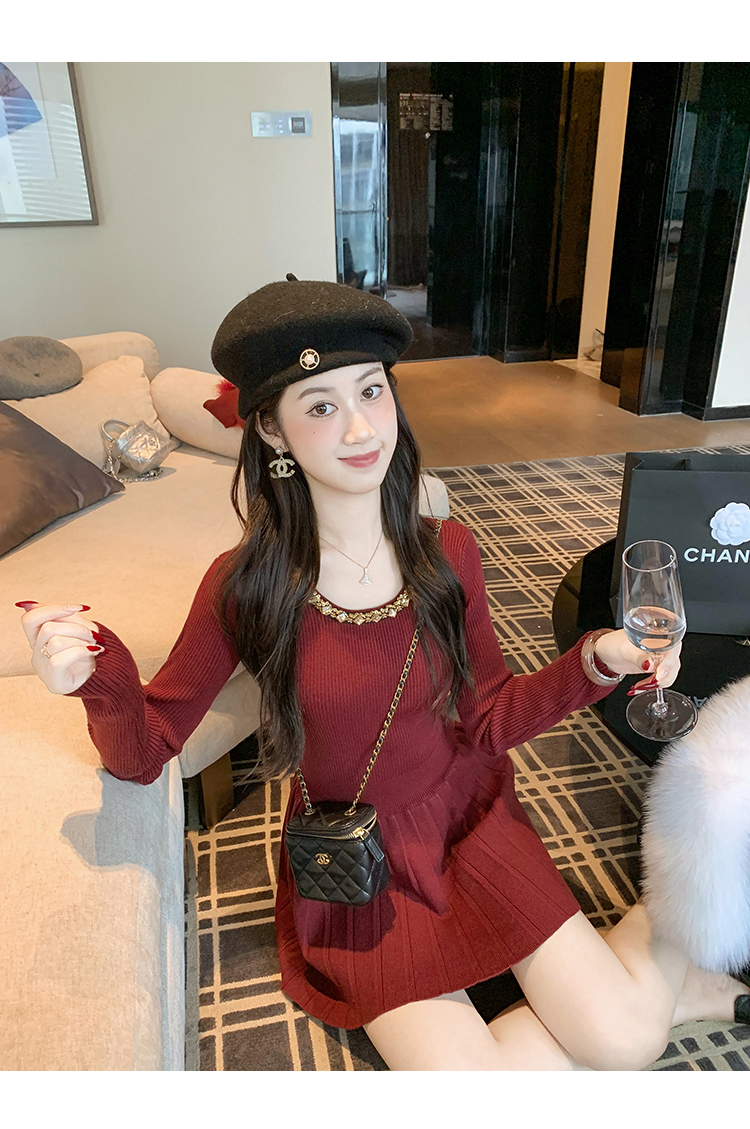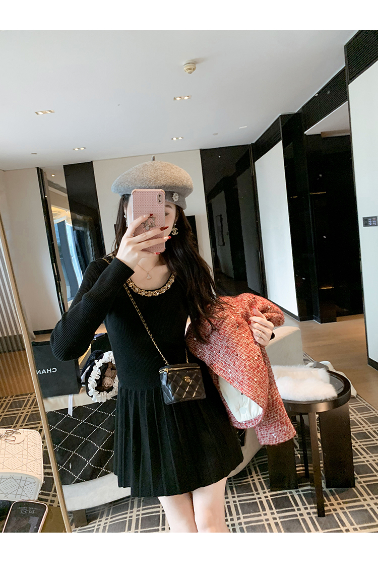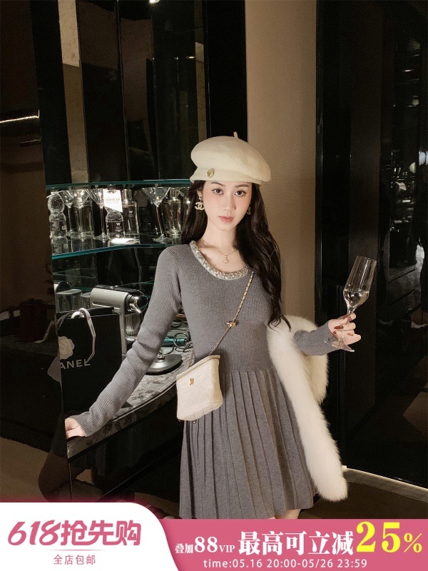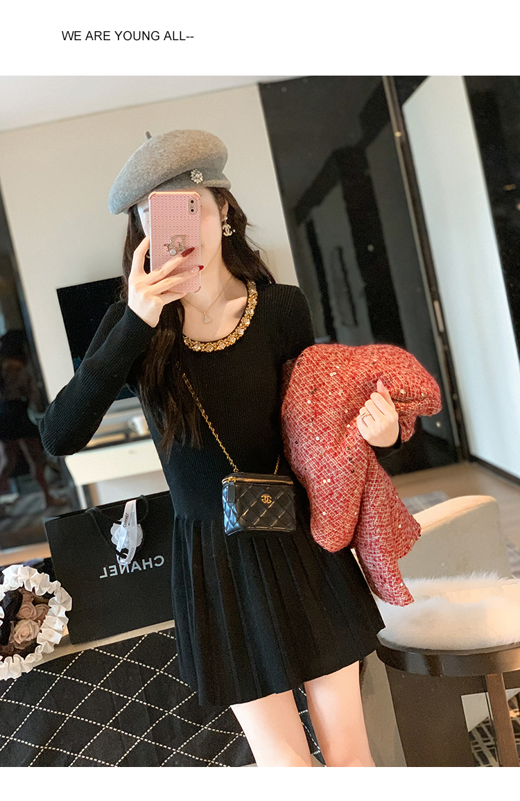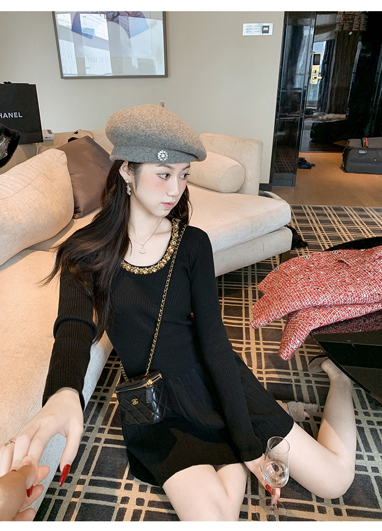 法式针织连衣裙女春秋新款内搭打底裙配大衣的毛衣裙