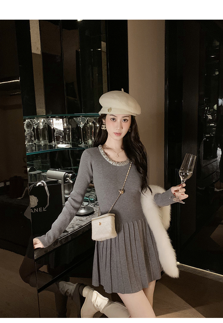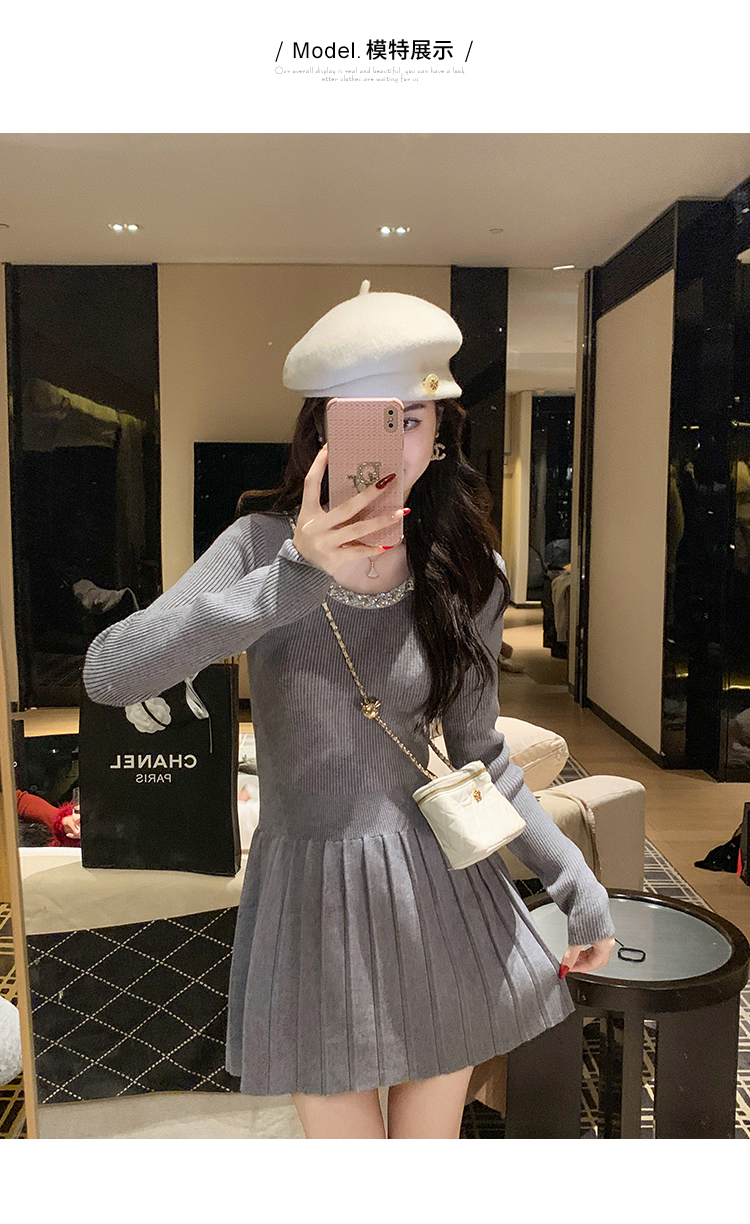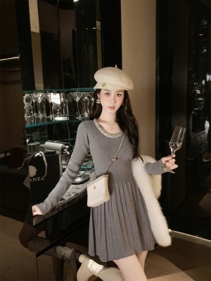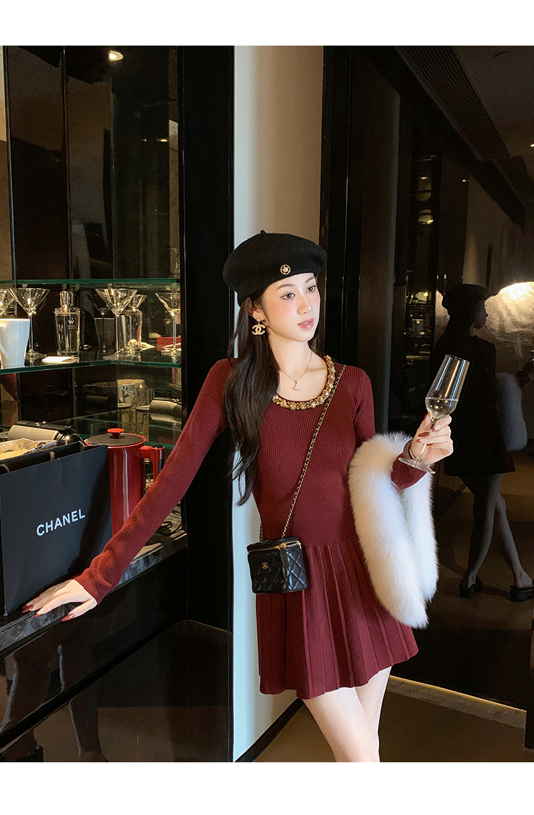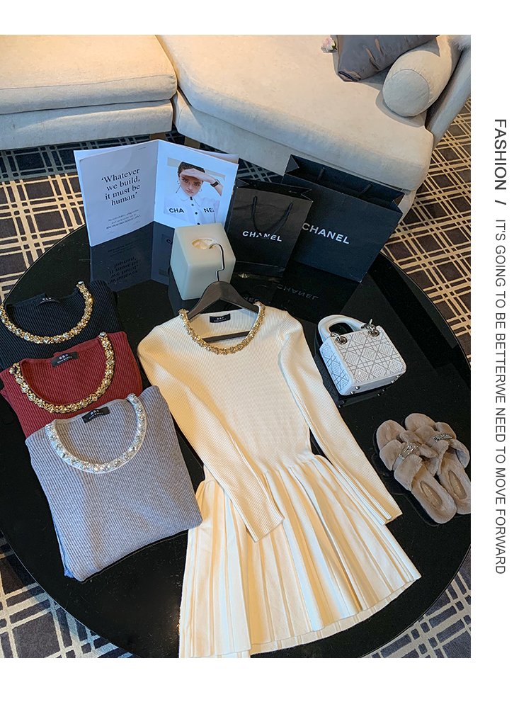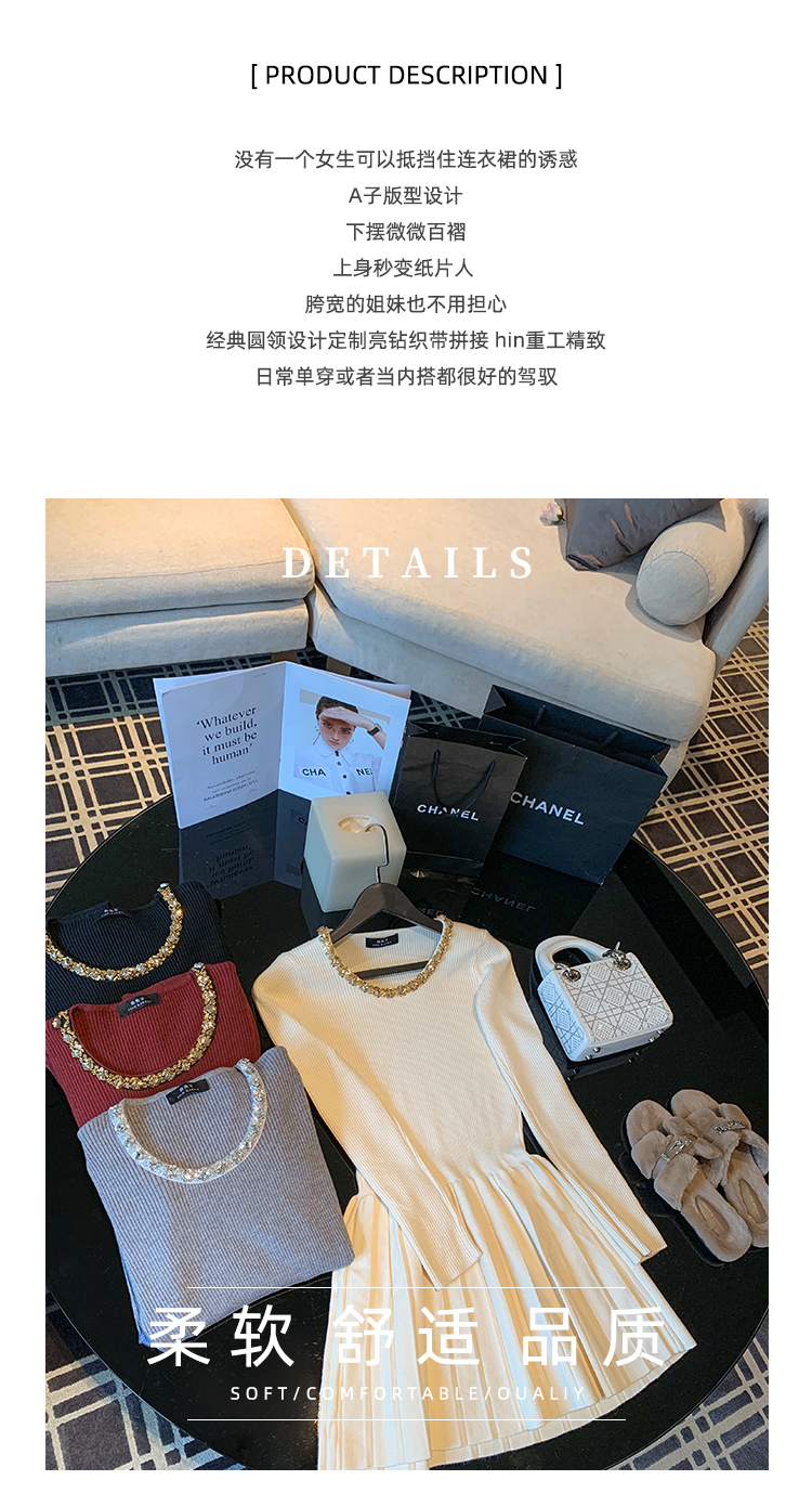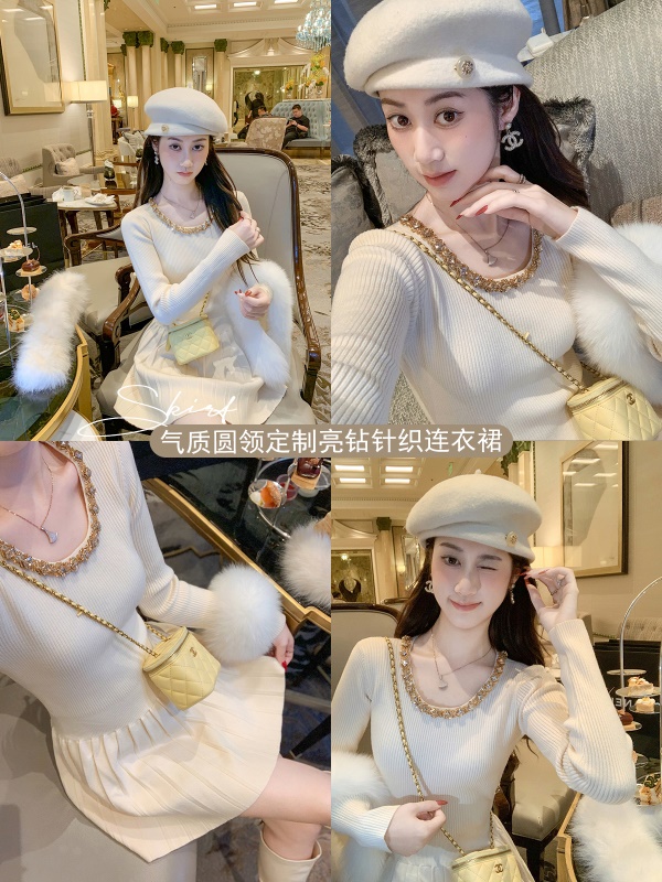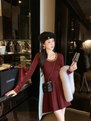 法式针织连衣裙女春秋新款内搭打底裙配大衣的毛衣裙