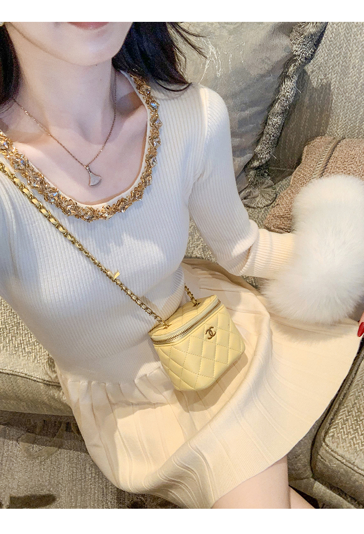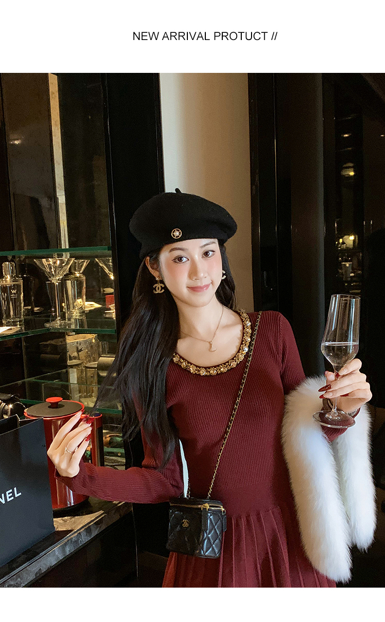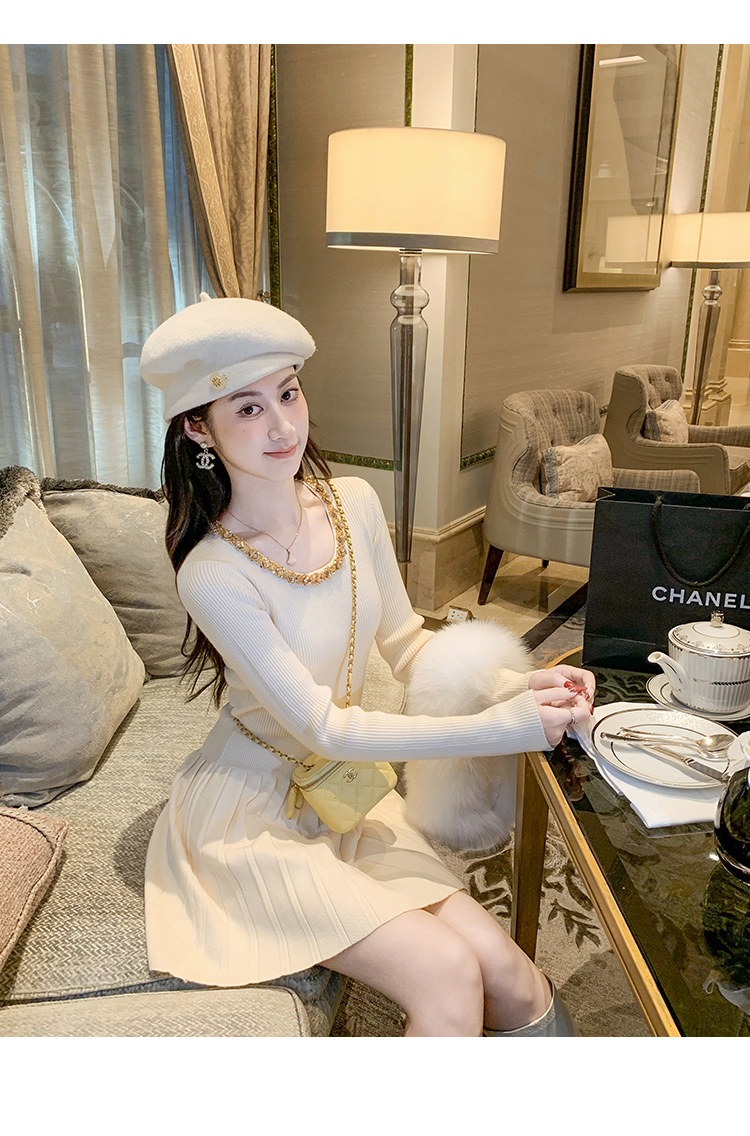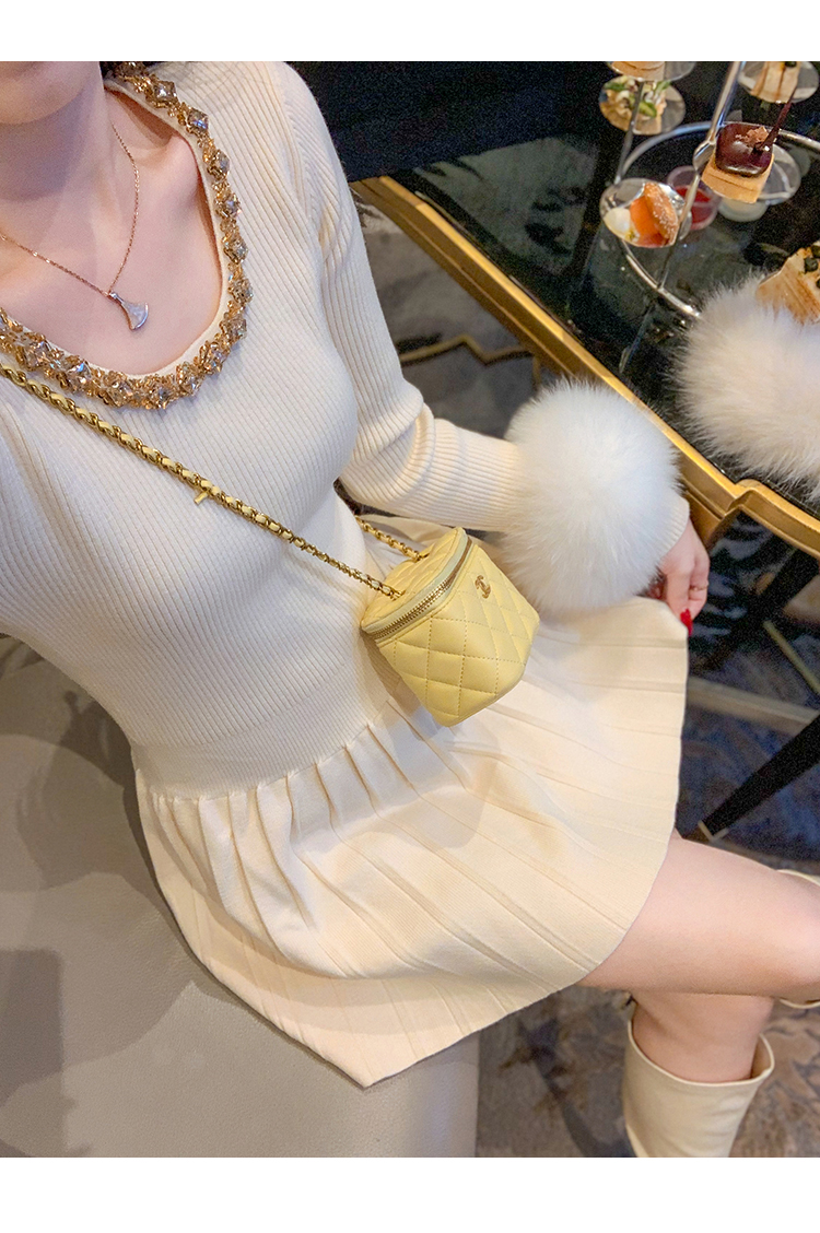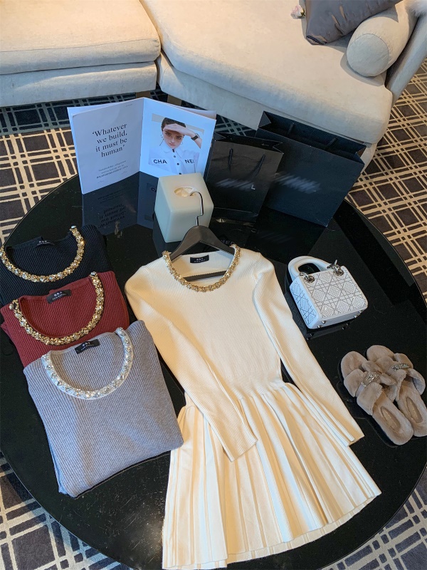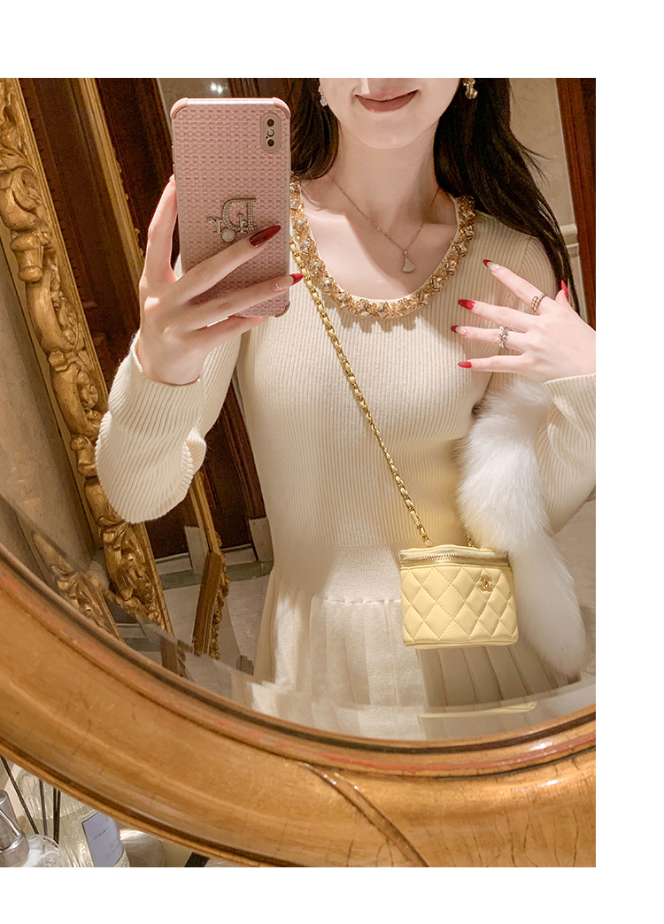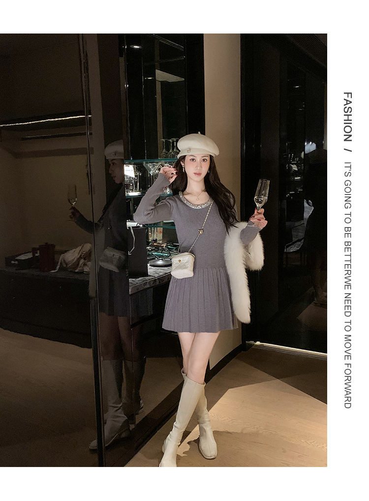 法式针织连衣裙女春秋新款内搭打底裙配大衣的毛衣裙
