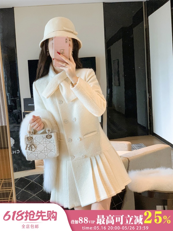 商品名称:高级感羽绒内胆毛呢外套女冬季新款中长款裙装大衣
