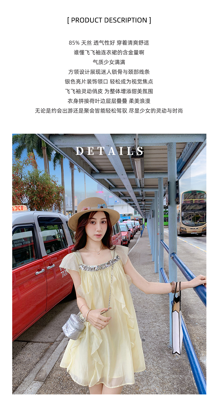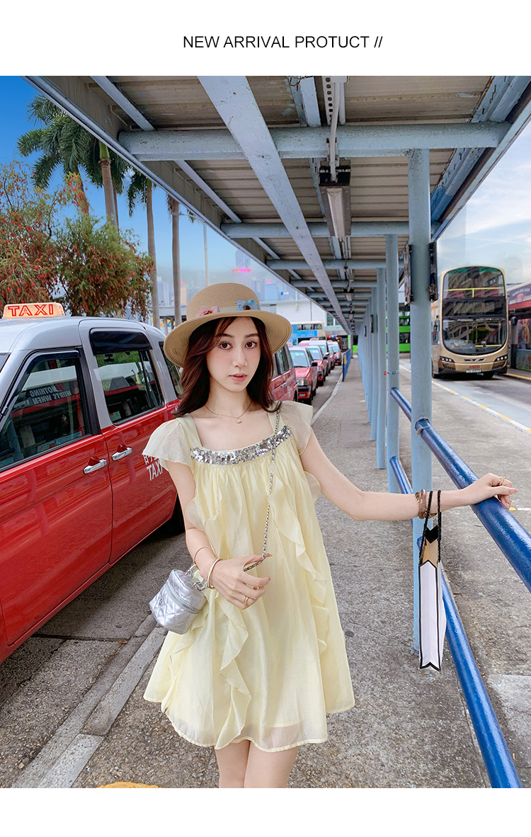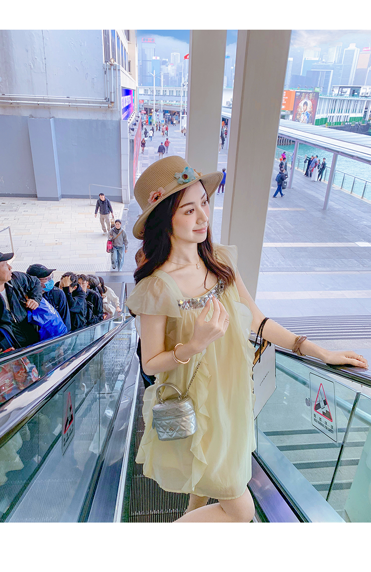 气质荷叶边清纯连衣裙女初夏出片穿搭海边度假裙子