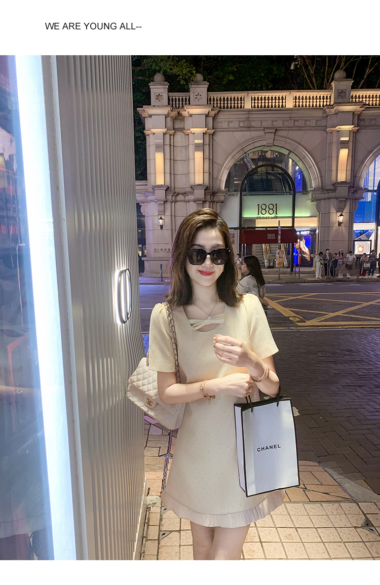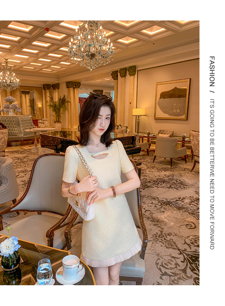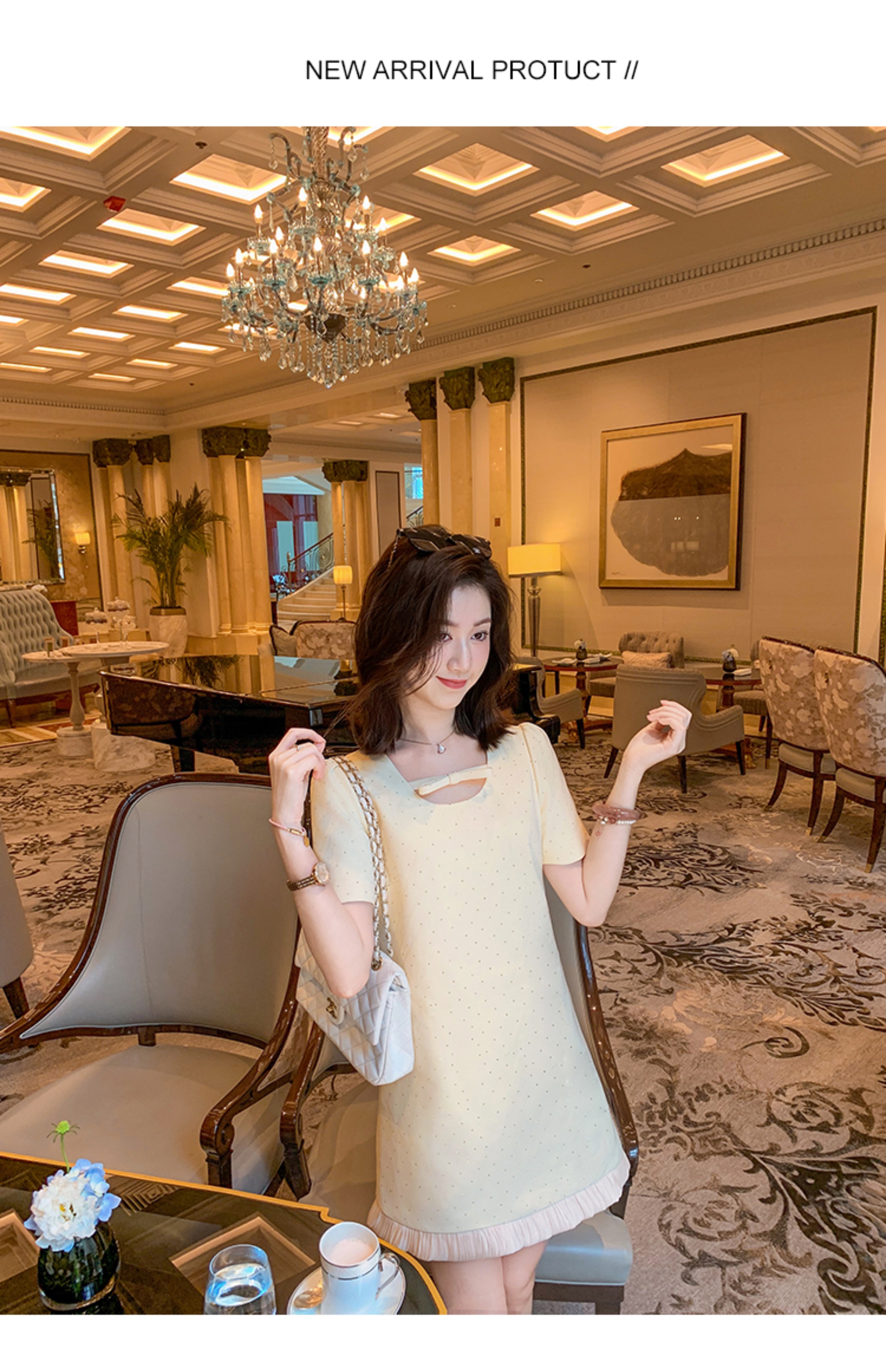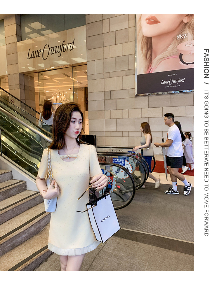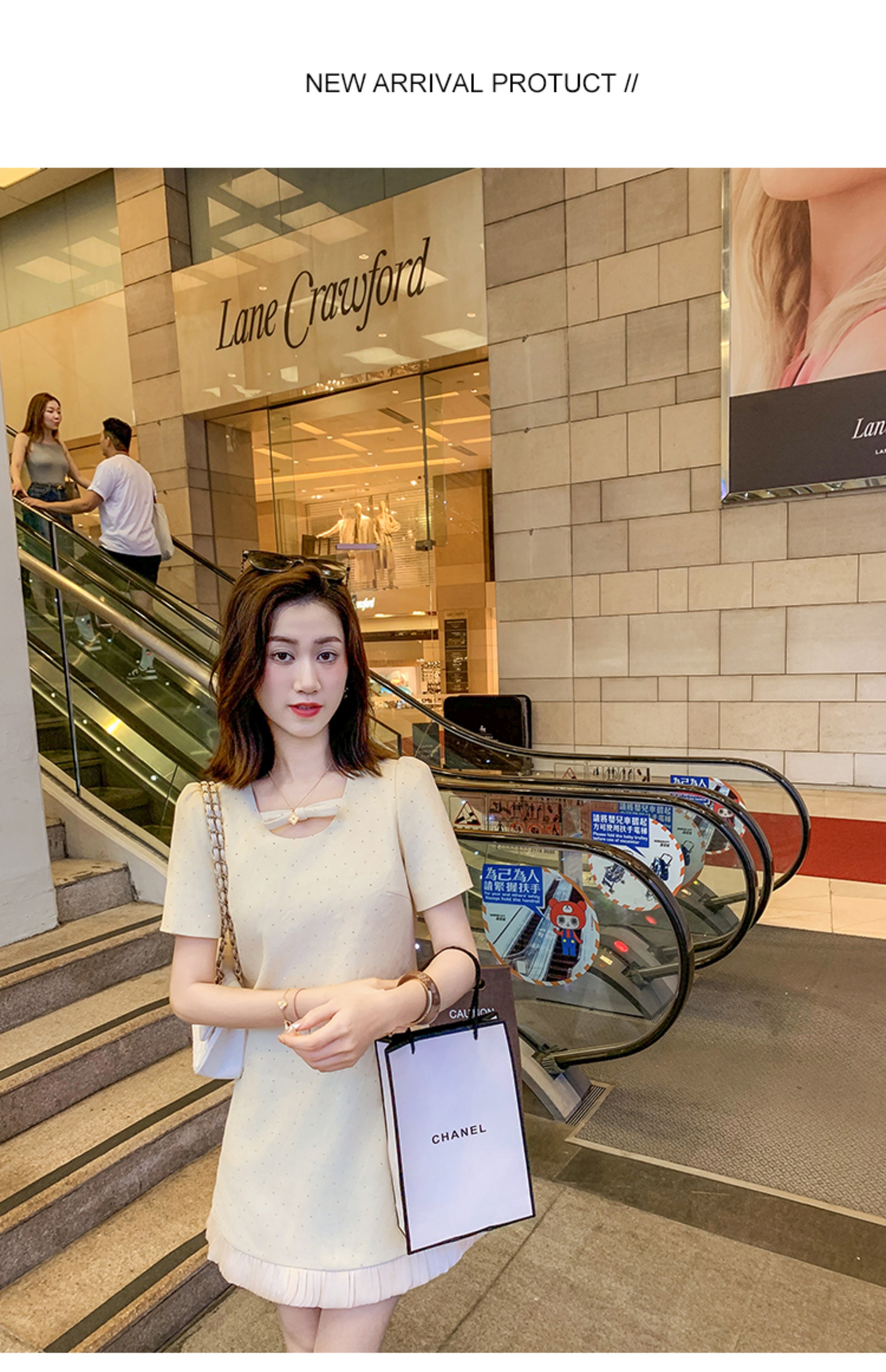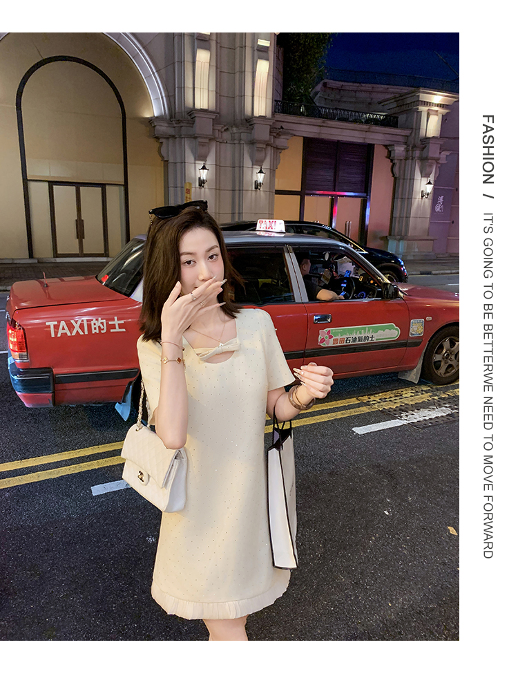 商品名称:重工烫钻小香风直筒连衣裙女2025夏季新款小心机裙子