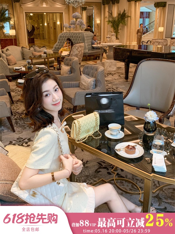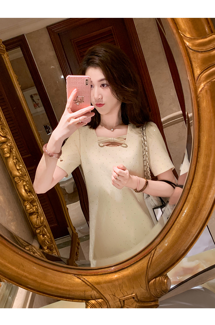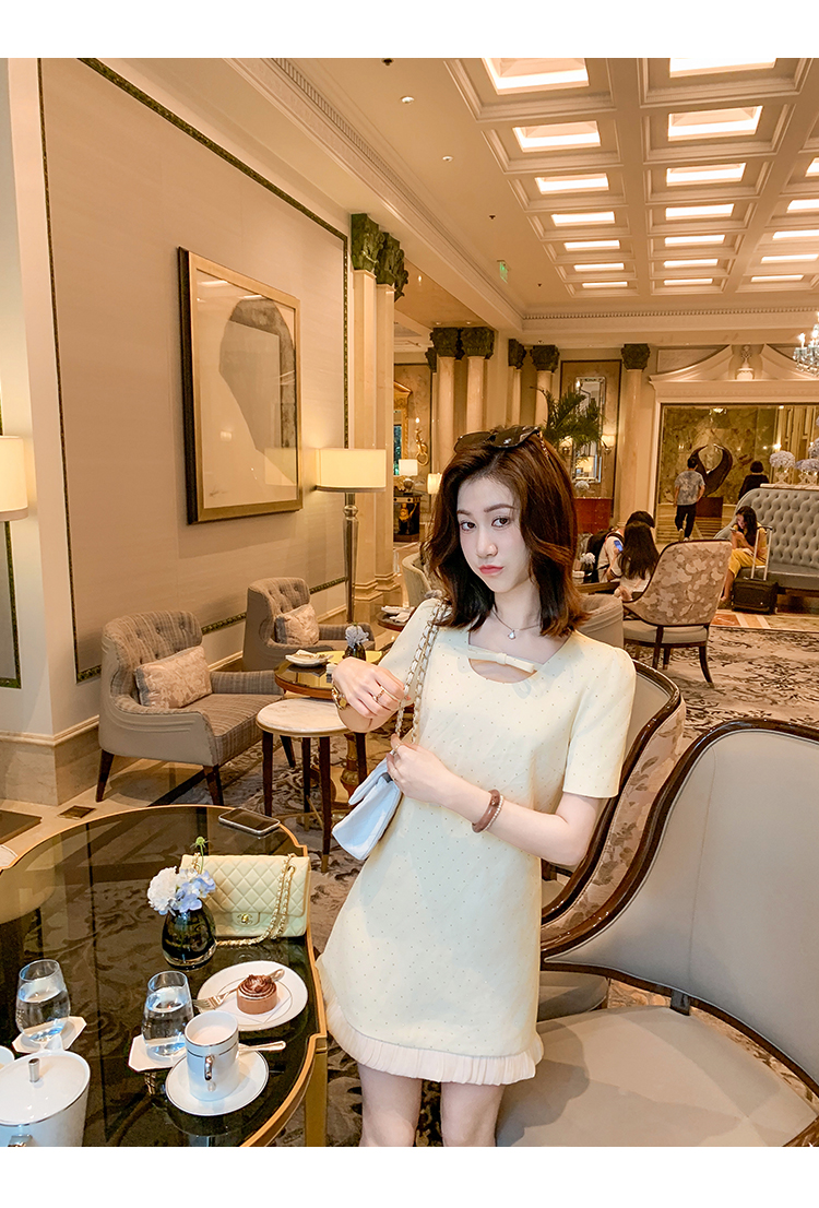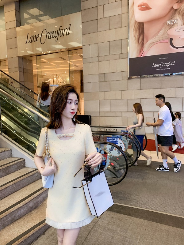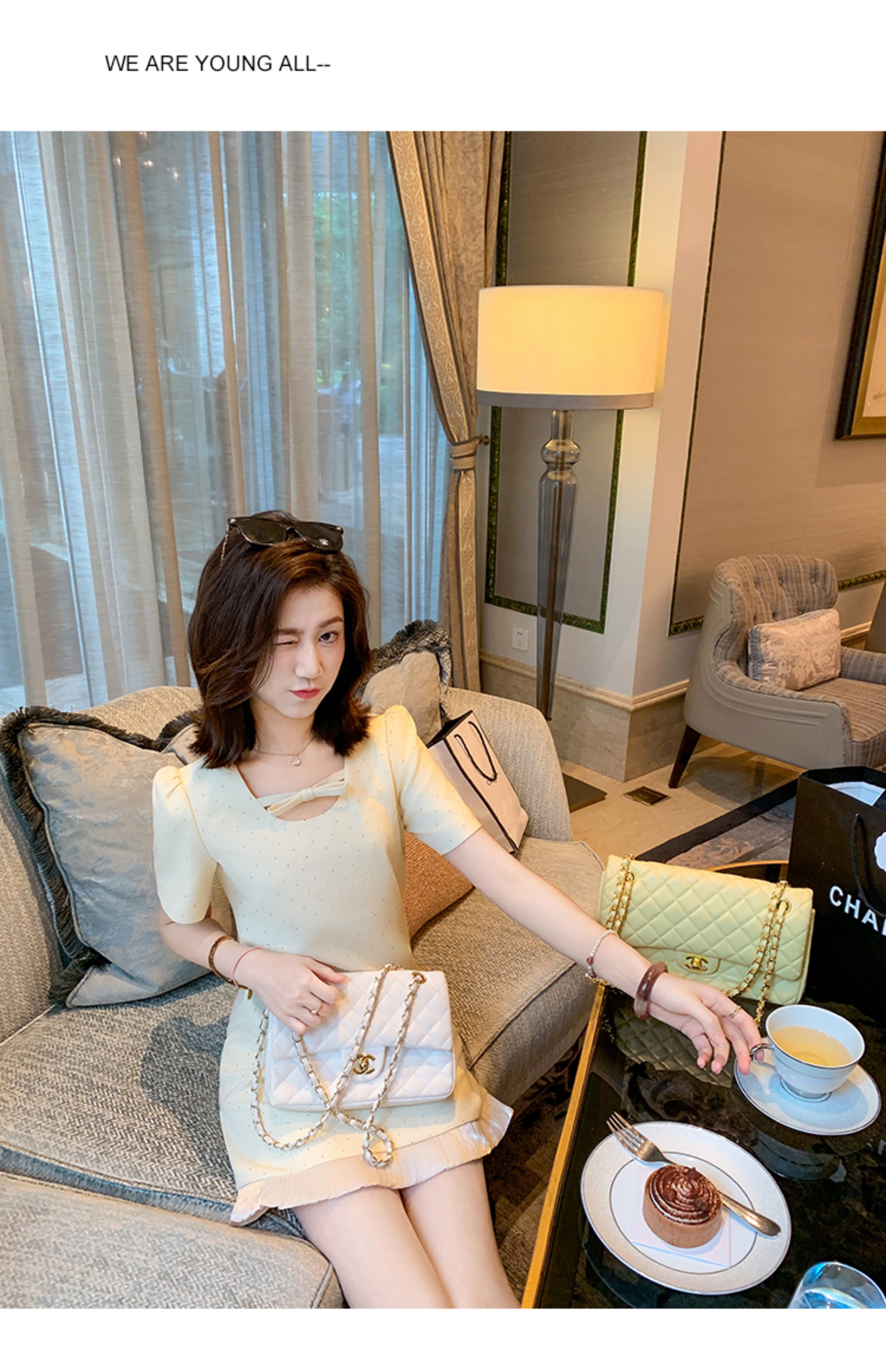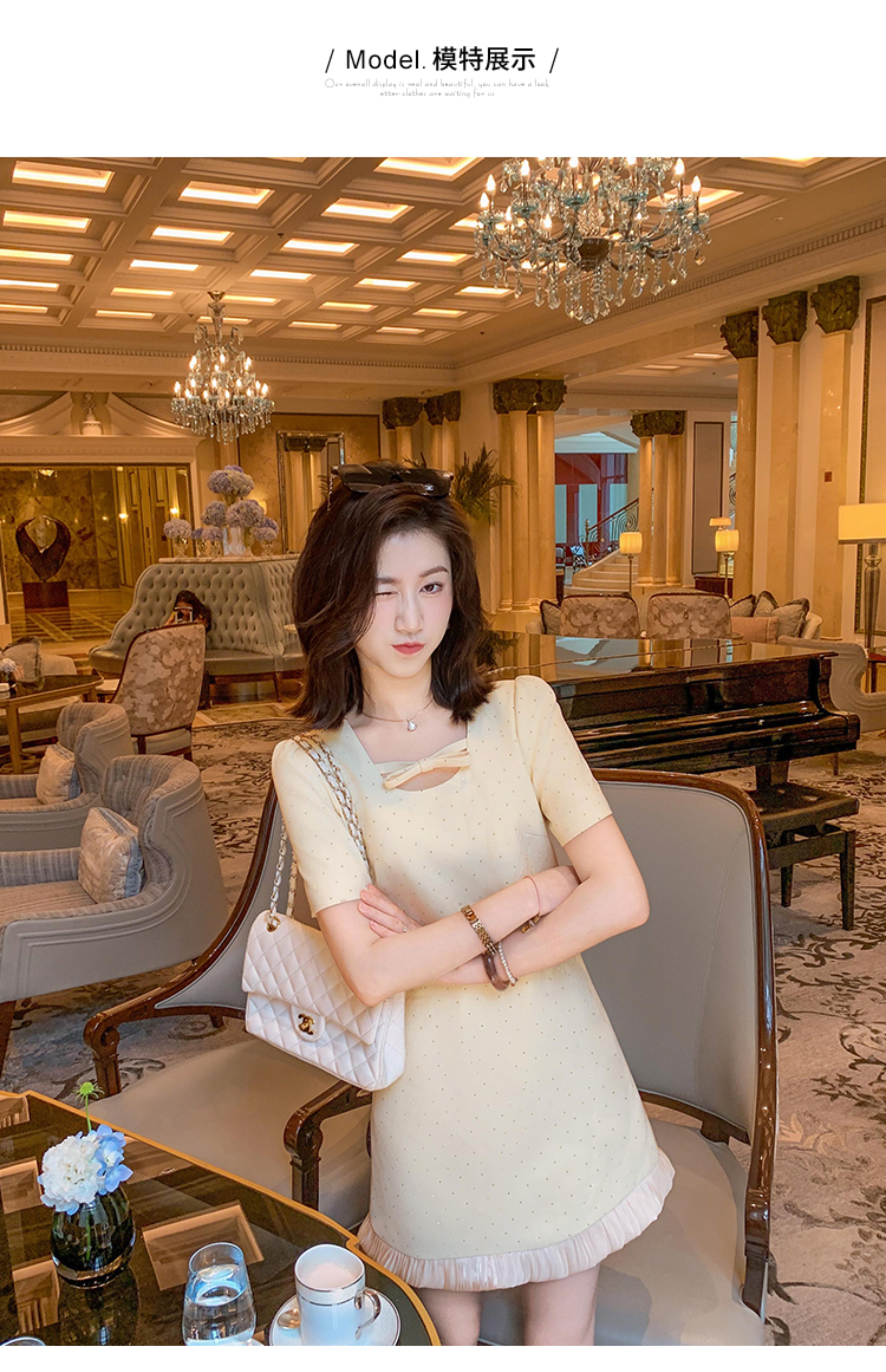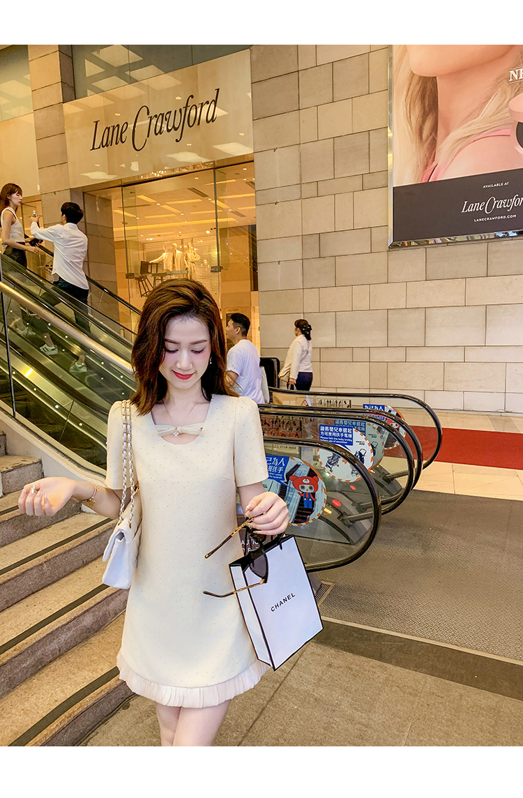 商品名称:重工烫钻小香风直筒连衣裙女2025夏季新款小心机裙子