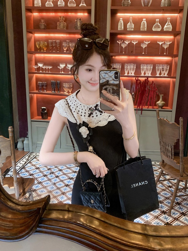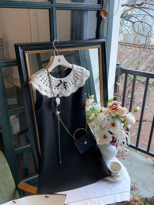 商品名称:荷叶领无袖连衣裙女2025年新款夏季小香风气质背心裙