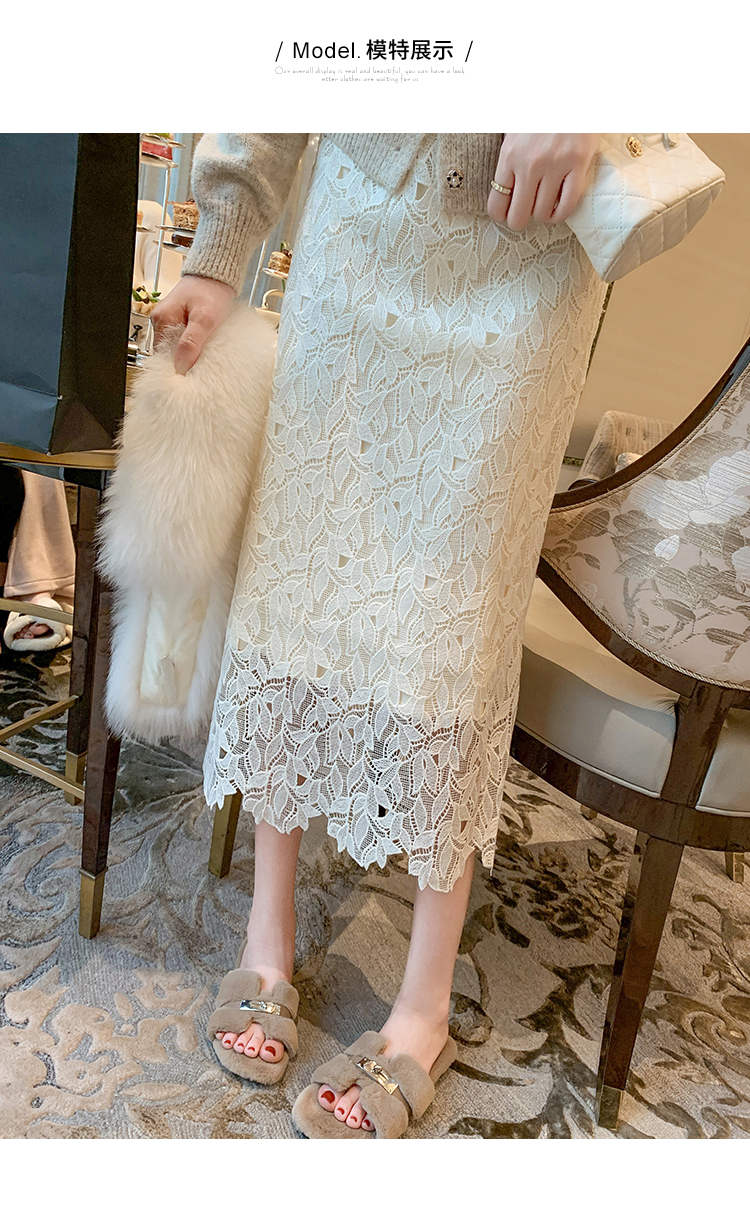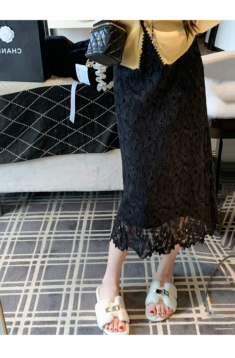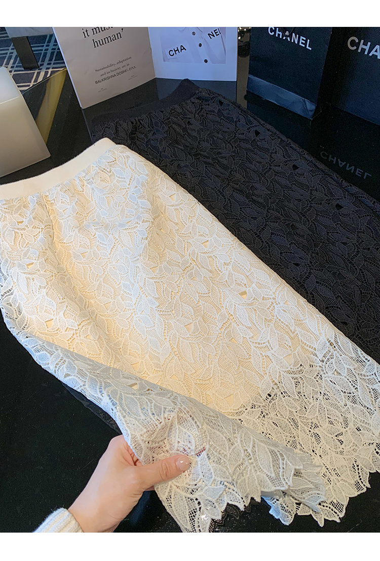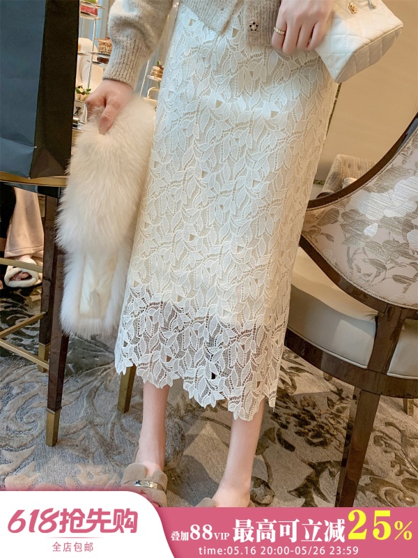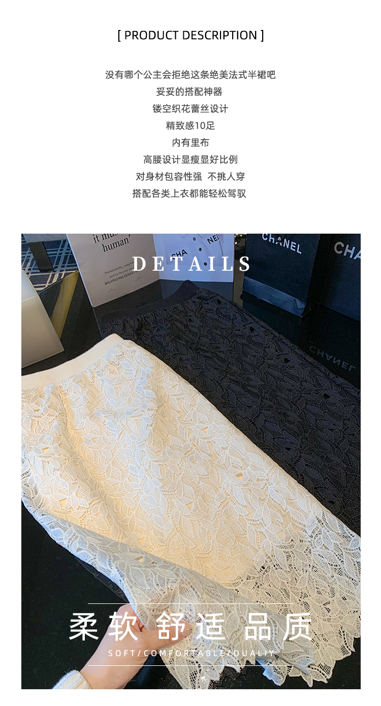 商品名称:高腰中长款蕾丝半身裙女2025春秋新款显瘦镂空a字裙