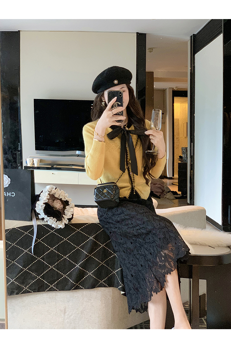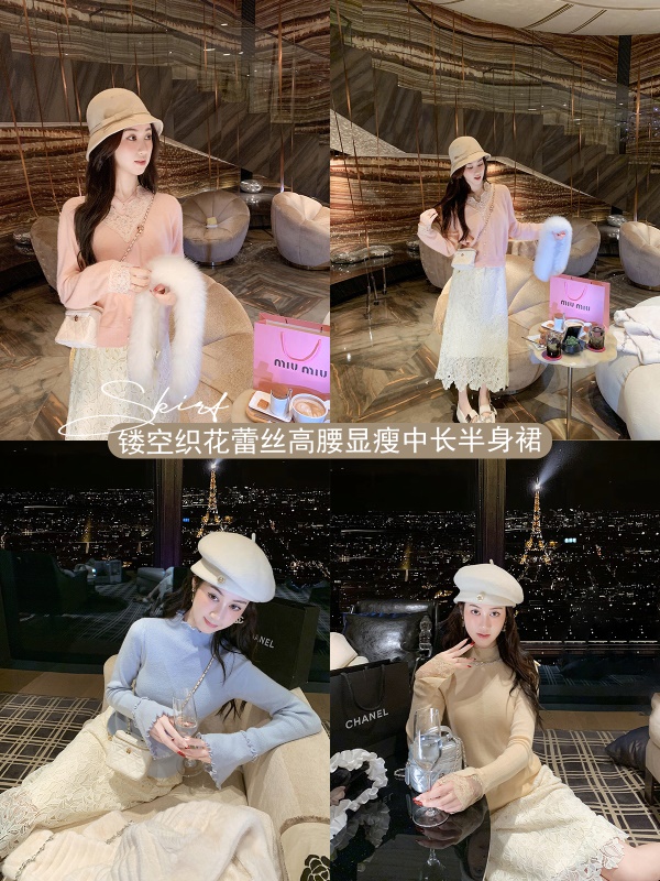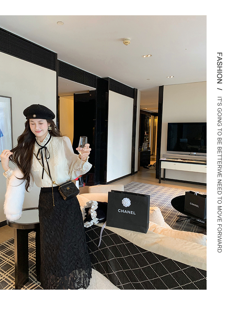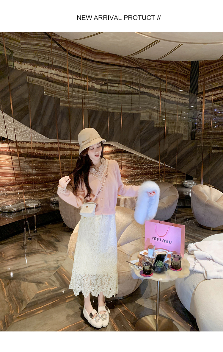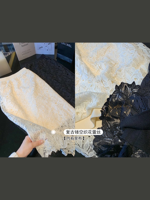 商品名称:高腰中长款蕾丝半身裙女2025春秋新款显瘦镂空a字裙