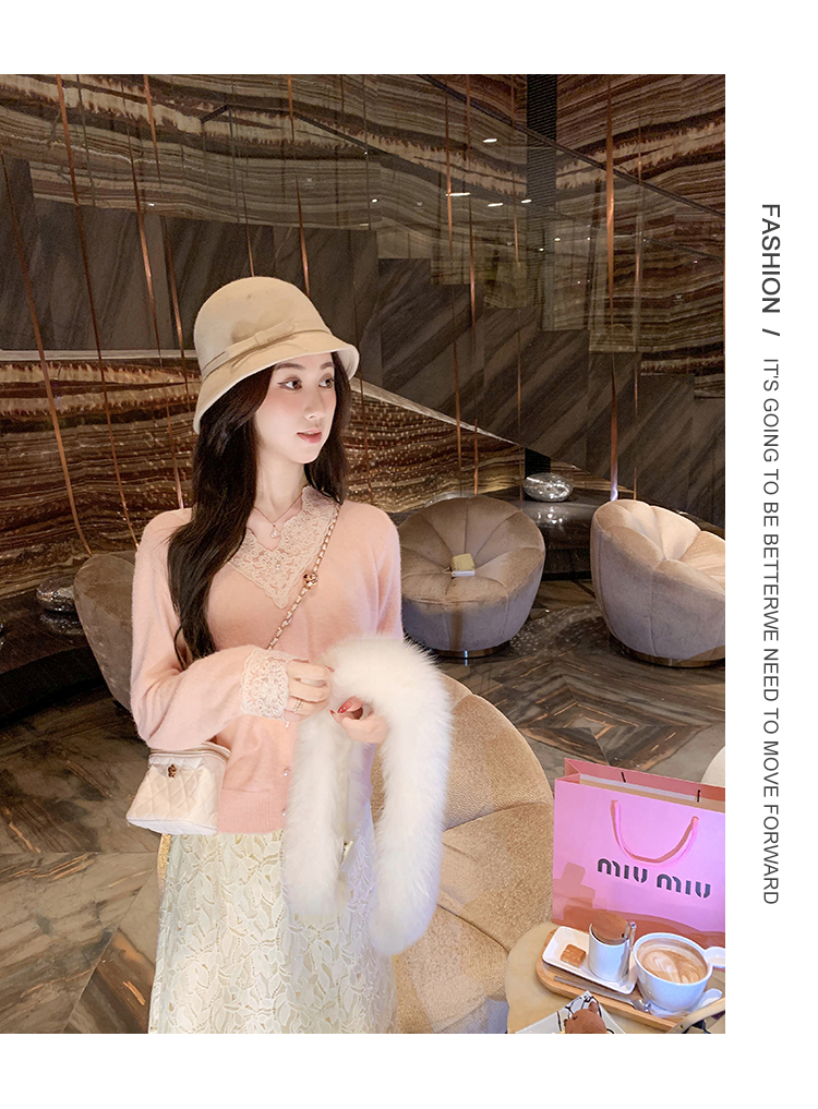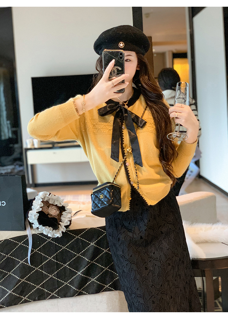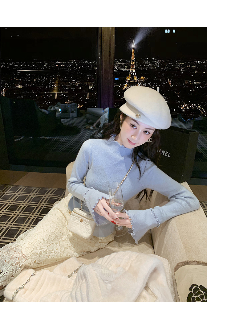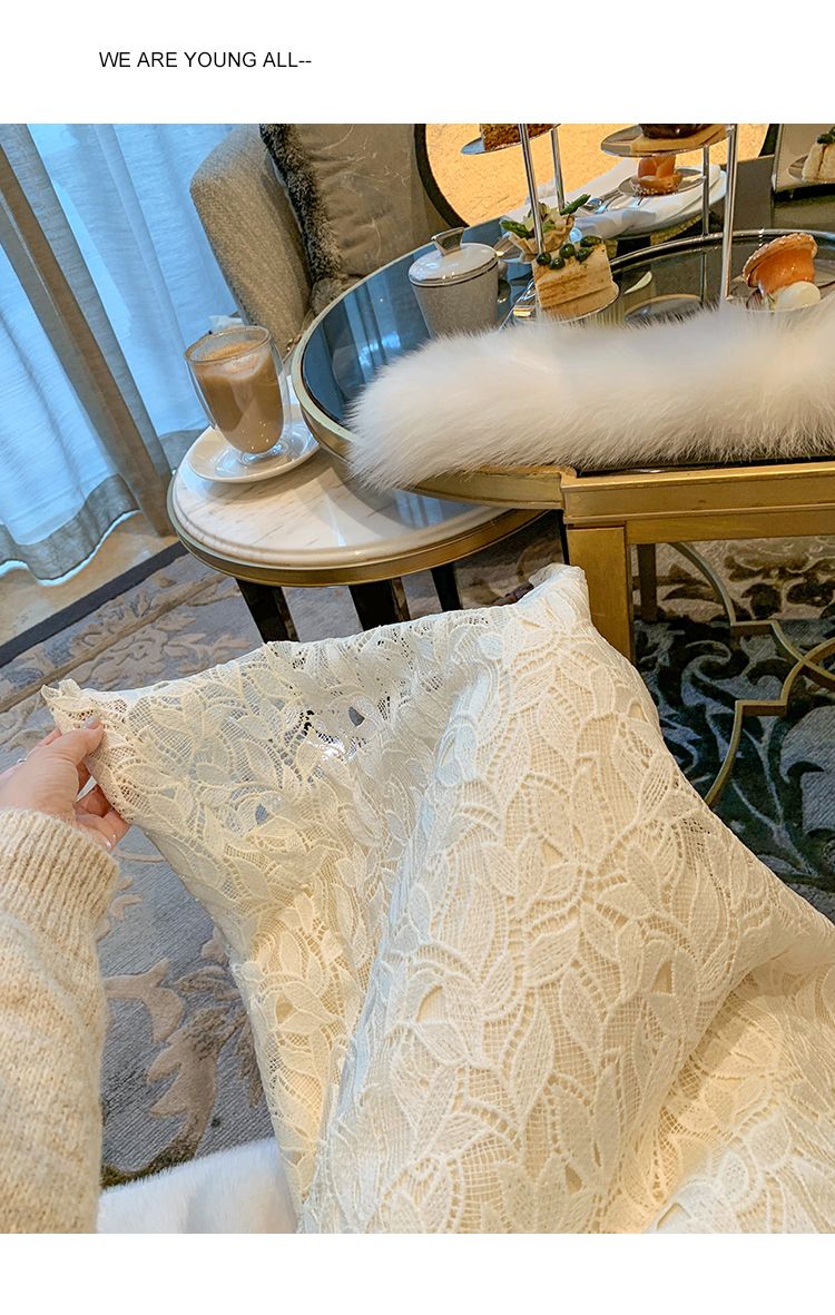ByYou 冬季加绒侧开叉蕾丝白色针织半身裙长款过膝包臀鱼尾毛衣裙