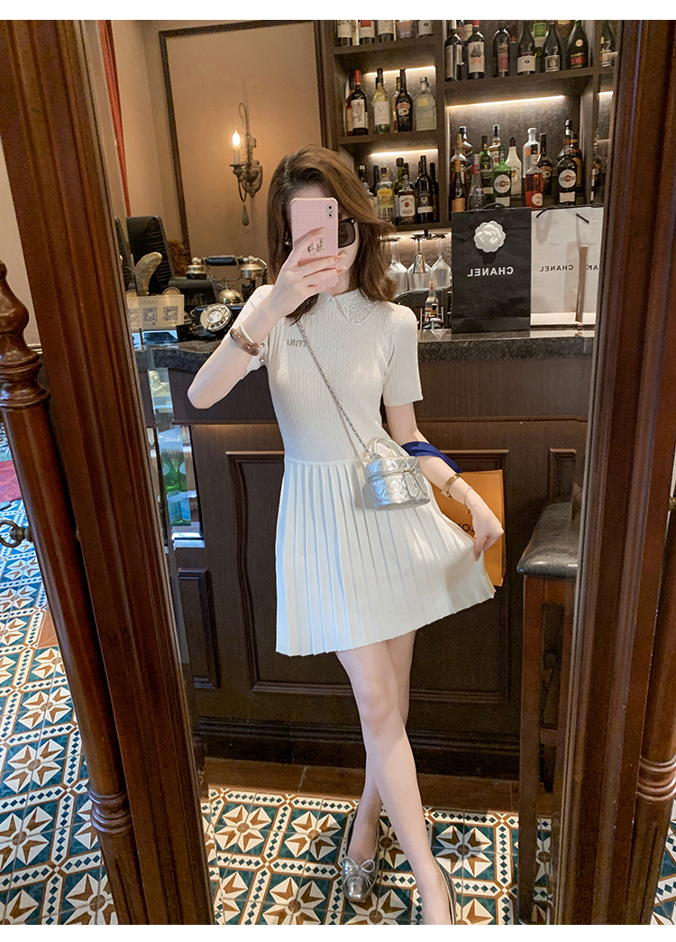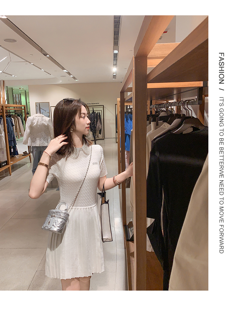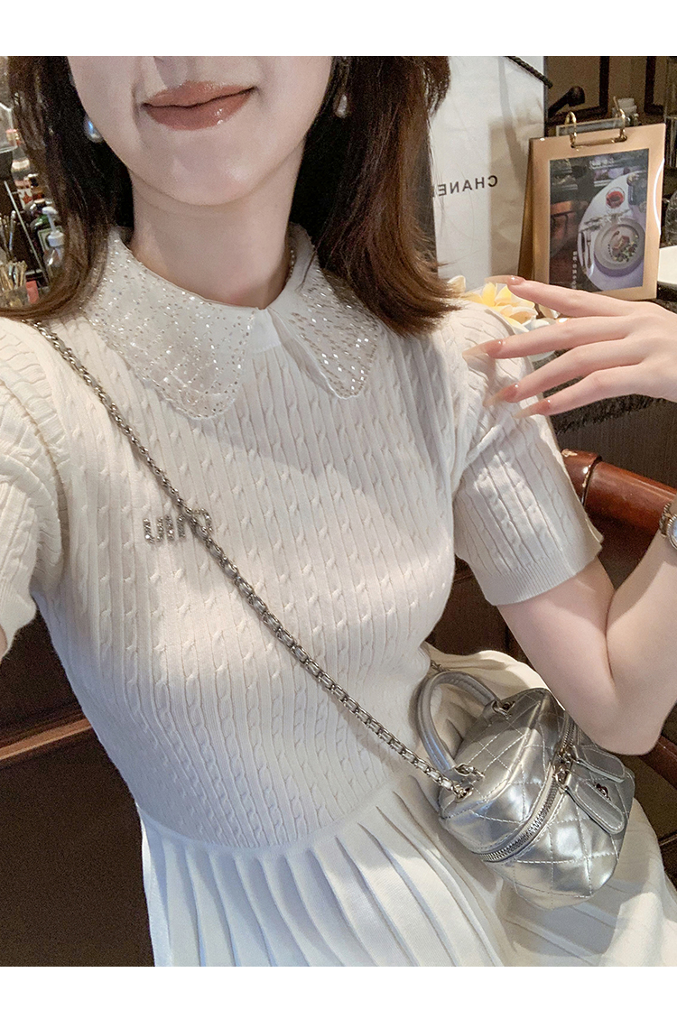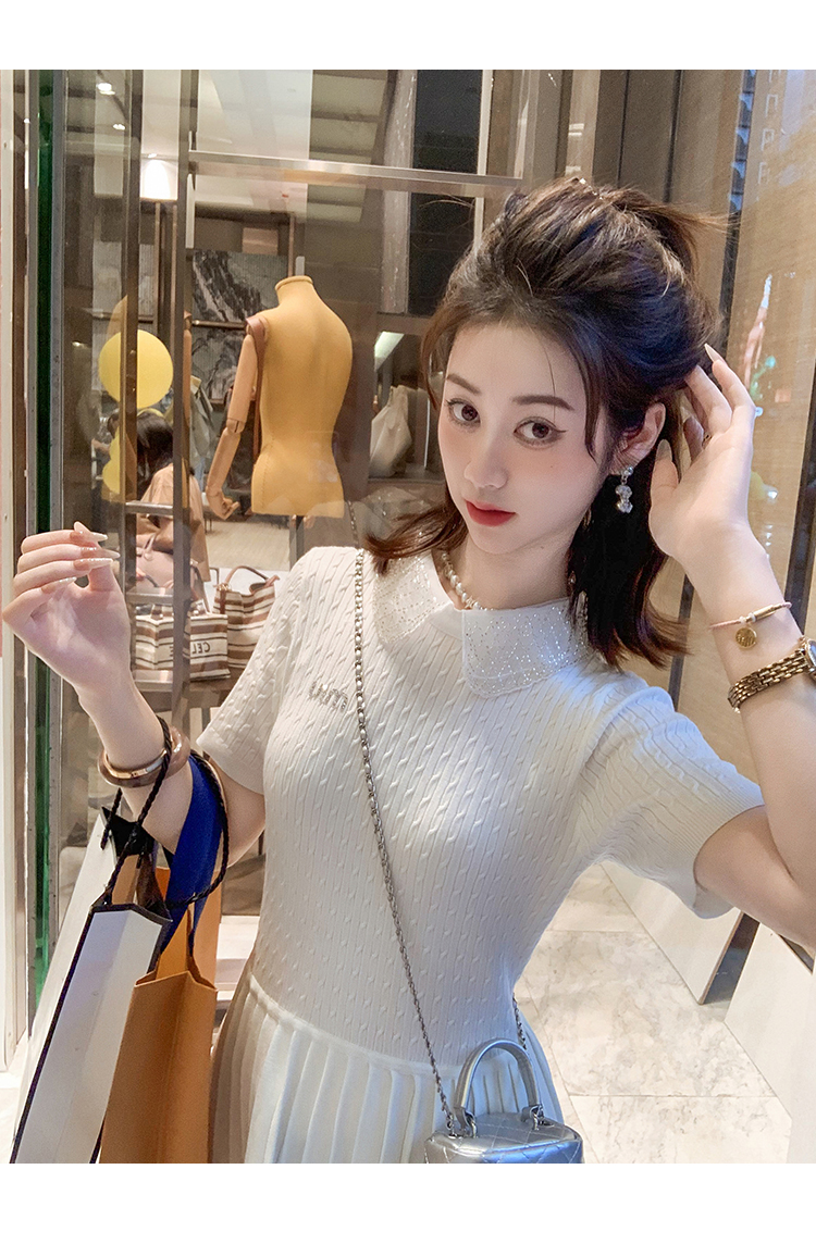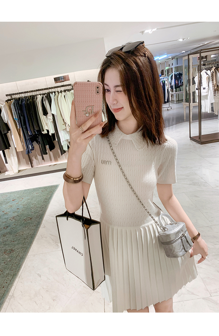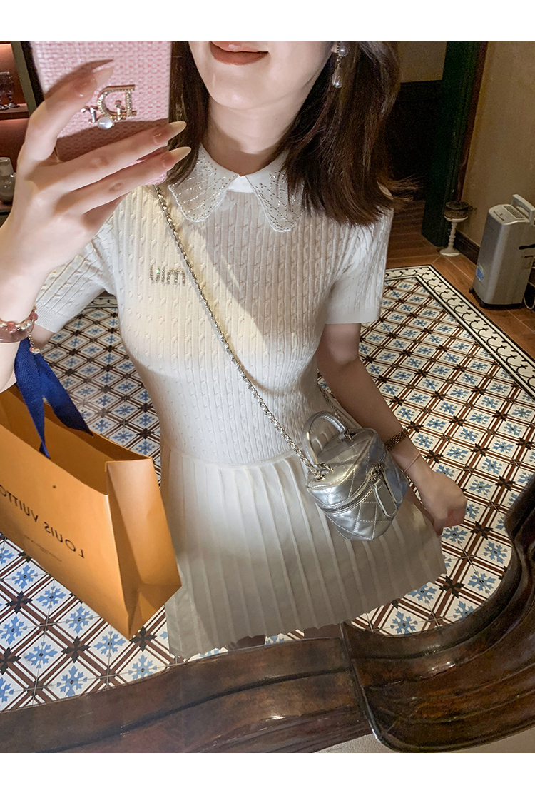 商品名称:[限时折扣] 小香风娃娃领亮片连衣裙女2025夏季新款拼接百褶裙子
