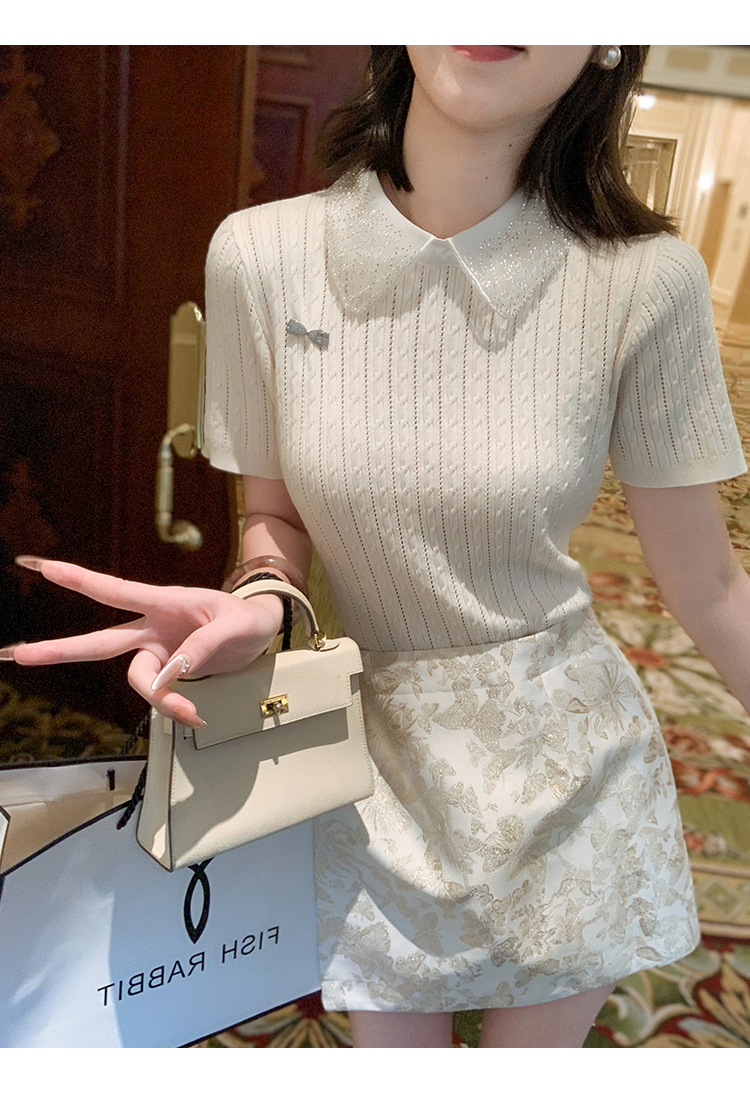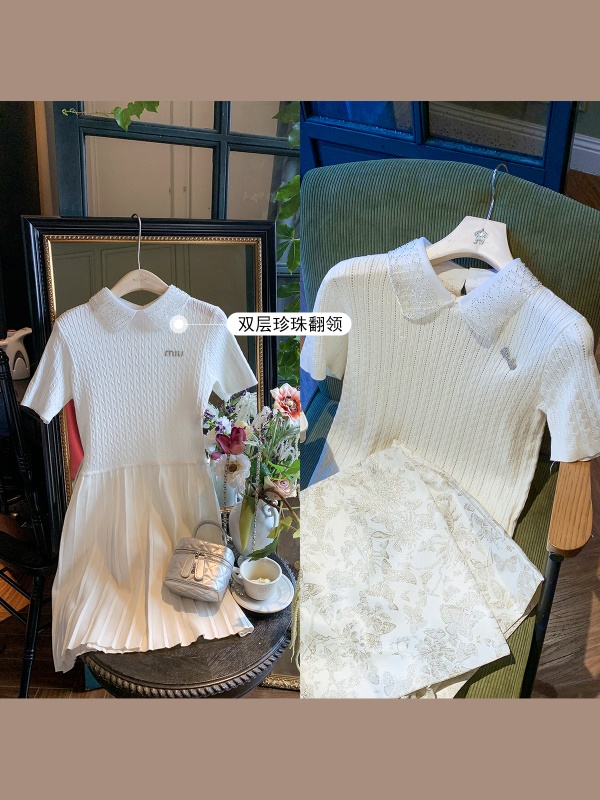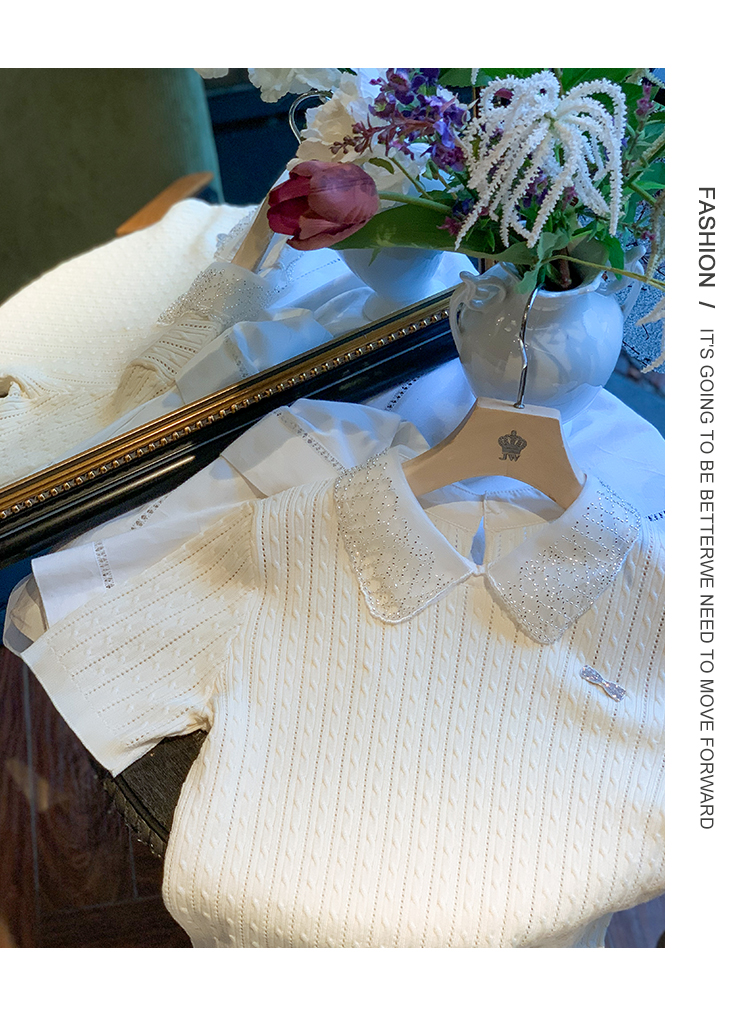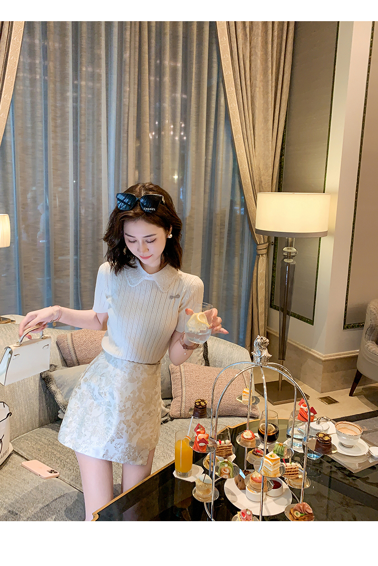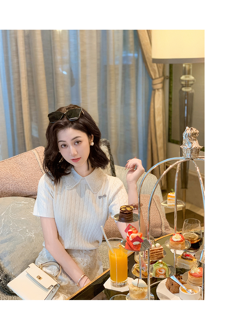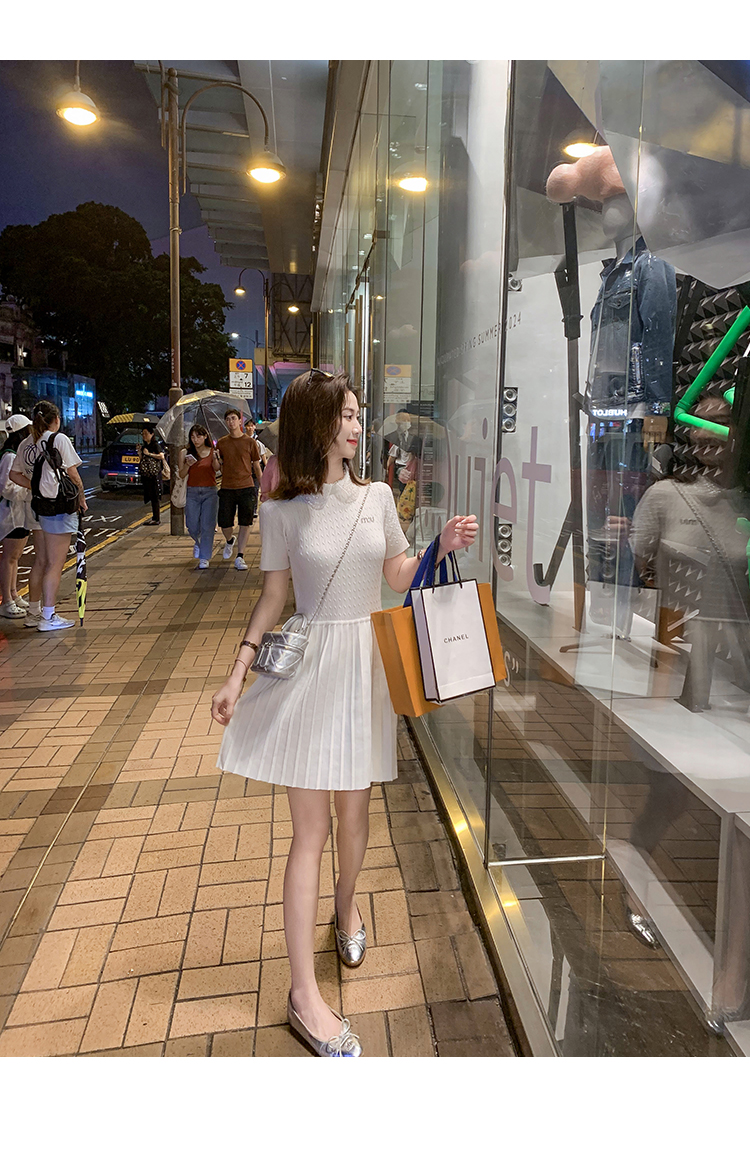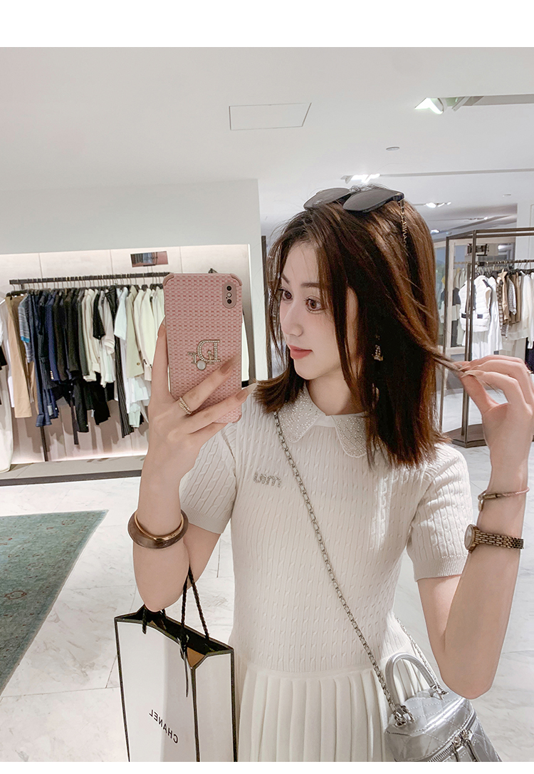 商品名称:[限时折扣] 小香风娃娃领亮片连衣裙女2025夏季新款拼接百褶裙子