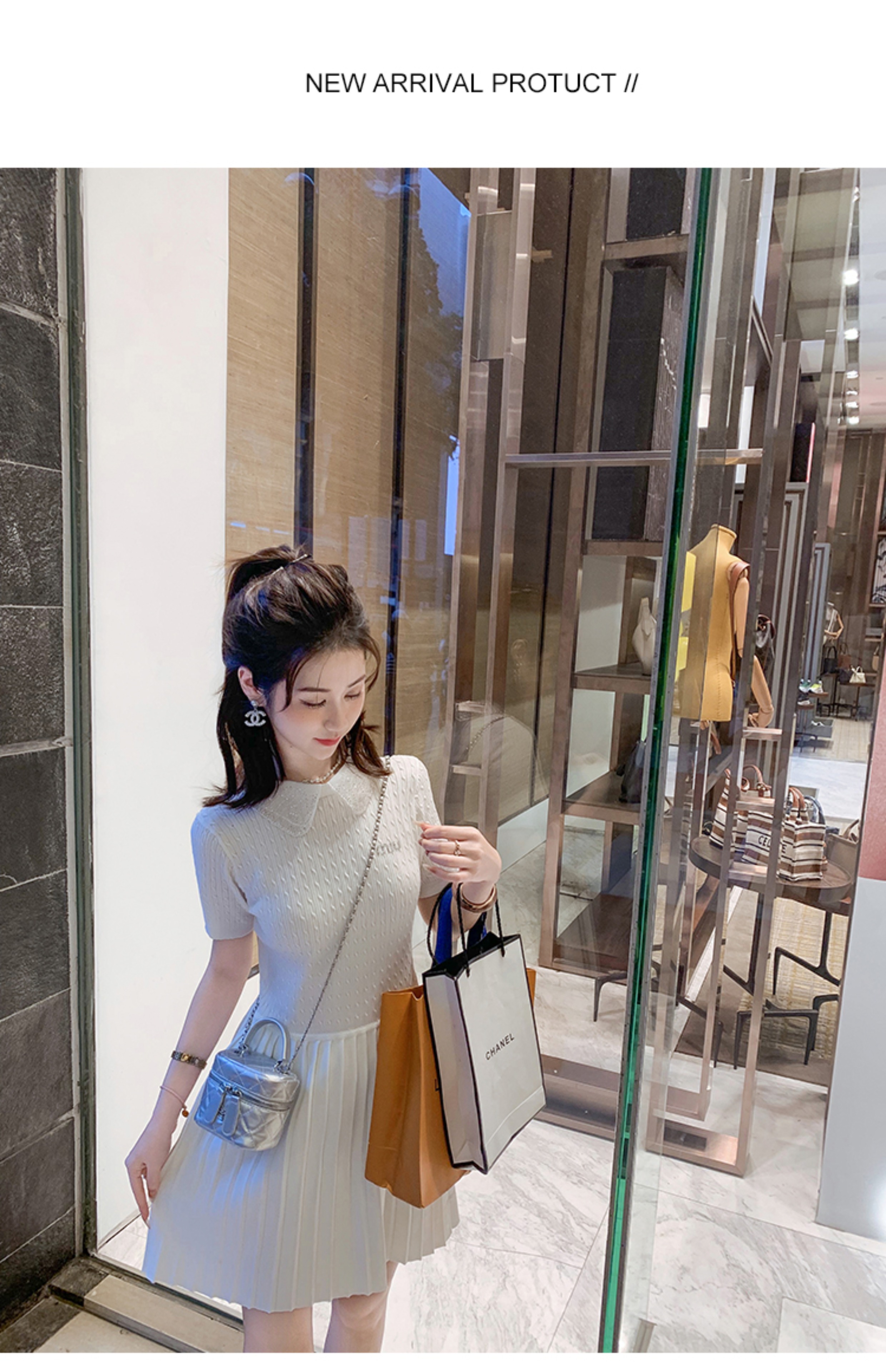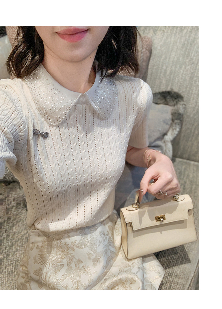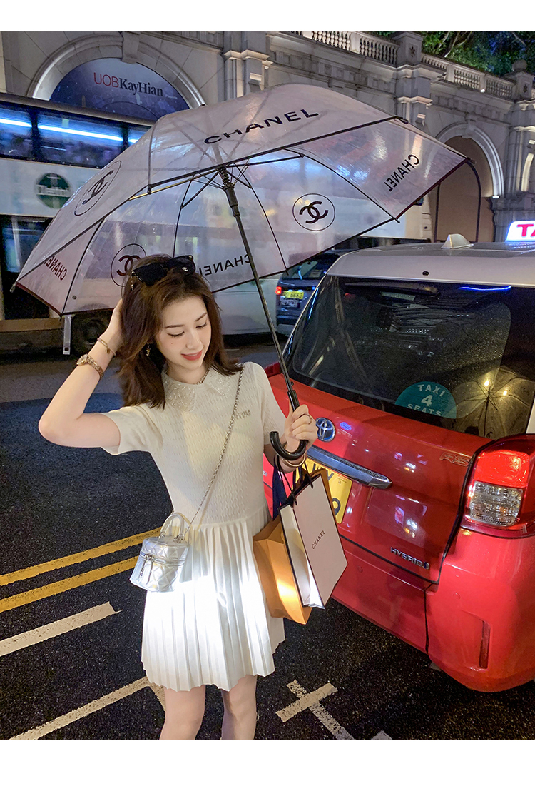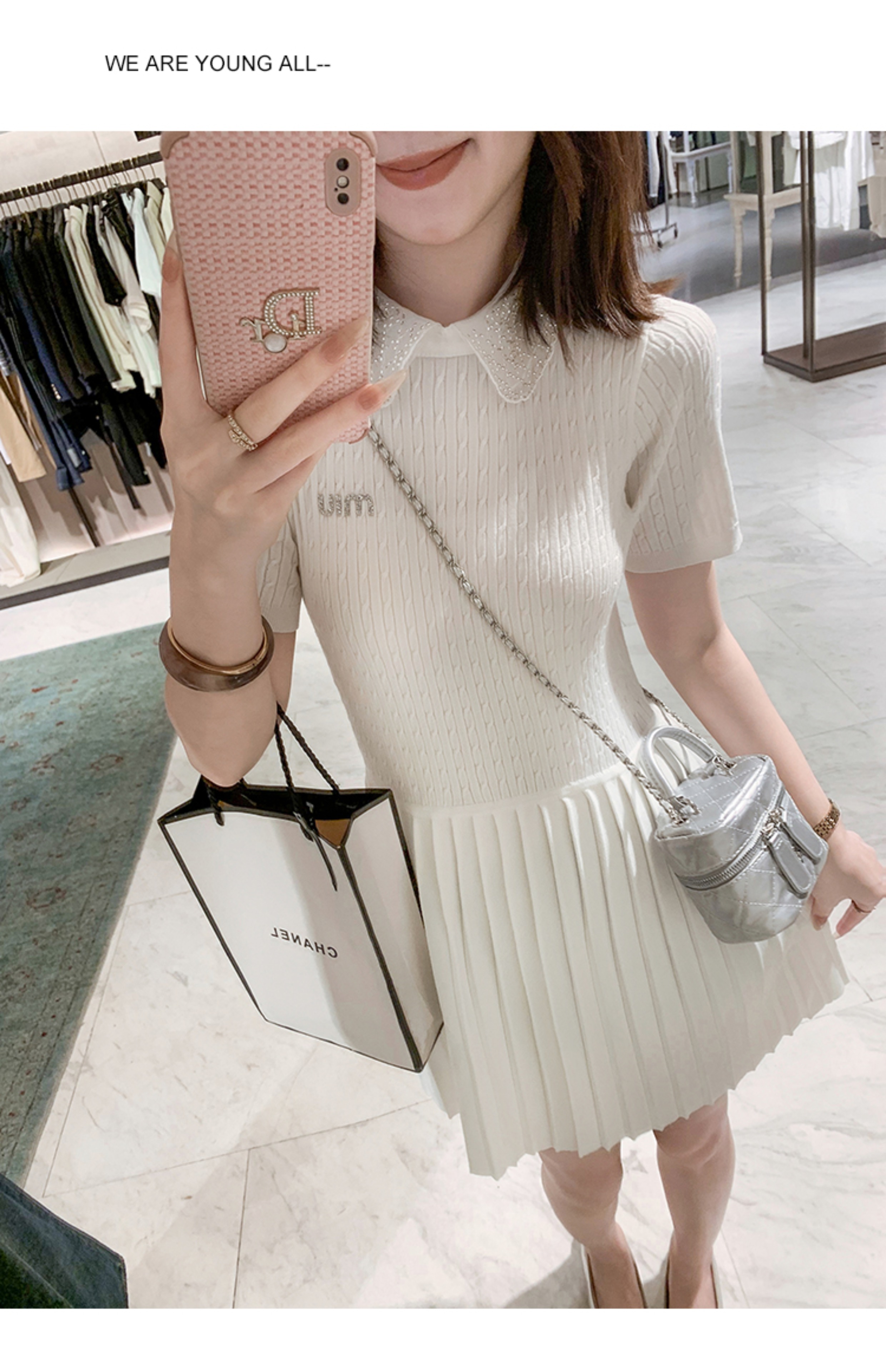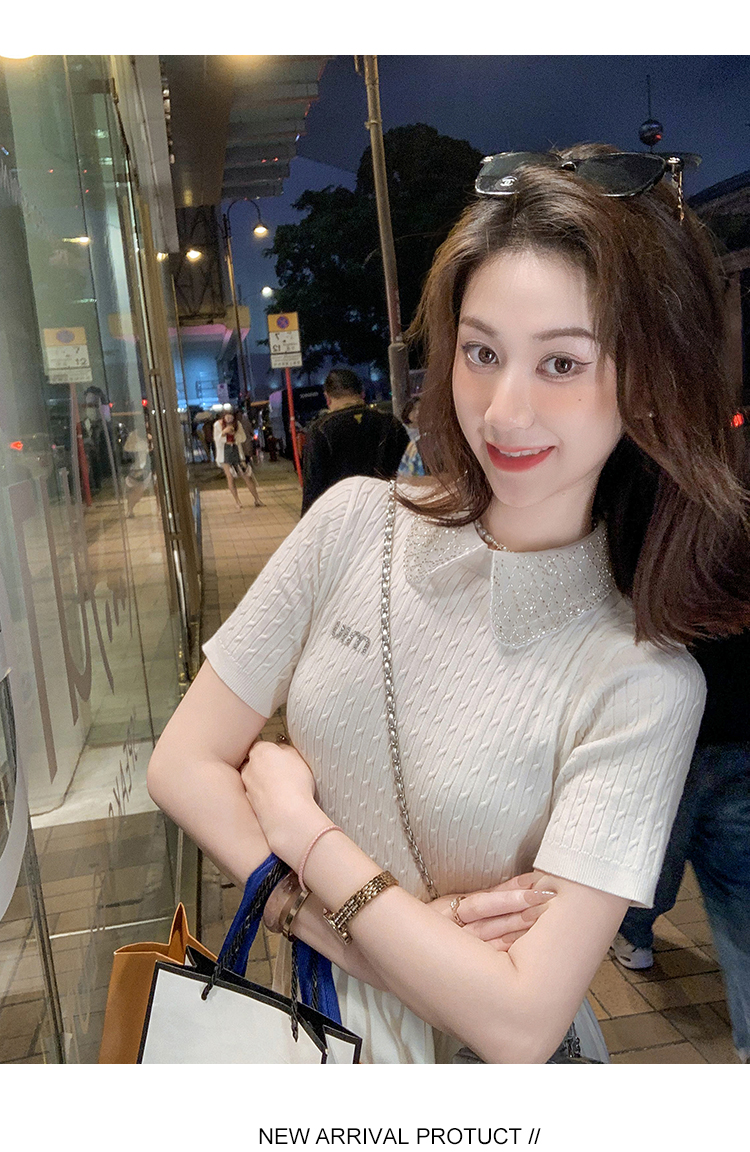 商品名称:[限时折扣] 小香风娃娃领亮片连衣裙女2025夏季新款拼接百褶裙子