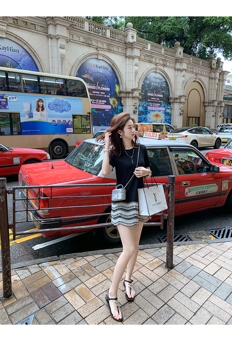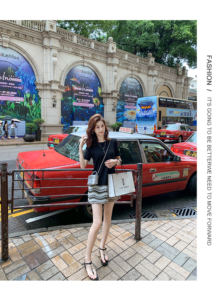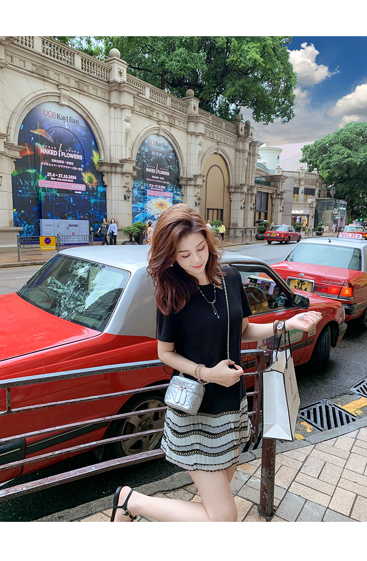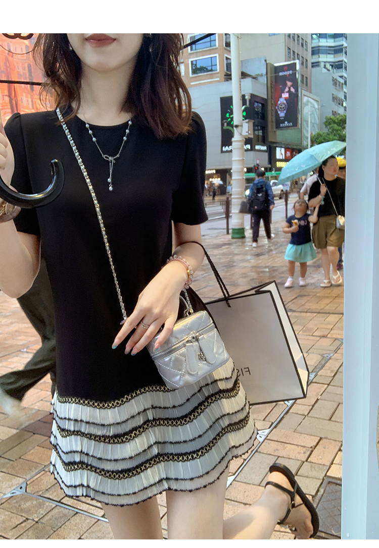商品名称:法式撞色拼接连衣裙女夏季新款修身显瘦条纹蛋糕裙子