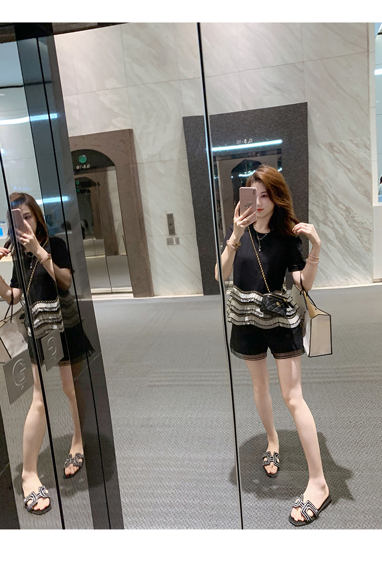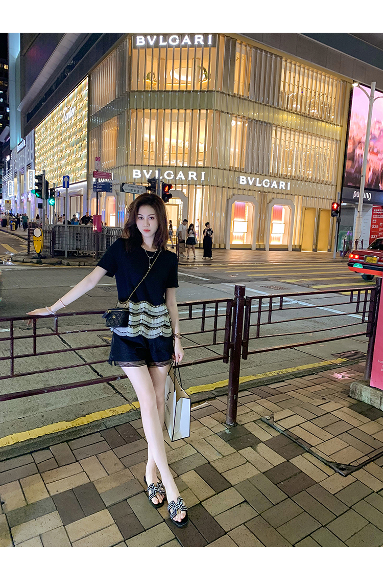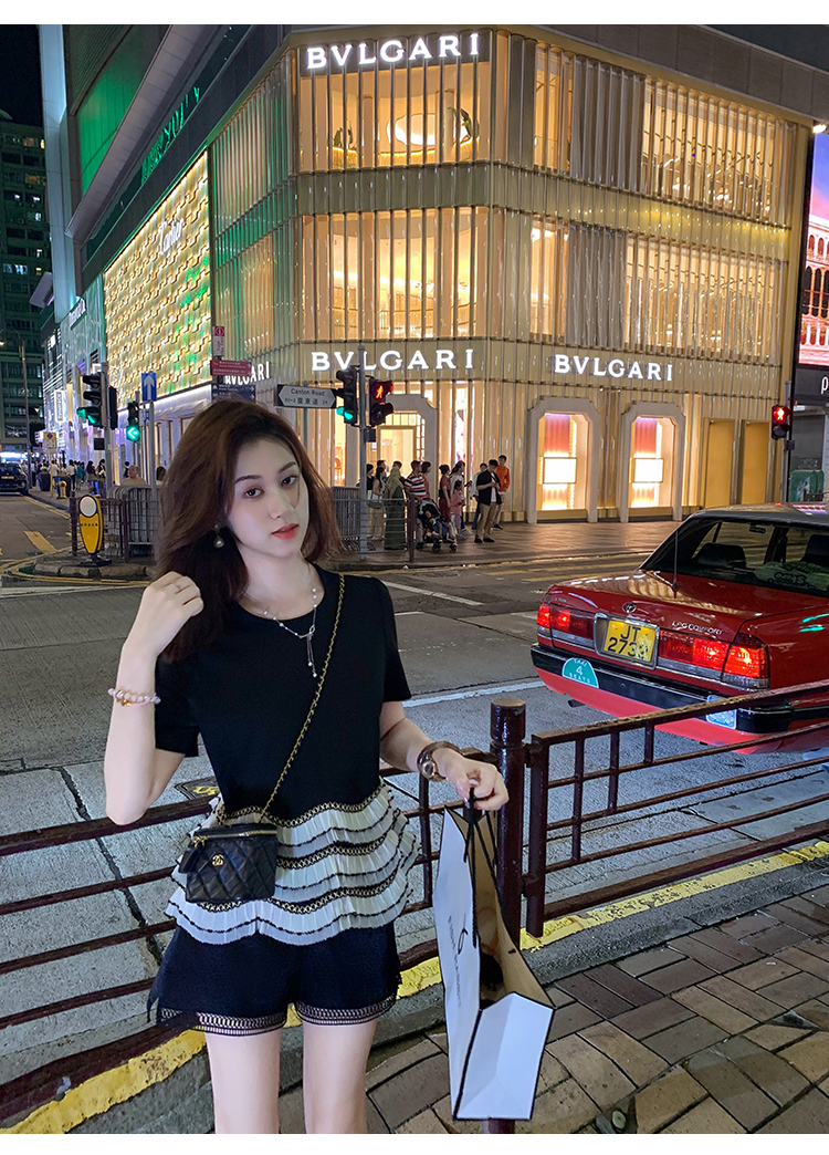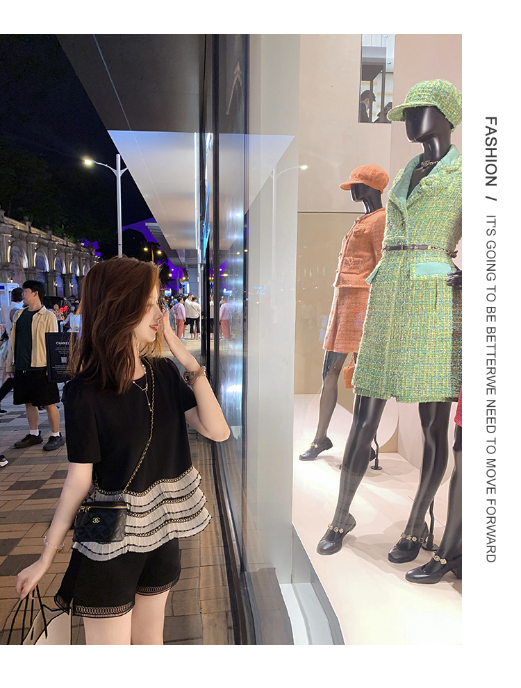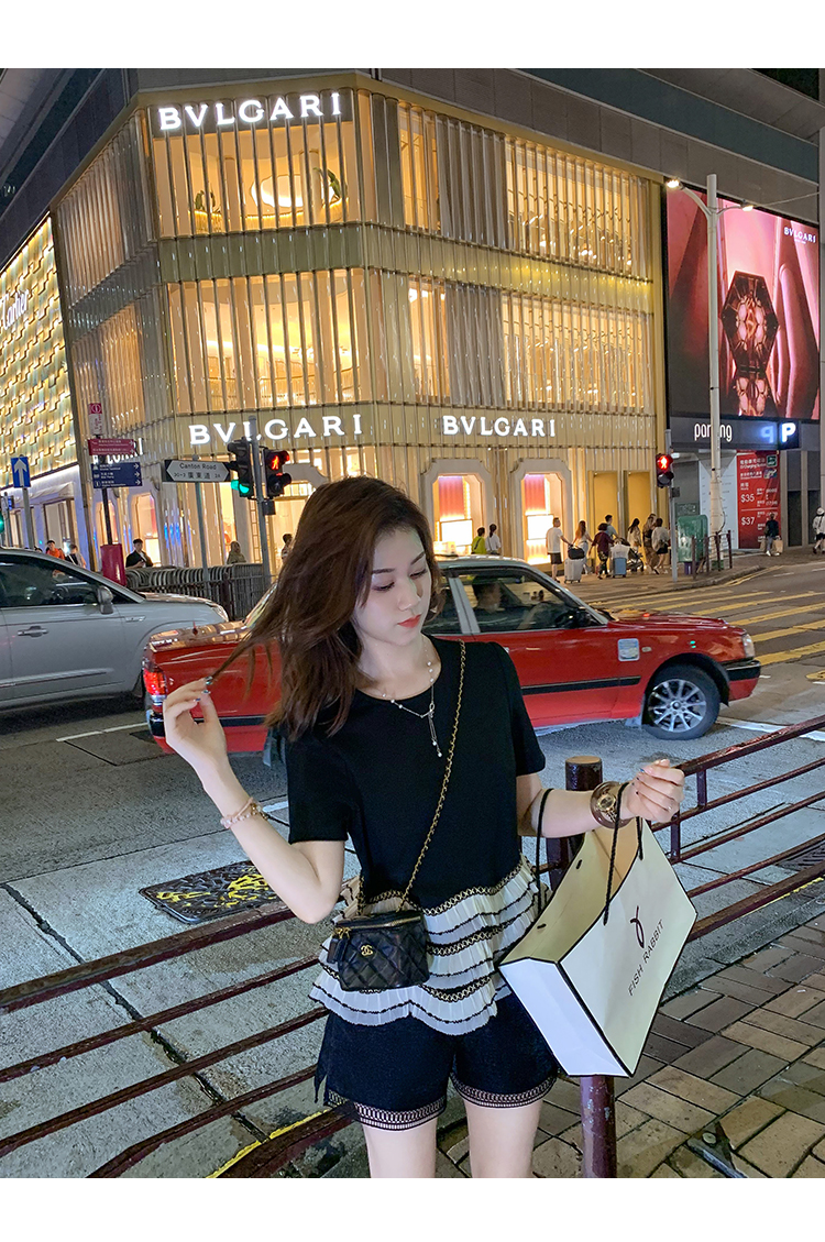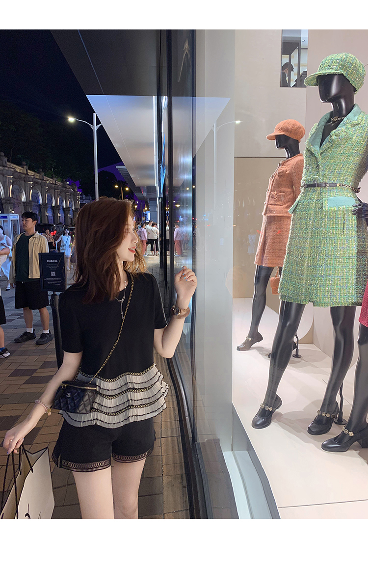 法式气质荡领短袖套装女夏2025新款高端蕾丝拼接亚麻阔腿裤两件套