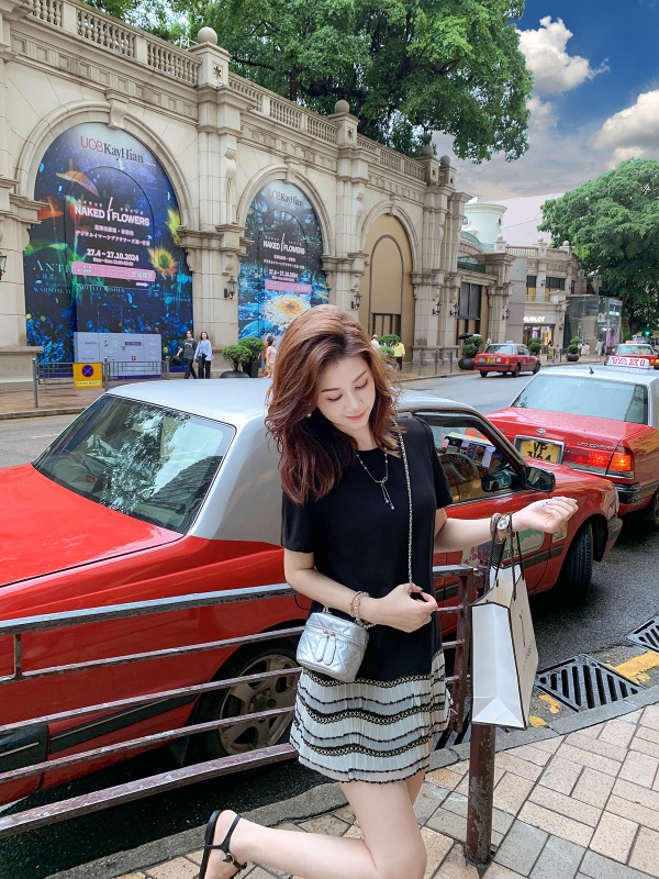 黑色法式polo休闲连衣裙女夏季收腰显瘦气质通勤赫本风衬衫长裙子
