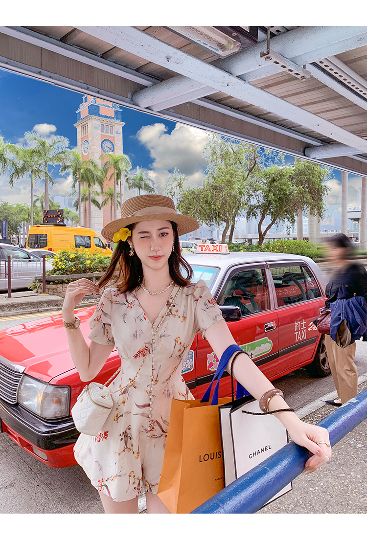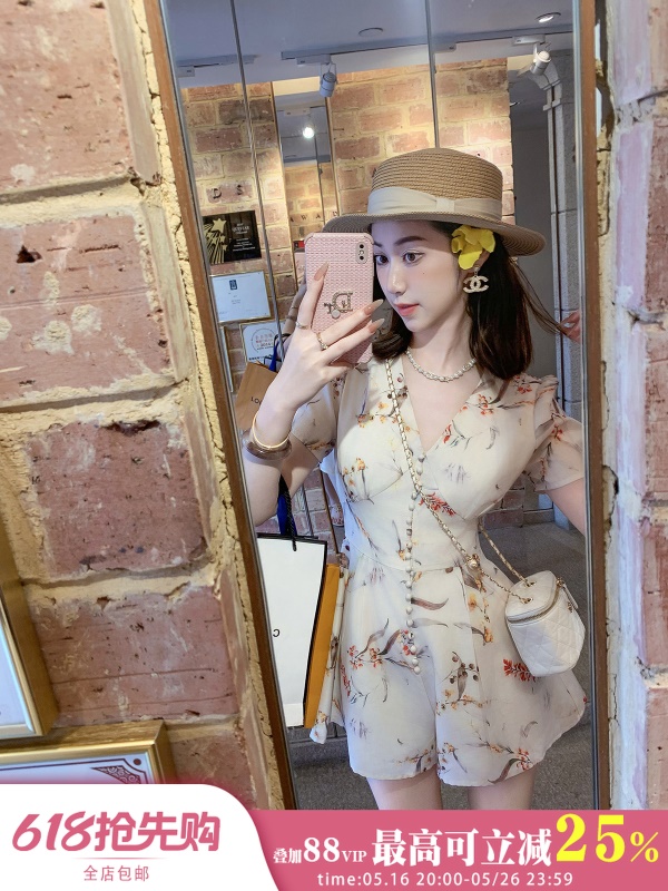 商品名称:高端印花雪纺连体裤女2025夏季新款收腰显瘦连体衣