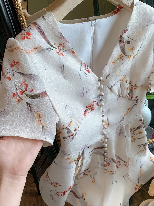 法式白色V领短袖雪纺衬衫女装夏季新款衬衣高级感职业通勤OL上衣