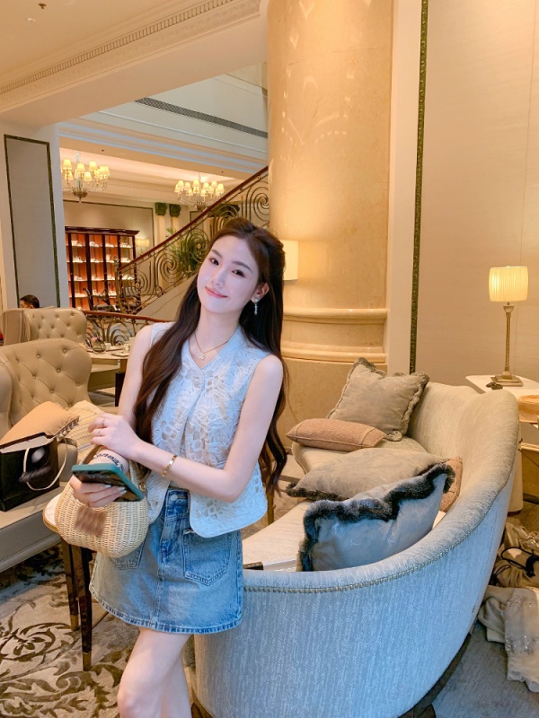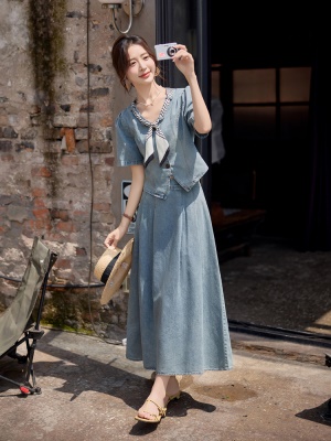 夏日绝美小裙子套装女2025新款气质高端御姐女神范天丝牛仔两件套