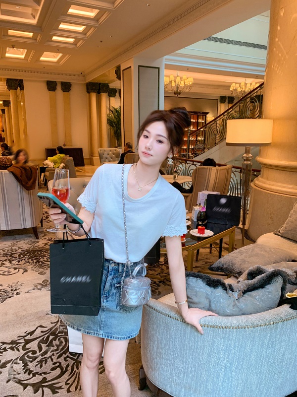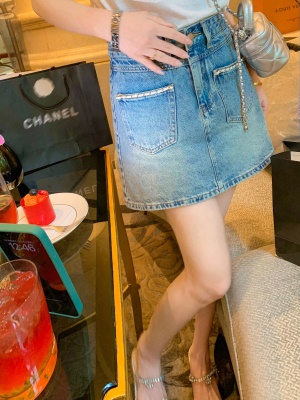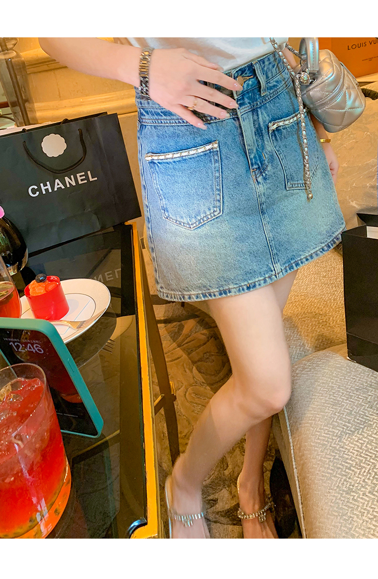 修身小个子半身裙女夏季新款蓝色短裙百搭a字牛仔裙