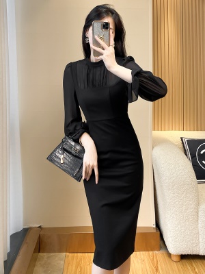 2025早春新款气质高级感长袖黑色连衣裙收腰显瘦职业女神范小黑裙