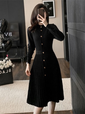 秋冬配大衣的内搭连衣裙毛衣裙小香风百褶裙收腰修身打底针织裙女