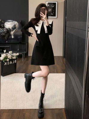 赫本风法式小黑裙气质高级感秋冬新款修身显瘦小香风连衣裙小个子