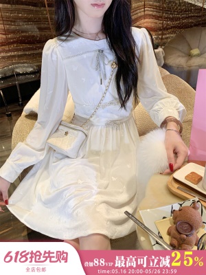 法式千金打底穿搭裙春秋高级感收腰白色蝴蝶连衣裙女