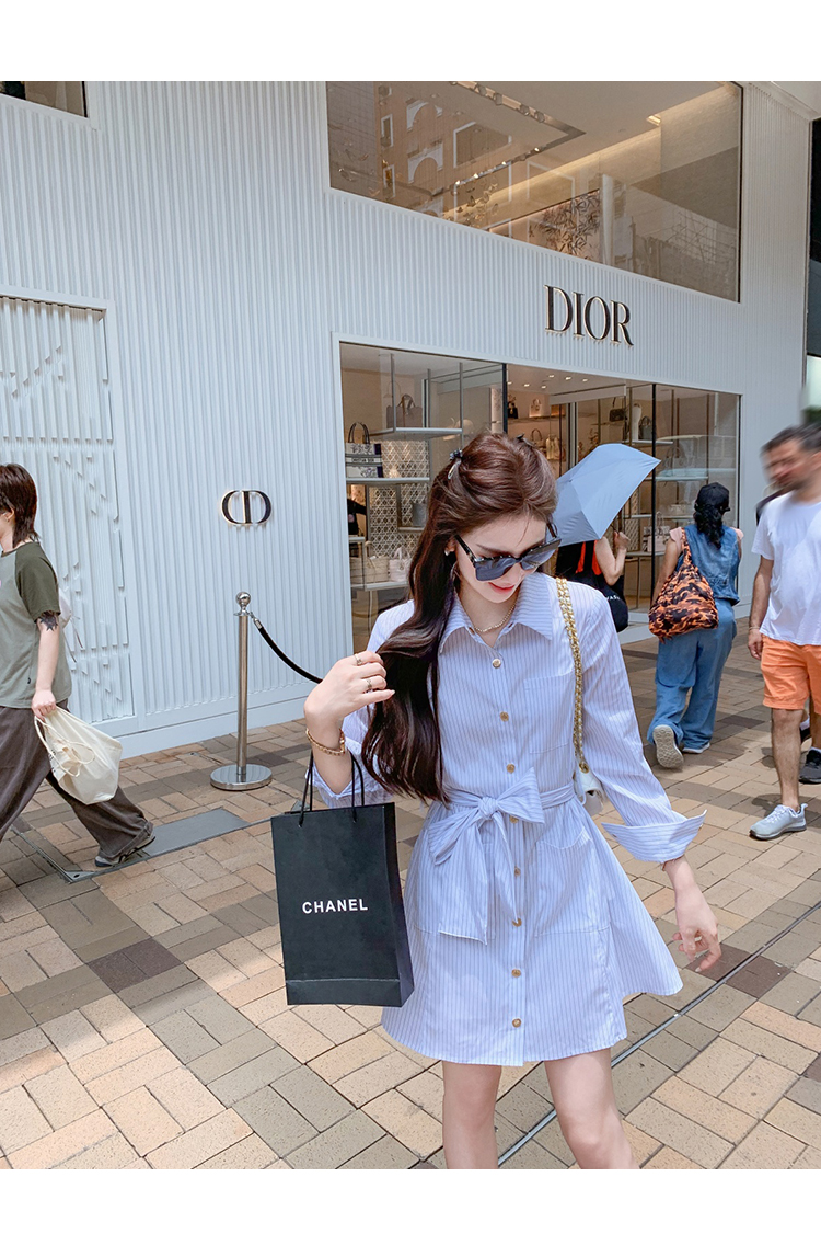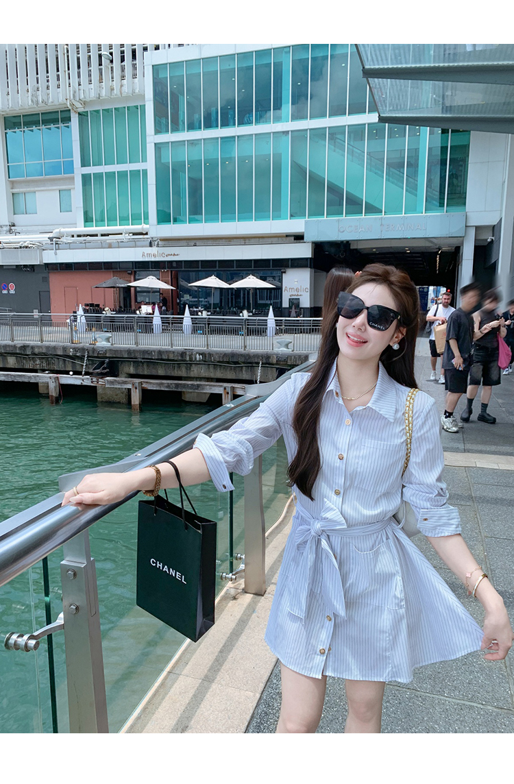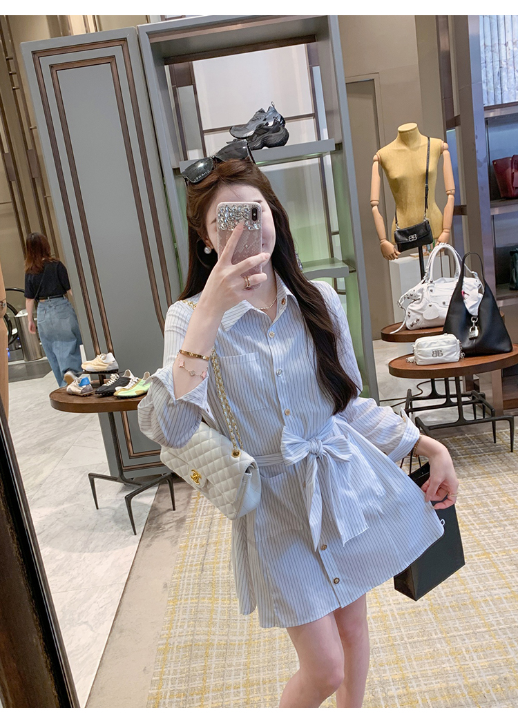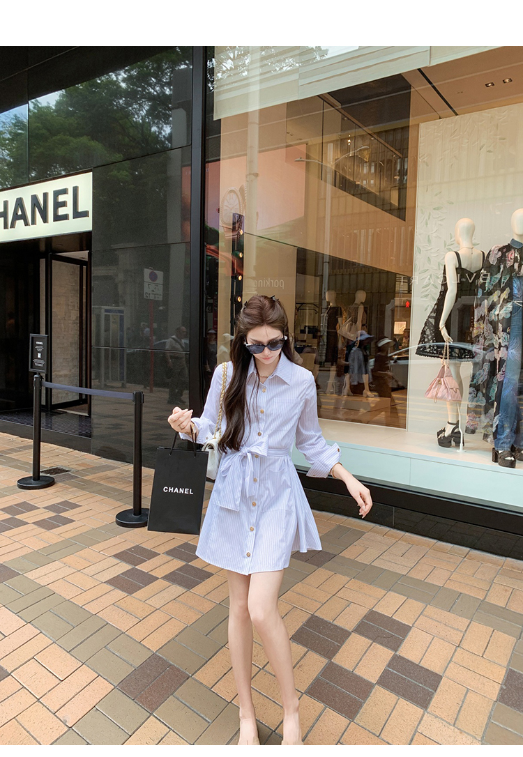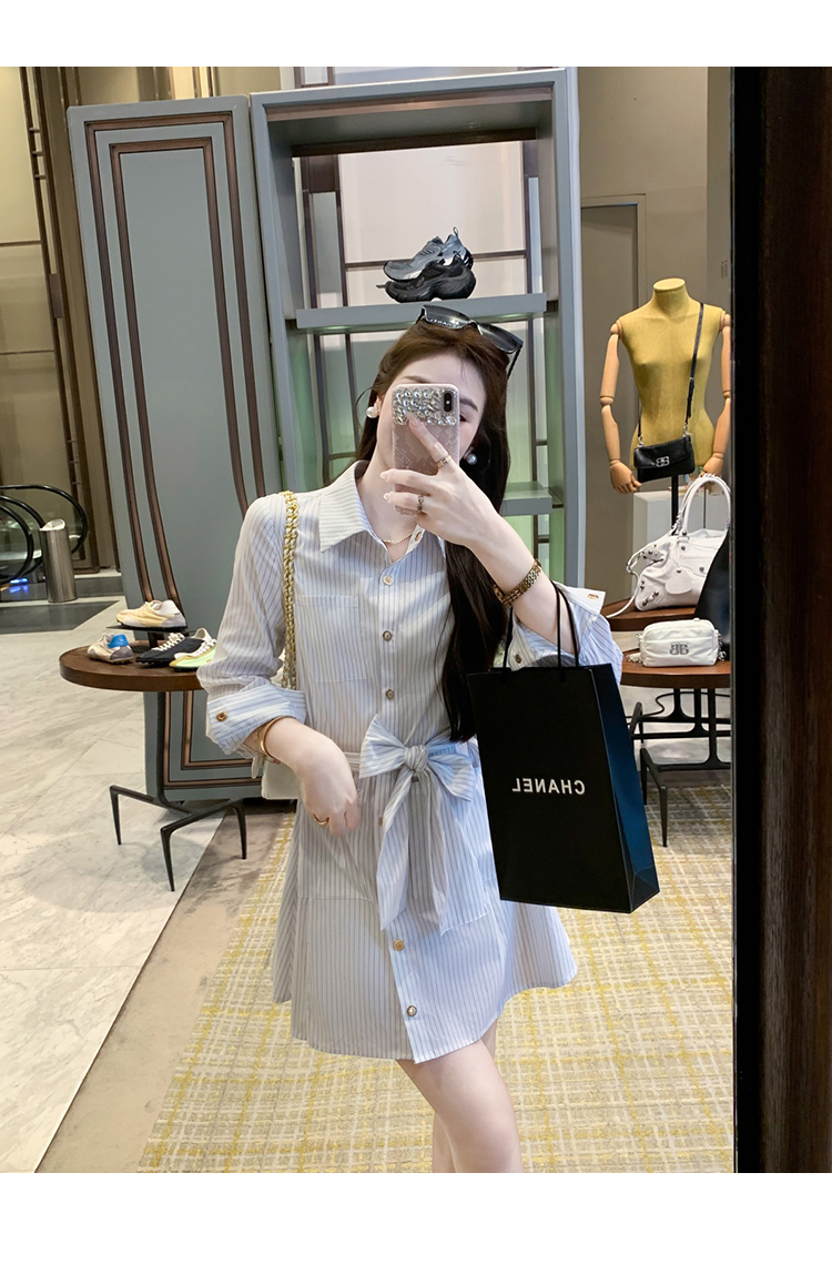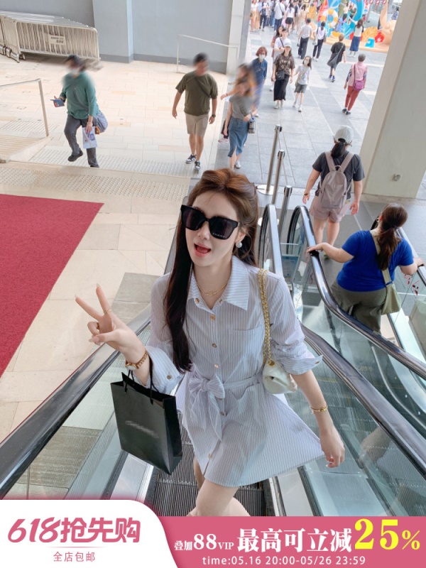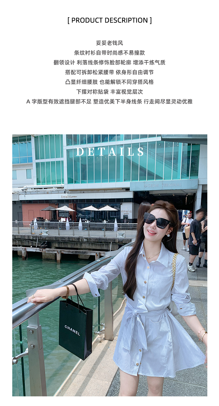 条纹衬衫法式连衣裙女夏季2025新款巨好看的漂亮裙子