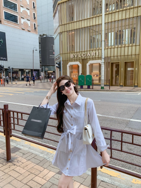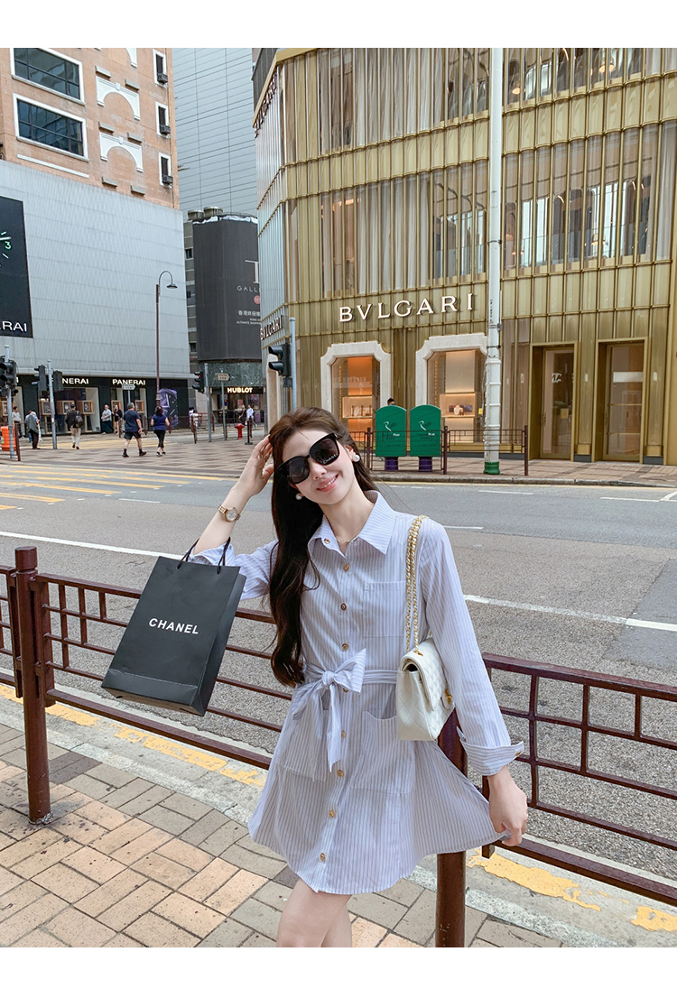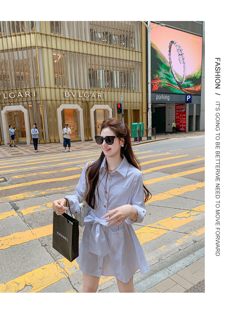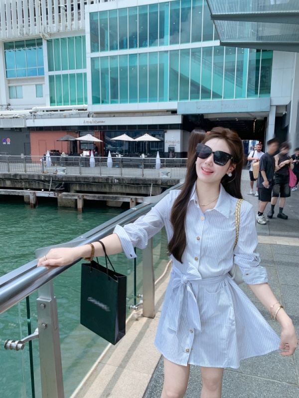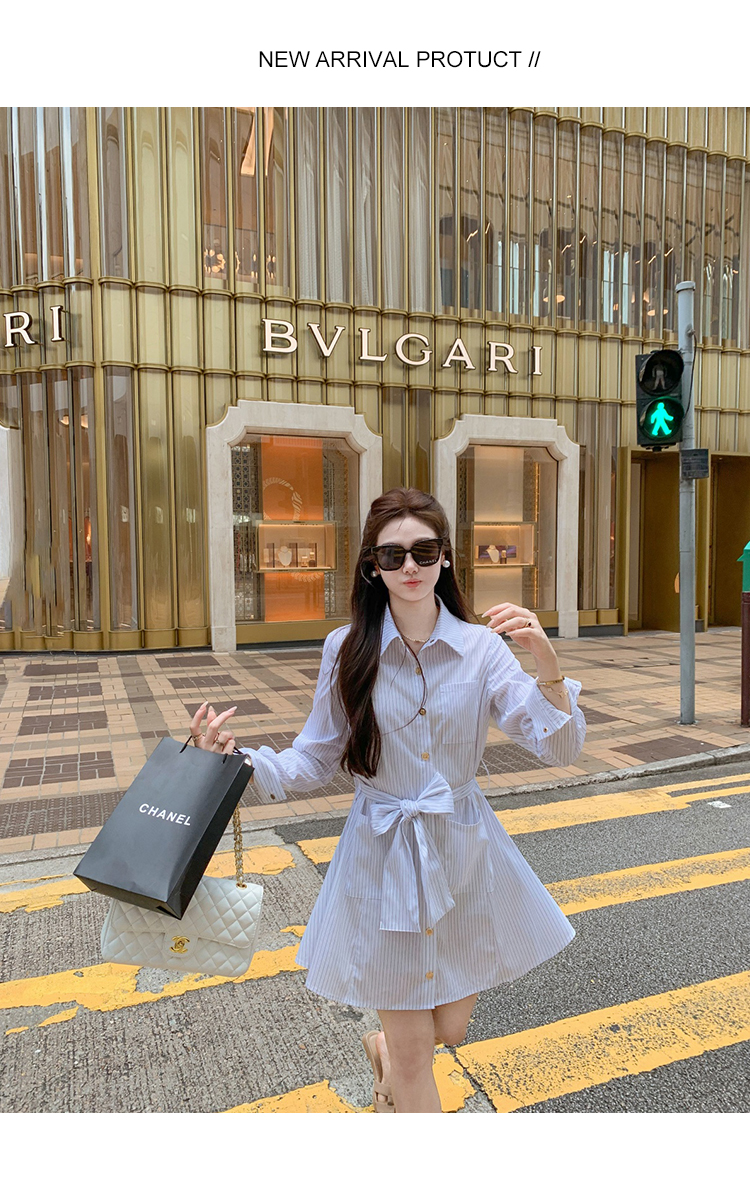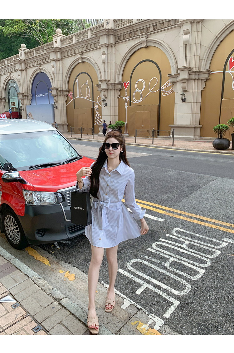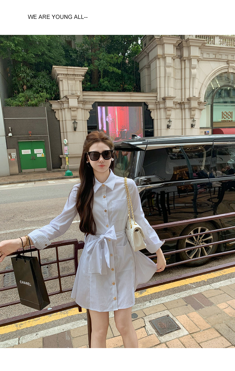 条纹衬衫法式连衣裙女夏季2025新款巨好看的漂亮裙子