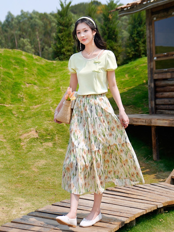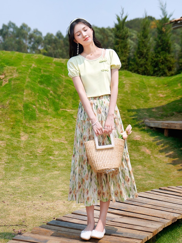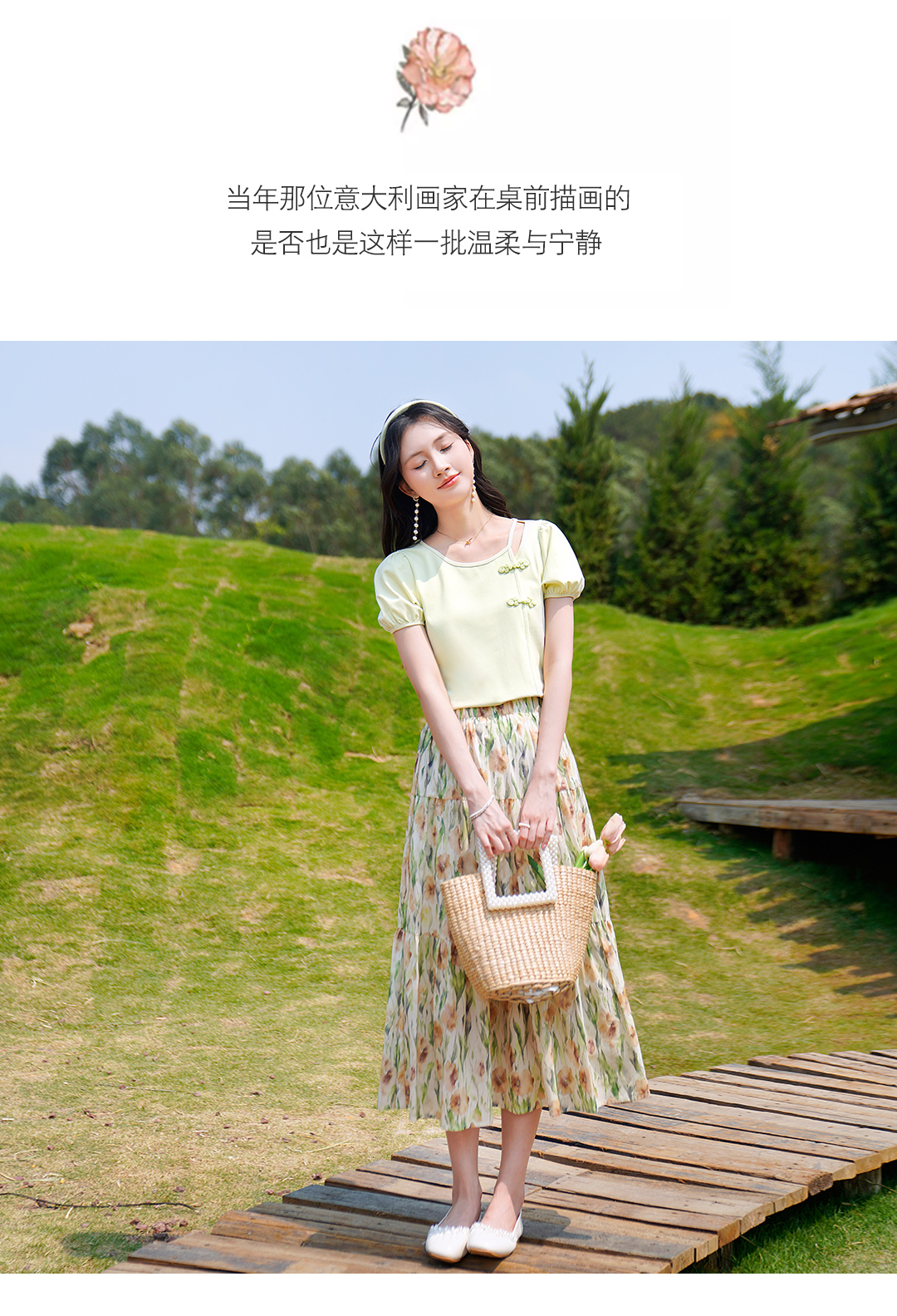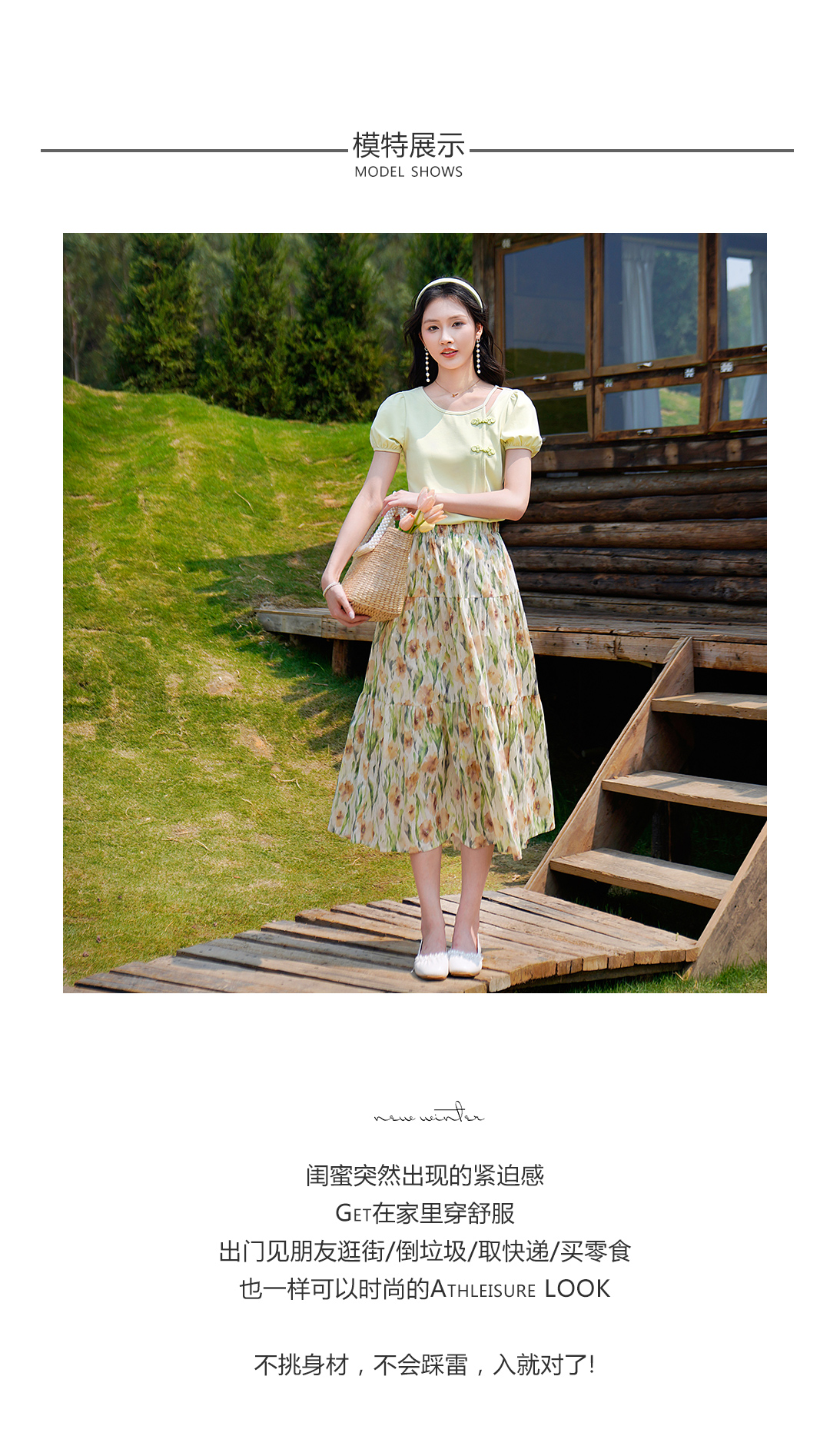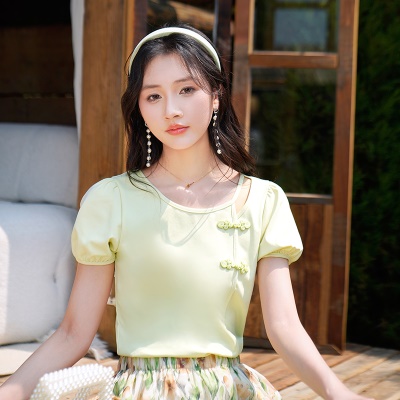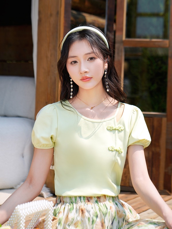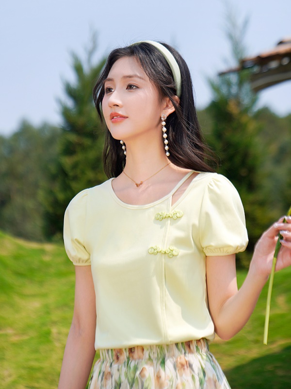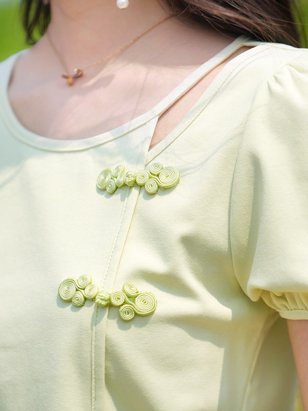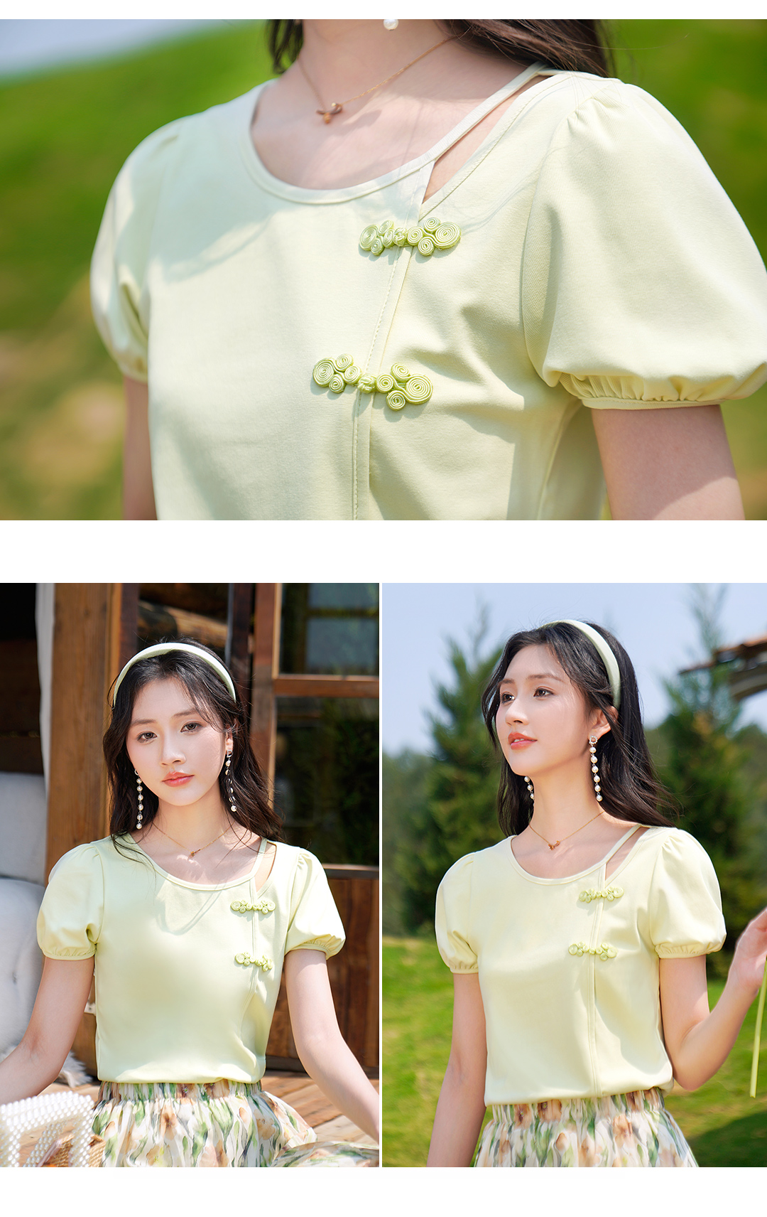 ATAR小清新2025夏季新款女装盘扣短袖T恤 女修身圆领设计感上衣
