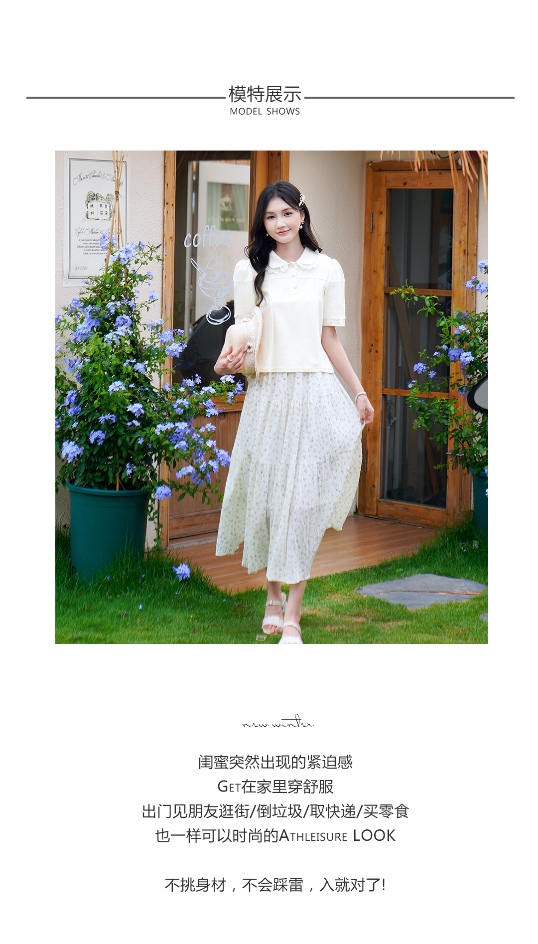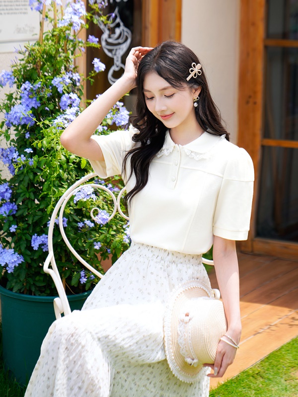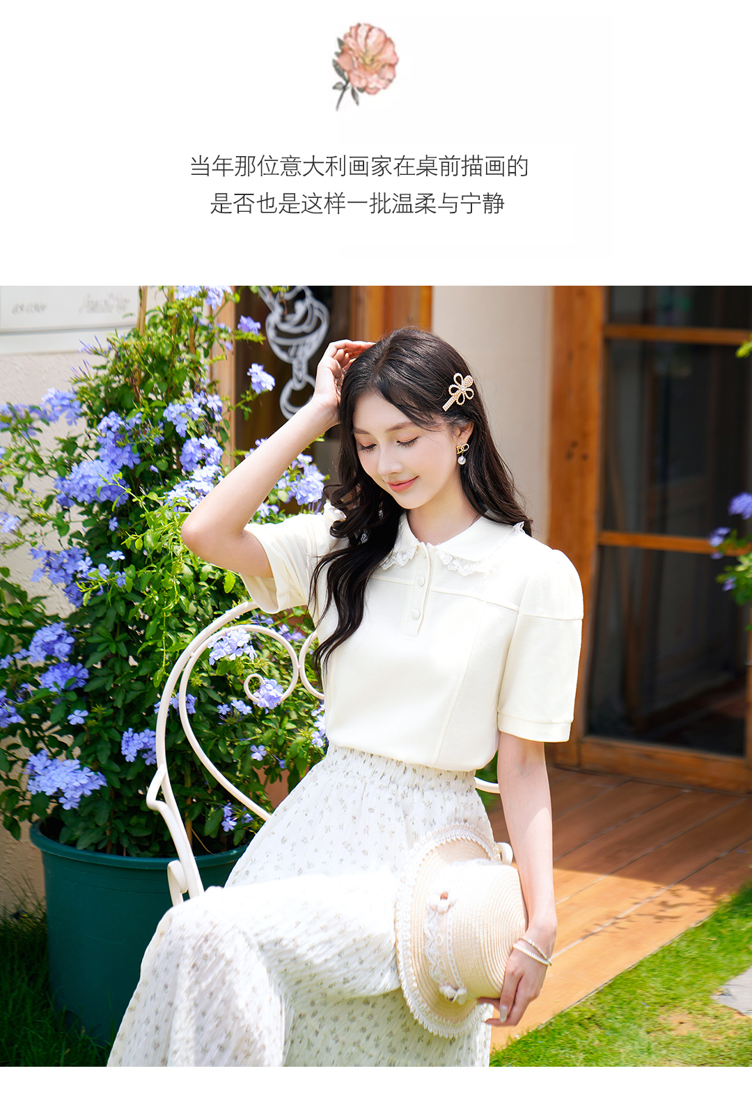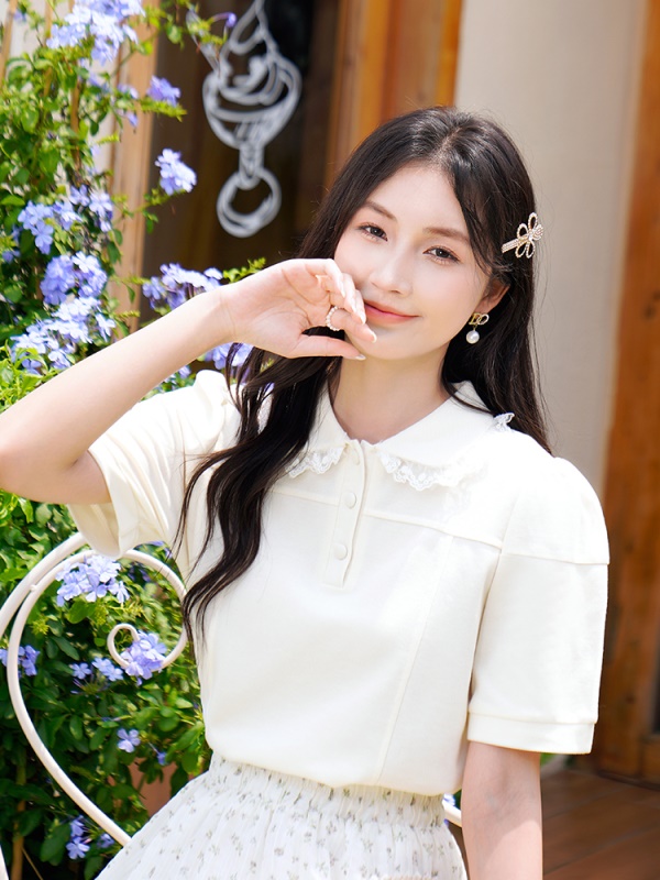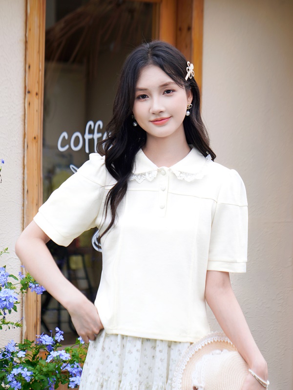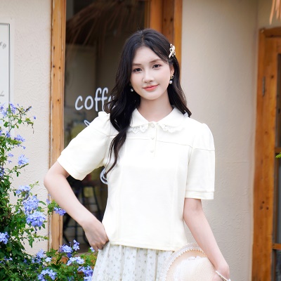 商品名称:ATAR文艺休闲夏季新品蕾丝花边拼接娃娃领泡泡袖T恤 女短袖POLO衫