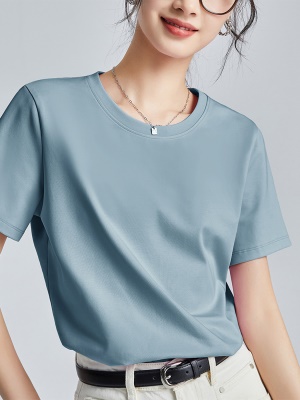 丝光棉纯色t恤女短袖夏季2025年新款纯棉圆领打底衫上衣液氨体恤